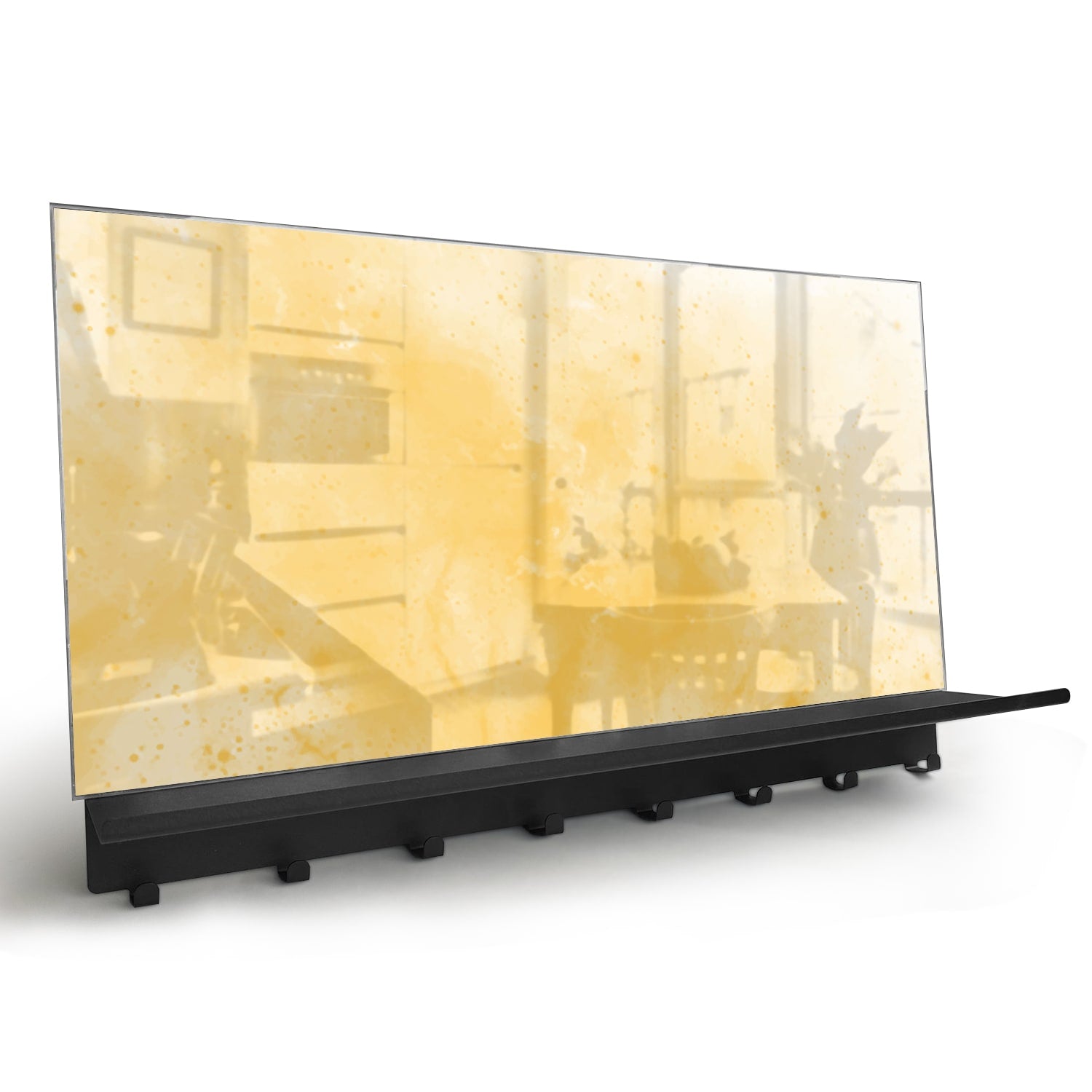 Die Wandgarderobe ist aus gehärtetem Glas mit einer Stärke von 4 mm gefertigt, was für Langlebigkeit und Sicherheit sorgt. Sie ist mit acht robusten Haken ausgestattet, die speziell dafür entworfen wurden, schwere Jacken und Taschen zu tragen, ohne sich zu verbiegen oder beschädigt zu werden. So bleibt deine Garderobe auch bei intensivem Gebrauch immer in Top-Zustand.