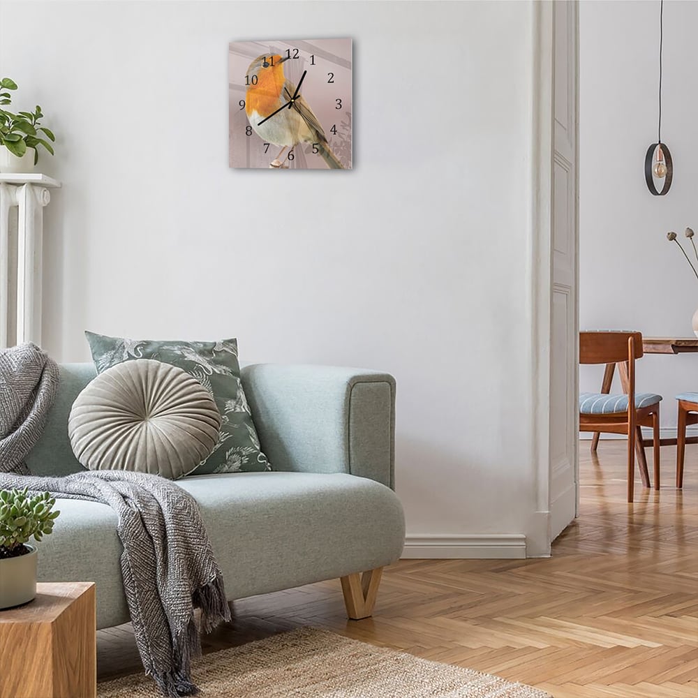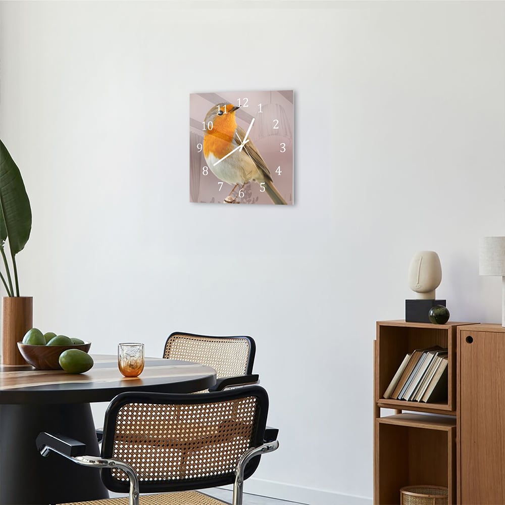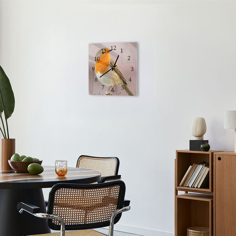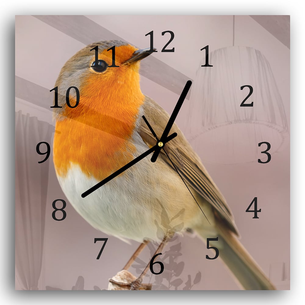 Wanduhr 30x30 - Rotkehlchen auf Zweig