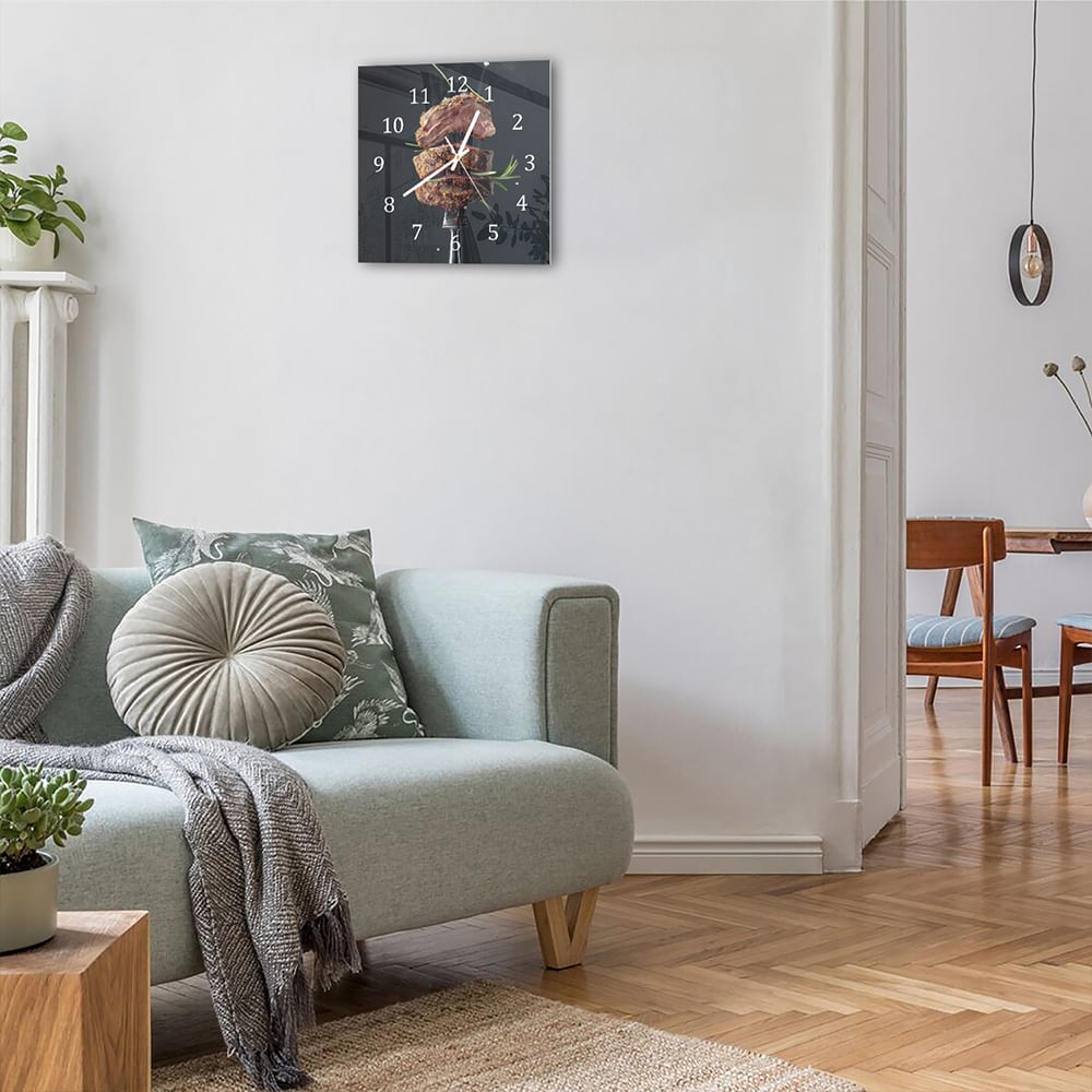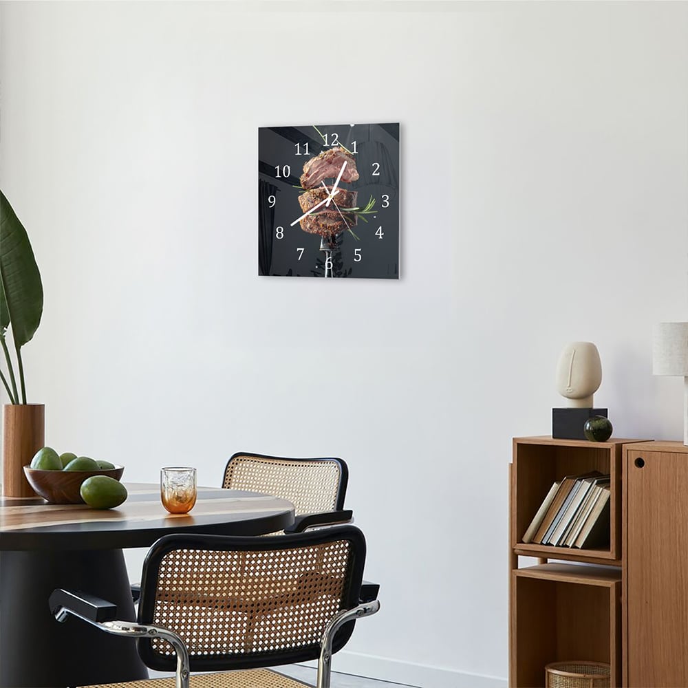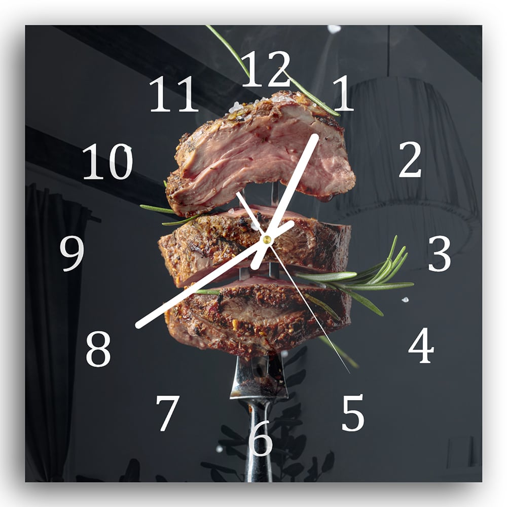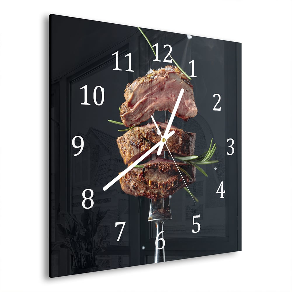 Wanduhr 30x30 - Steak auf Gabel