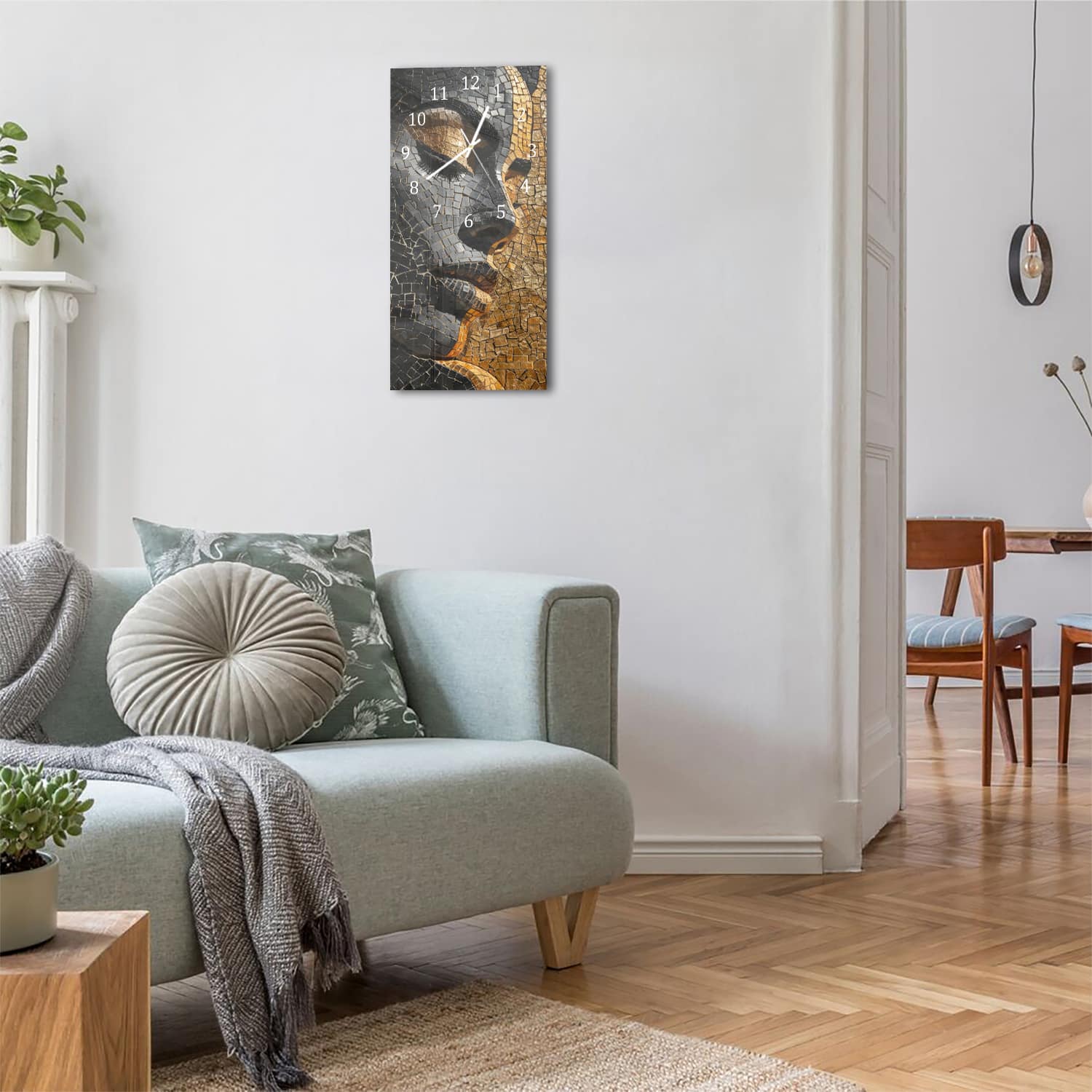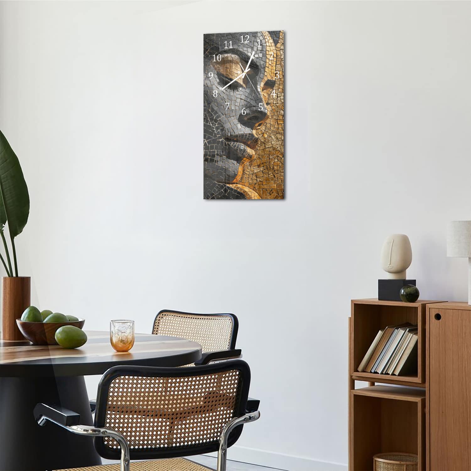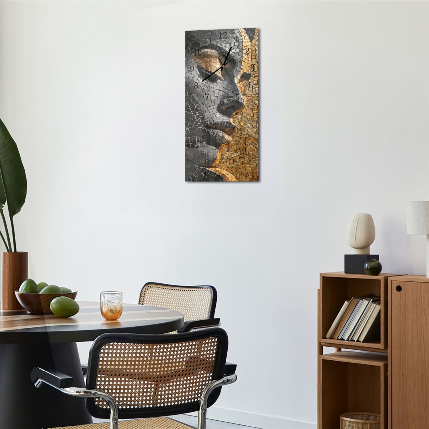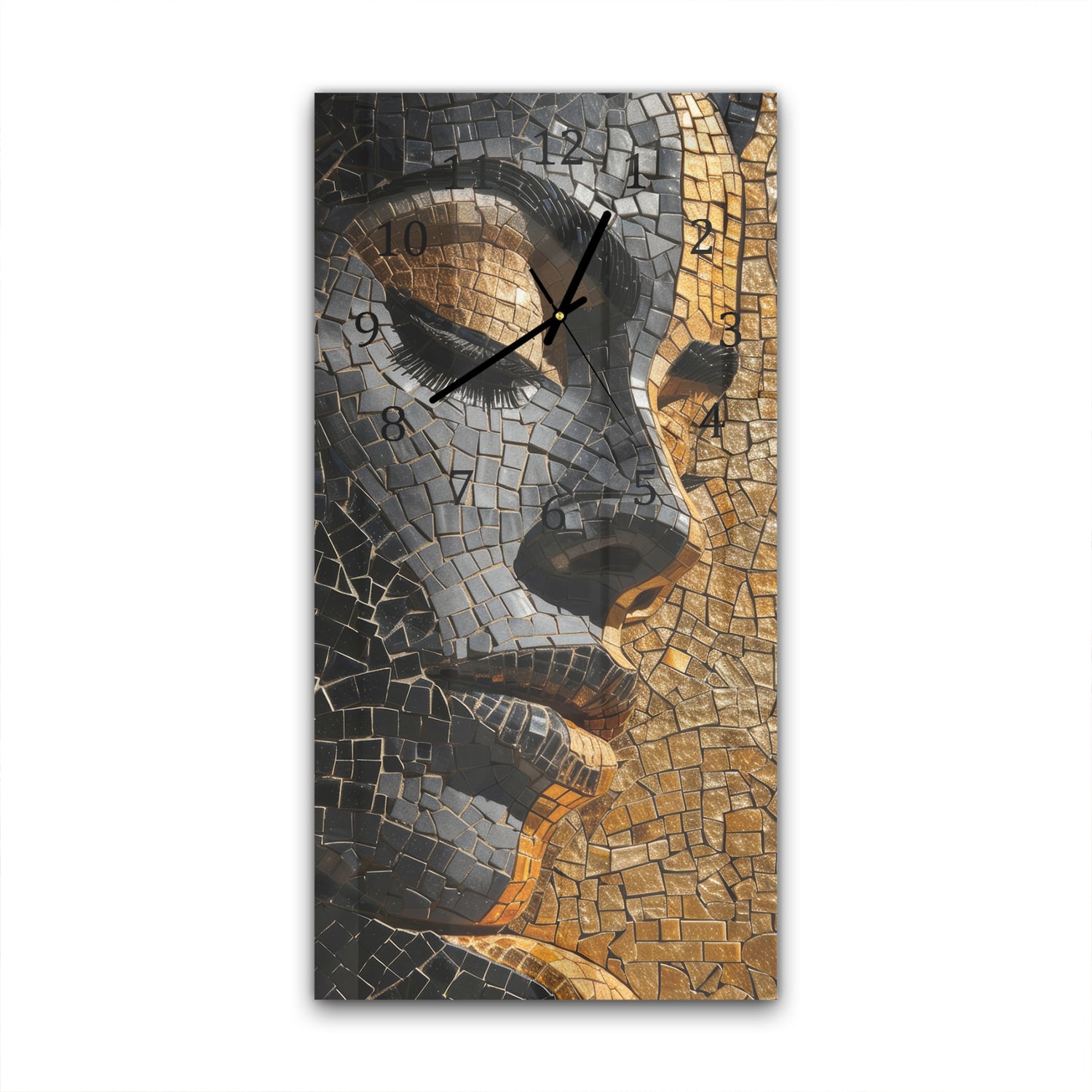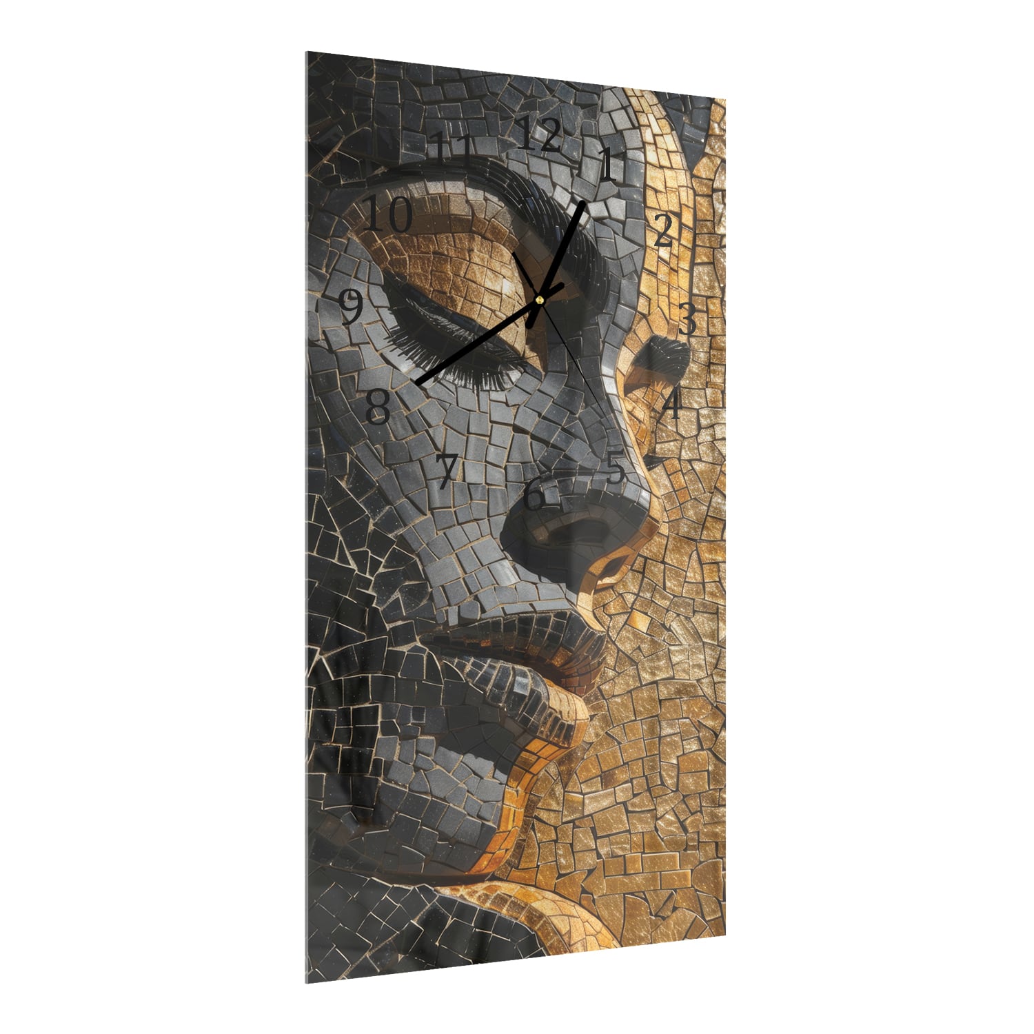 Wanduhr 30x60 - Gold-Schwarzes Mosaik-Frauengesicht