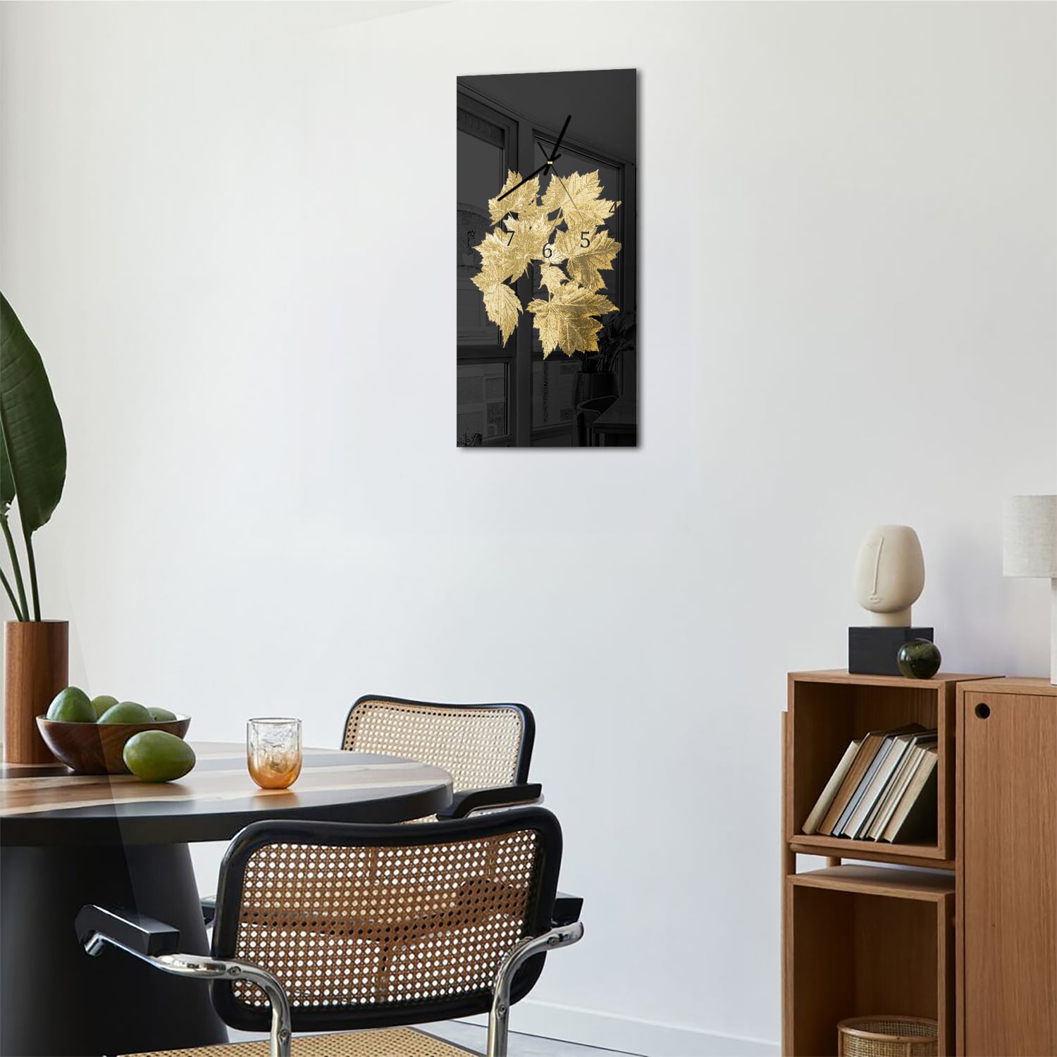 Wanduhr 30x60 - Goldene Blätterstruktur