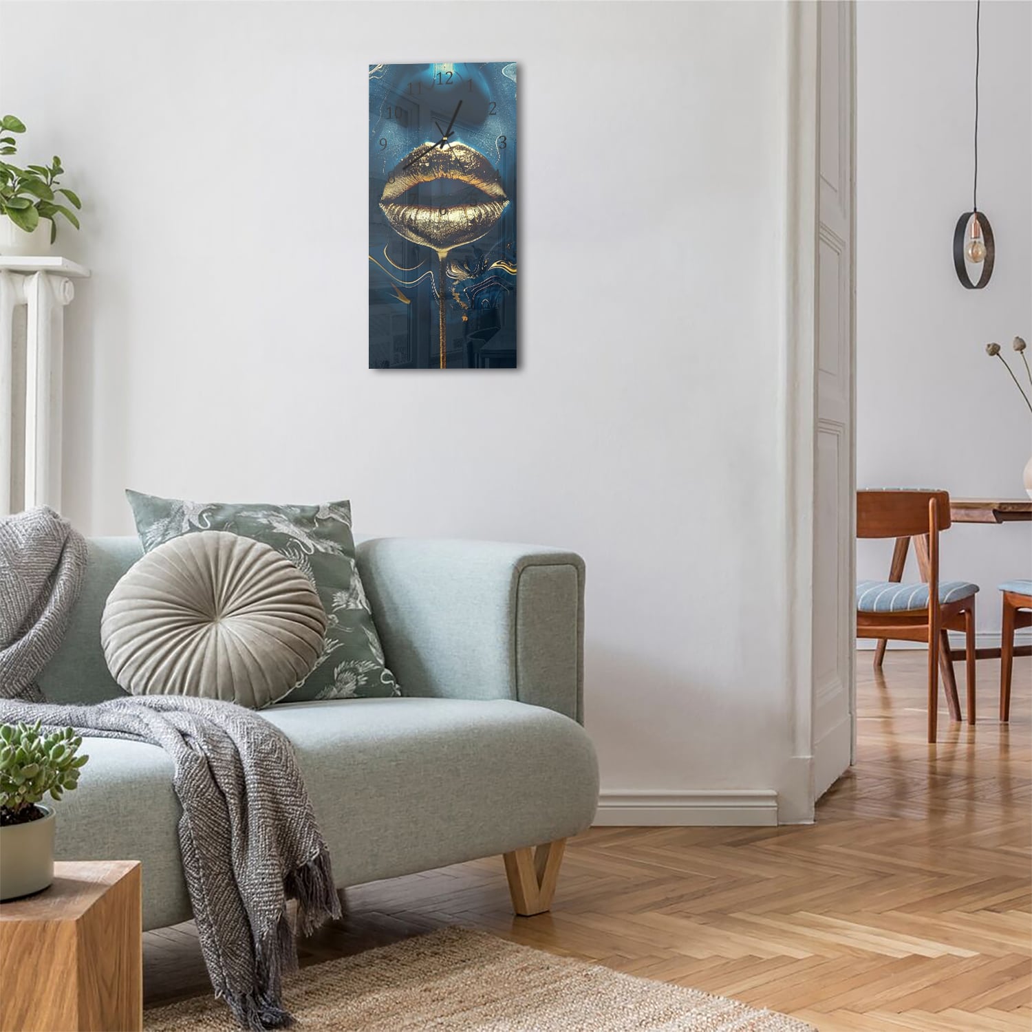 Wanduhr 30x60 - Goldene Lippen in abstrakter Kunst