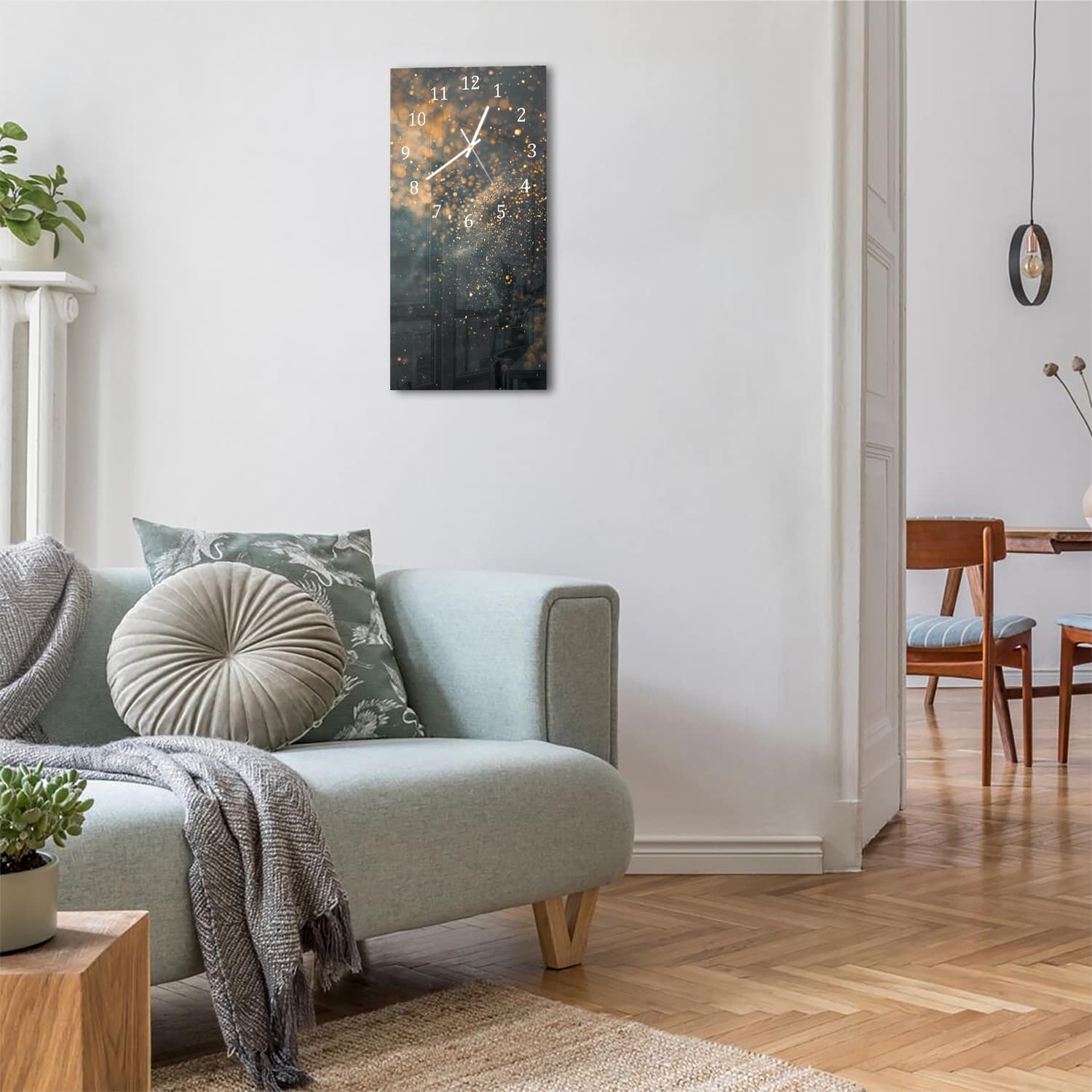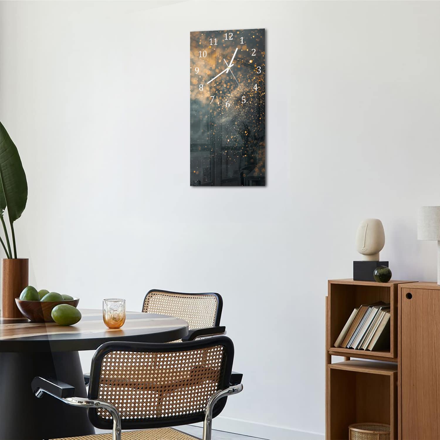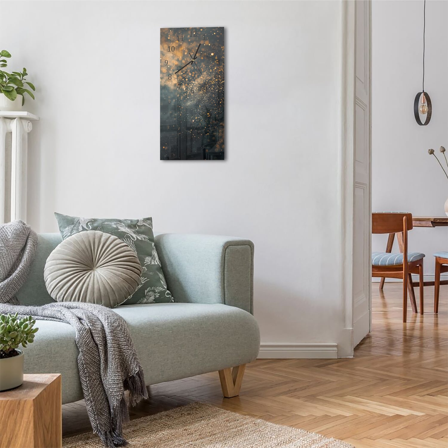 Wanduhr 30x60 - Goldener Glanz in dunklem Nebel