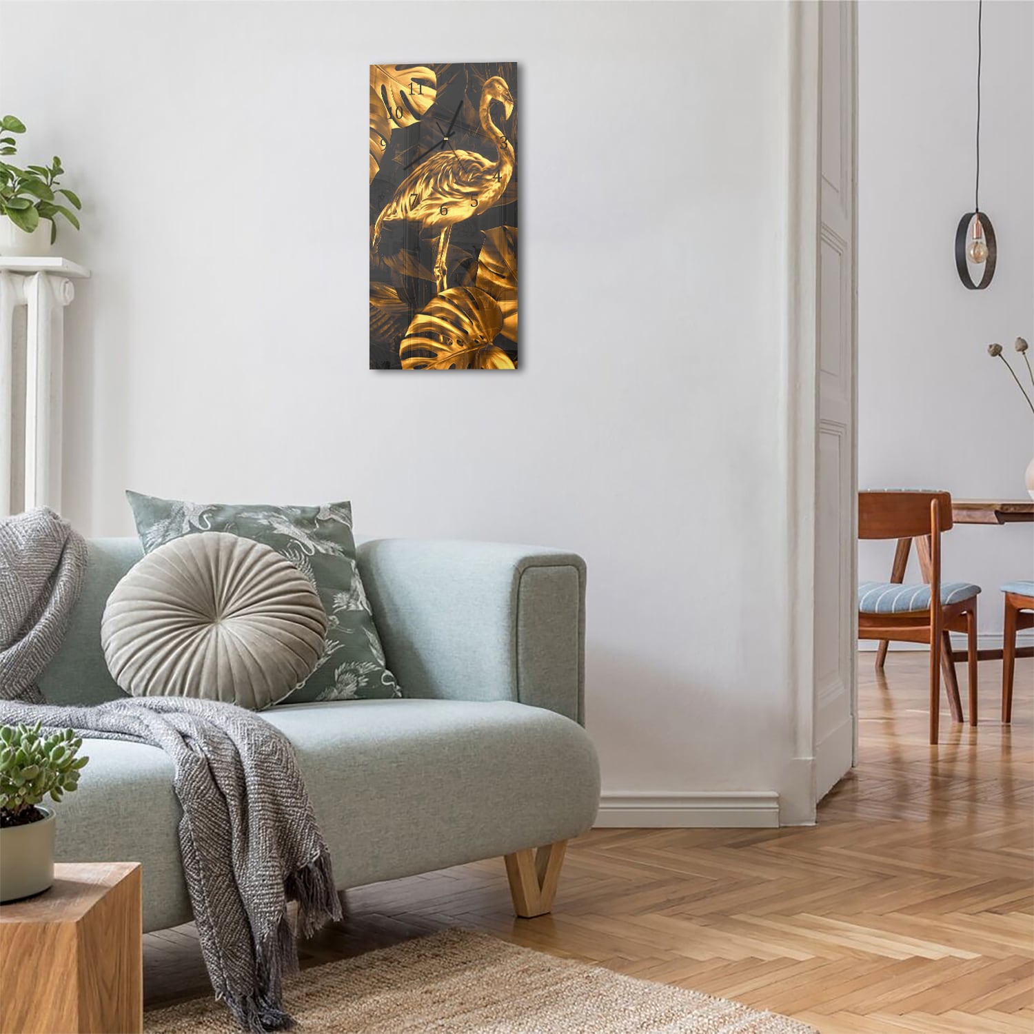 Wanduhr 30x60 - Nächtlicher goldener Flamingo