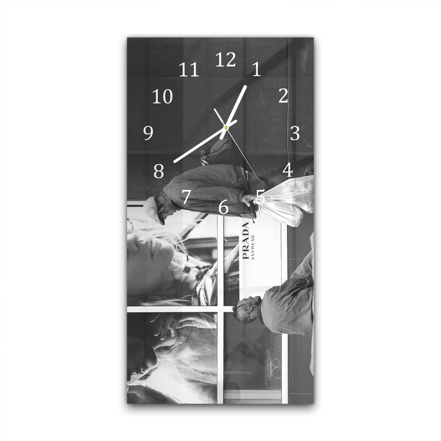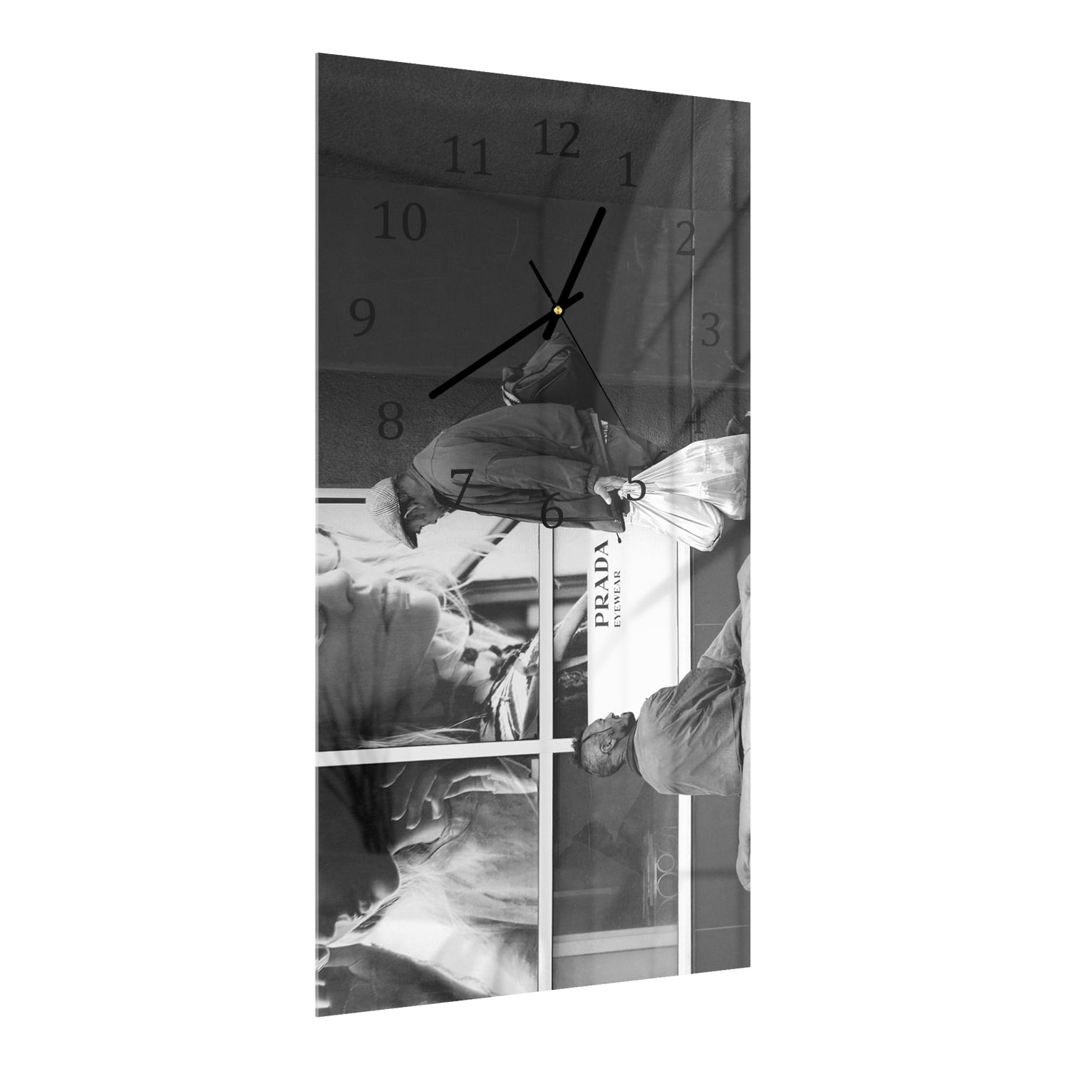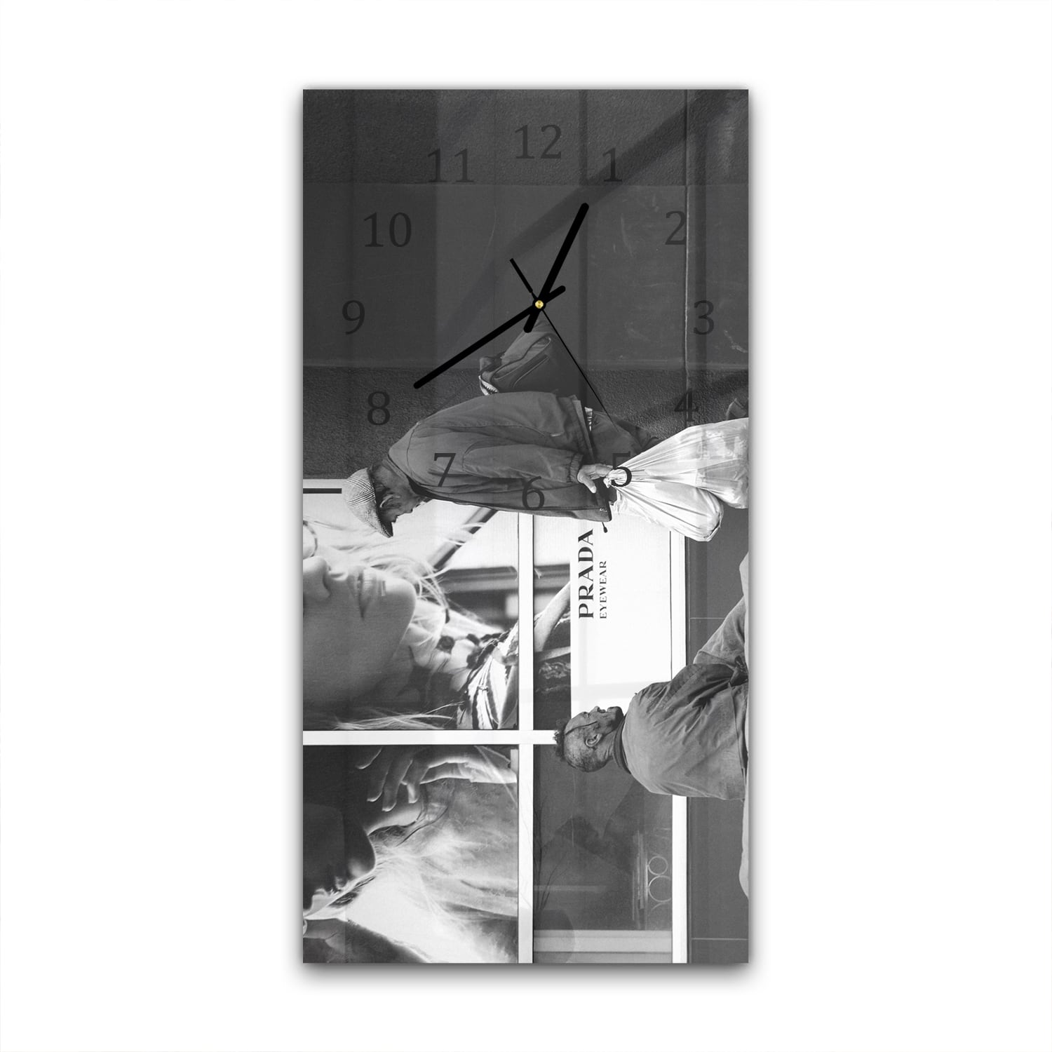Wanduhr 30x60 - Obdachlose vor Prada-Laden
