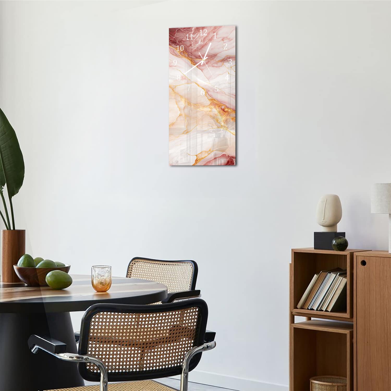 Wanduhr 30x60 - Rot-rosa Marmor