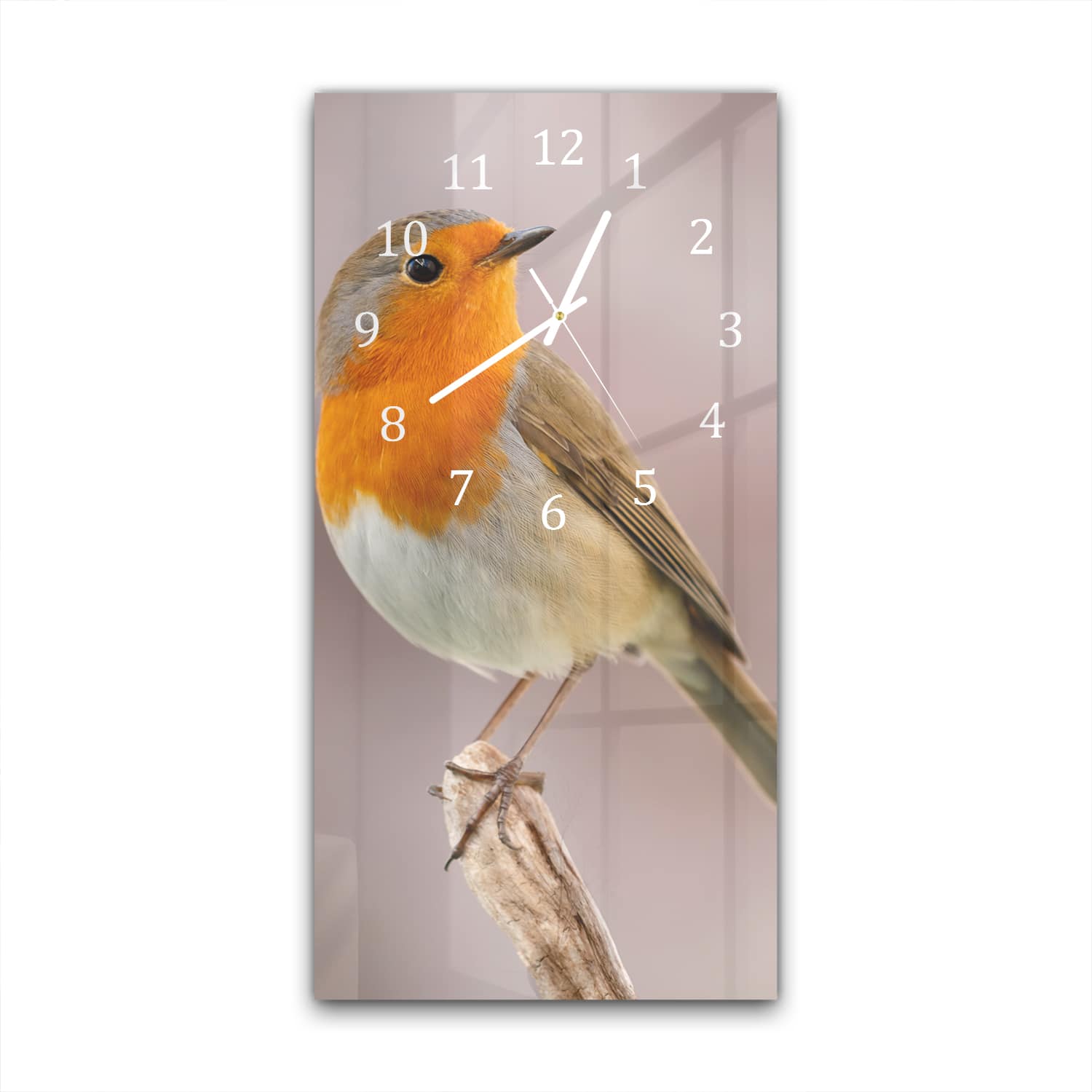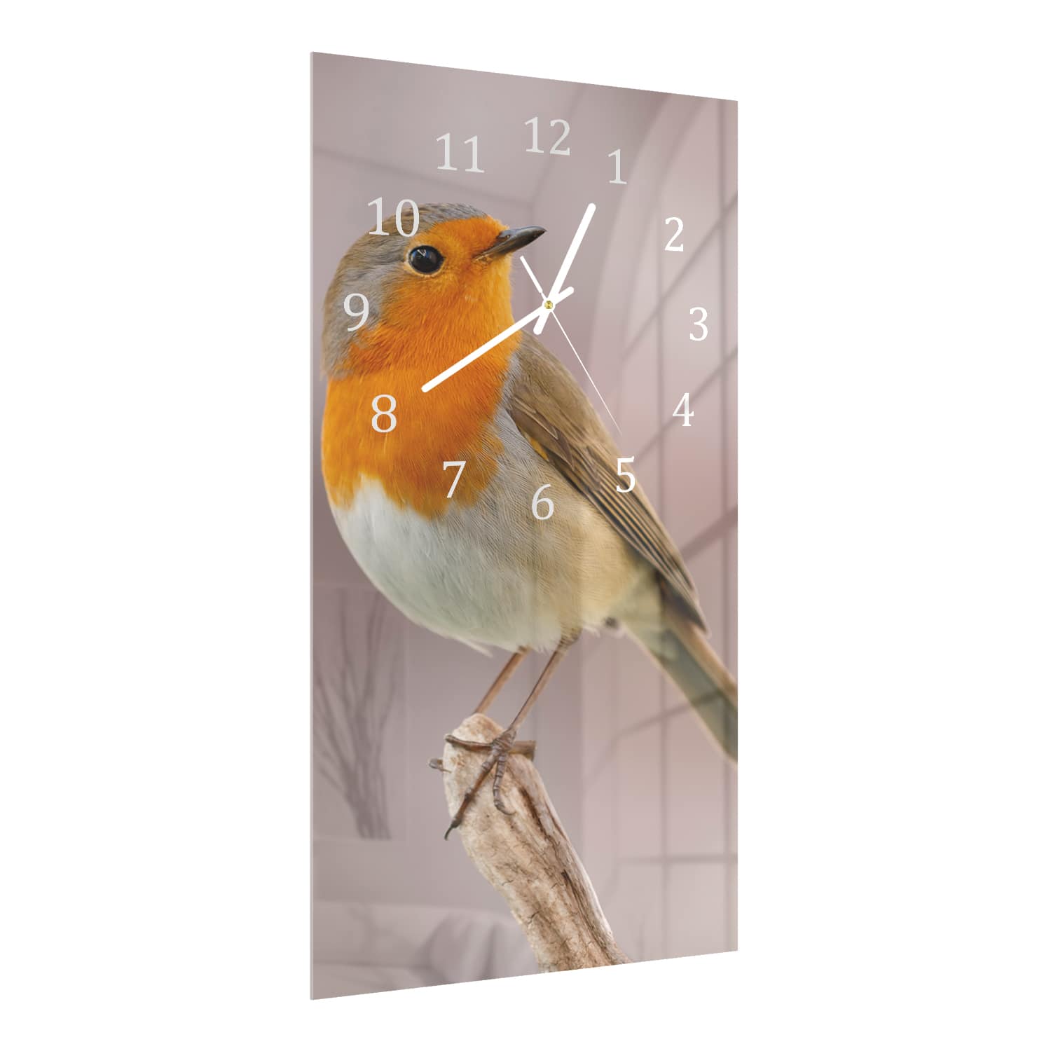 Wanduhr 30x60 - Rotkehlchen auf Zweig