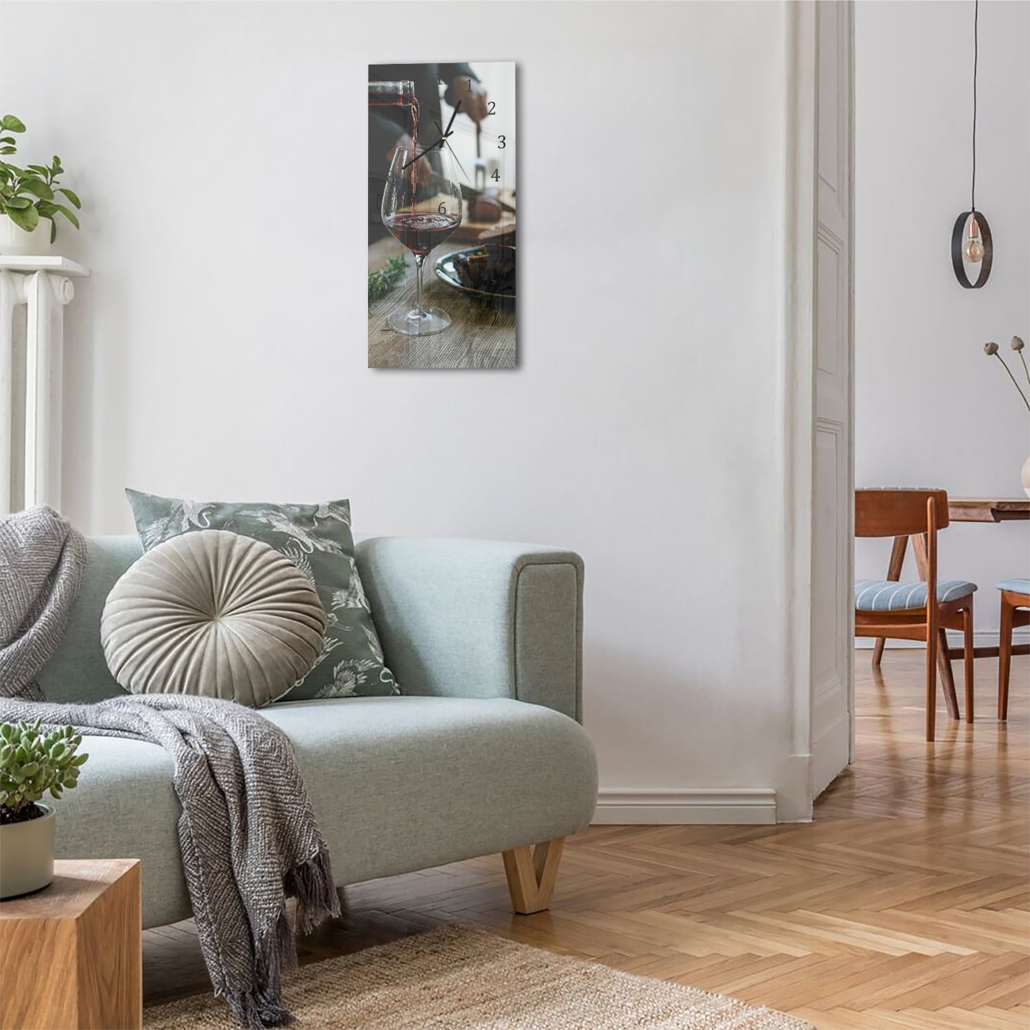 Wanduhr 30x60 - Rotwein und Mahlzeit