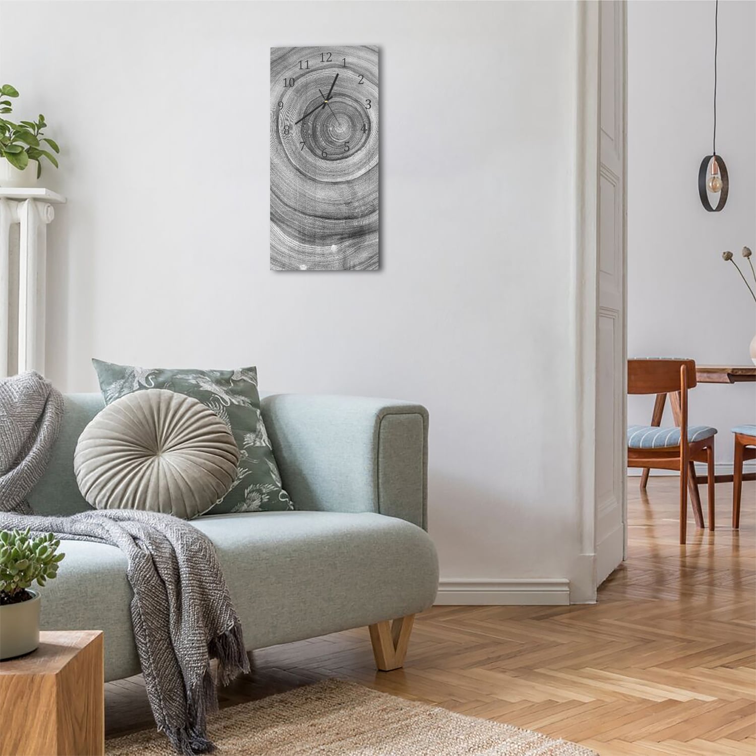 Wanduhr 30x60 - Schwarz-weiße Baumringe