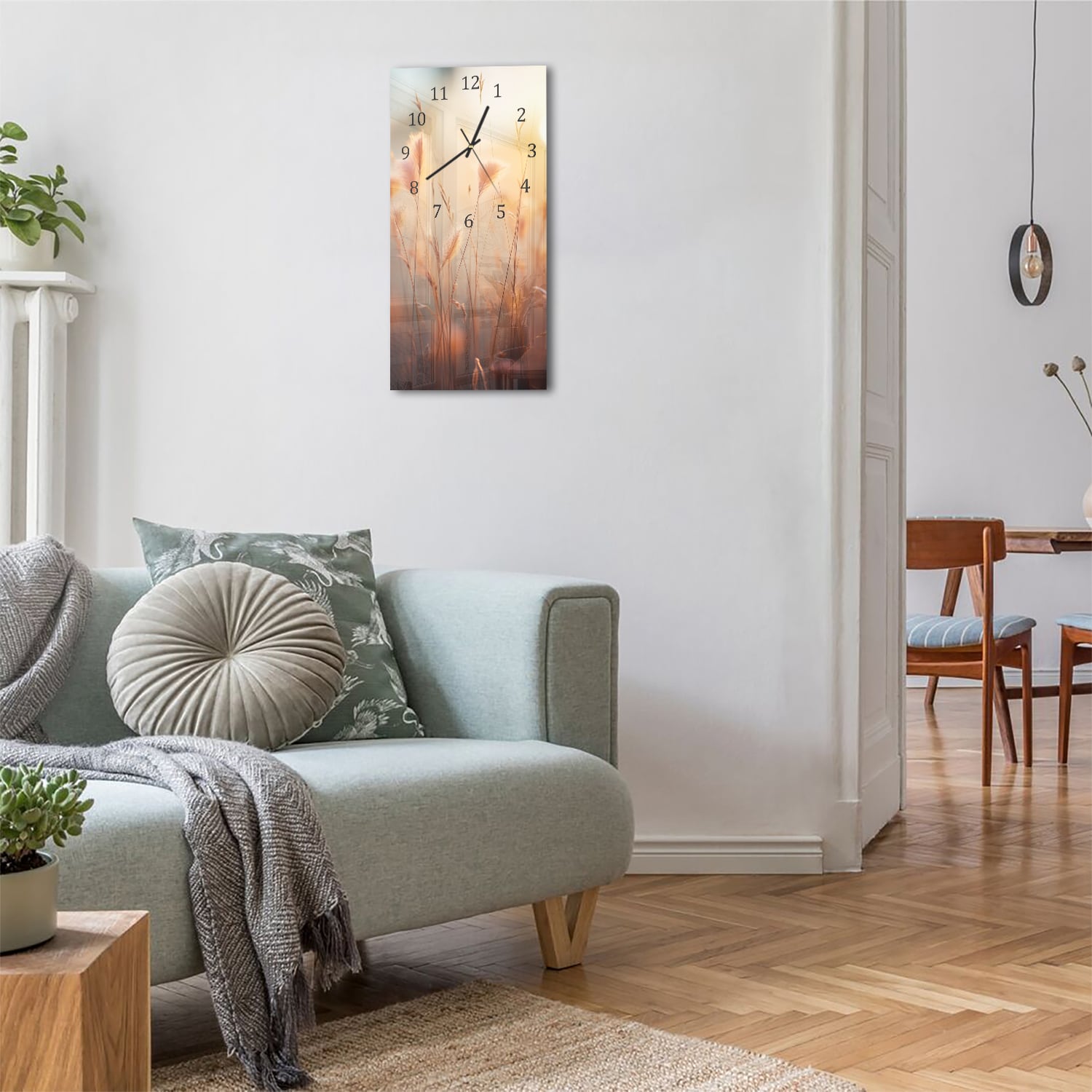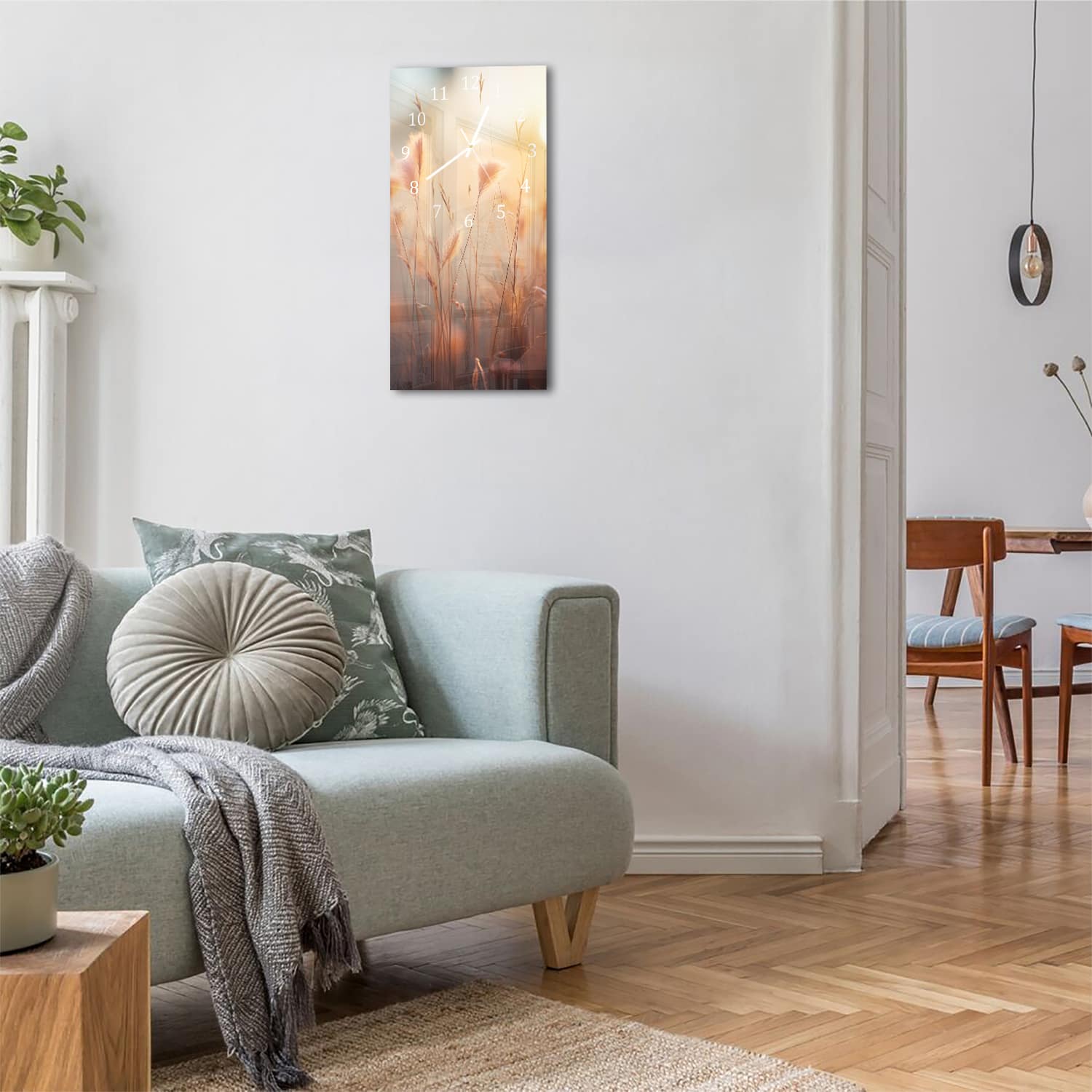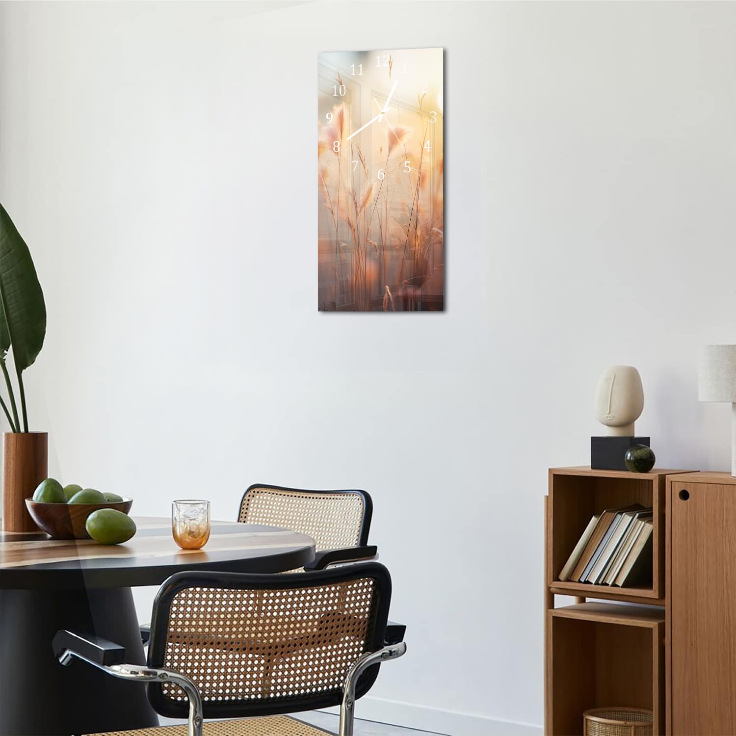 Wanduhr 30x60 - Sonnenuntergang im Grasfeld