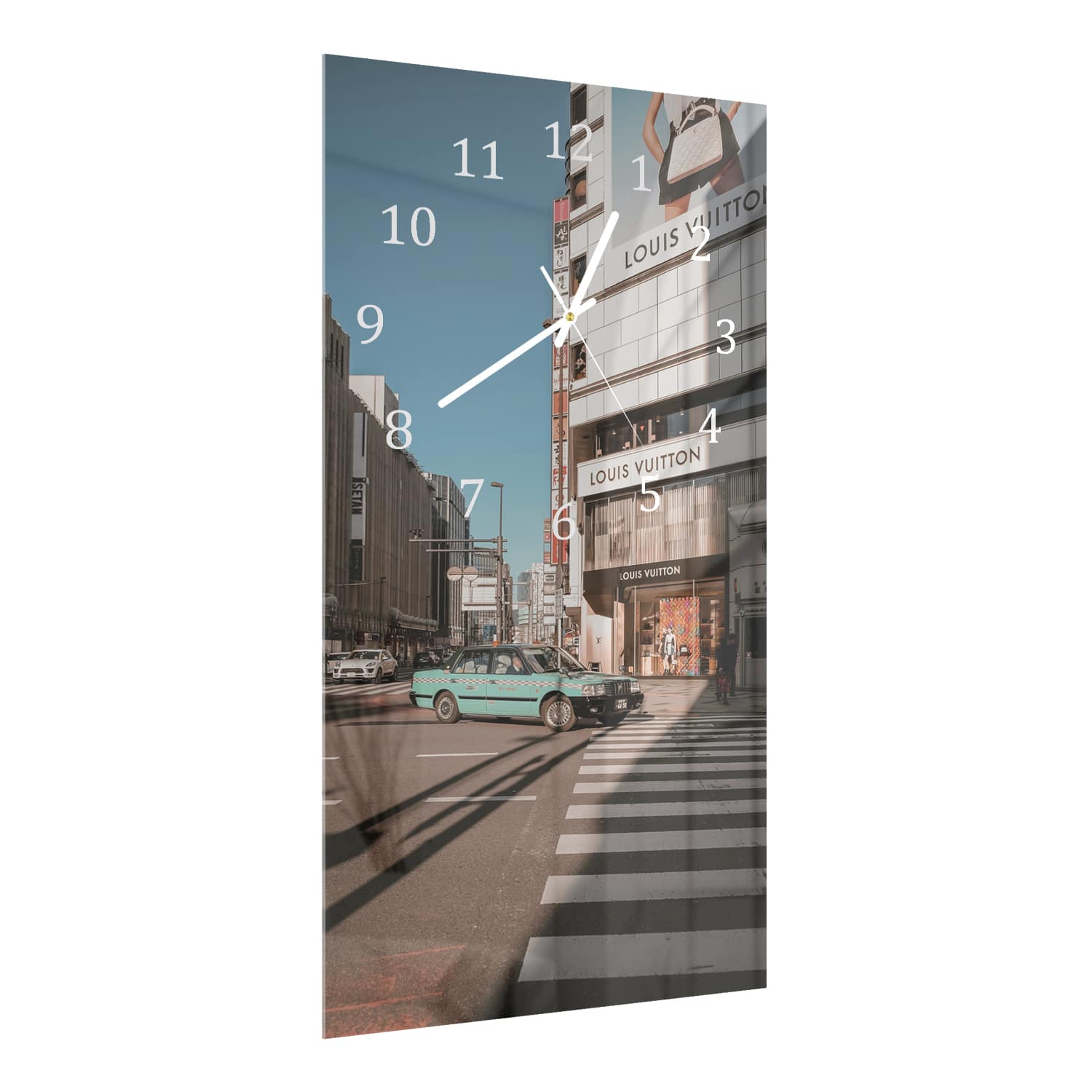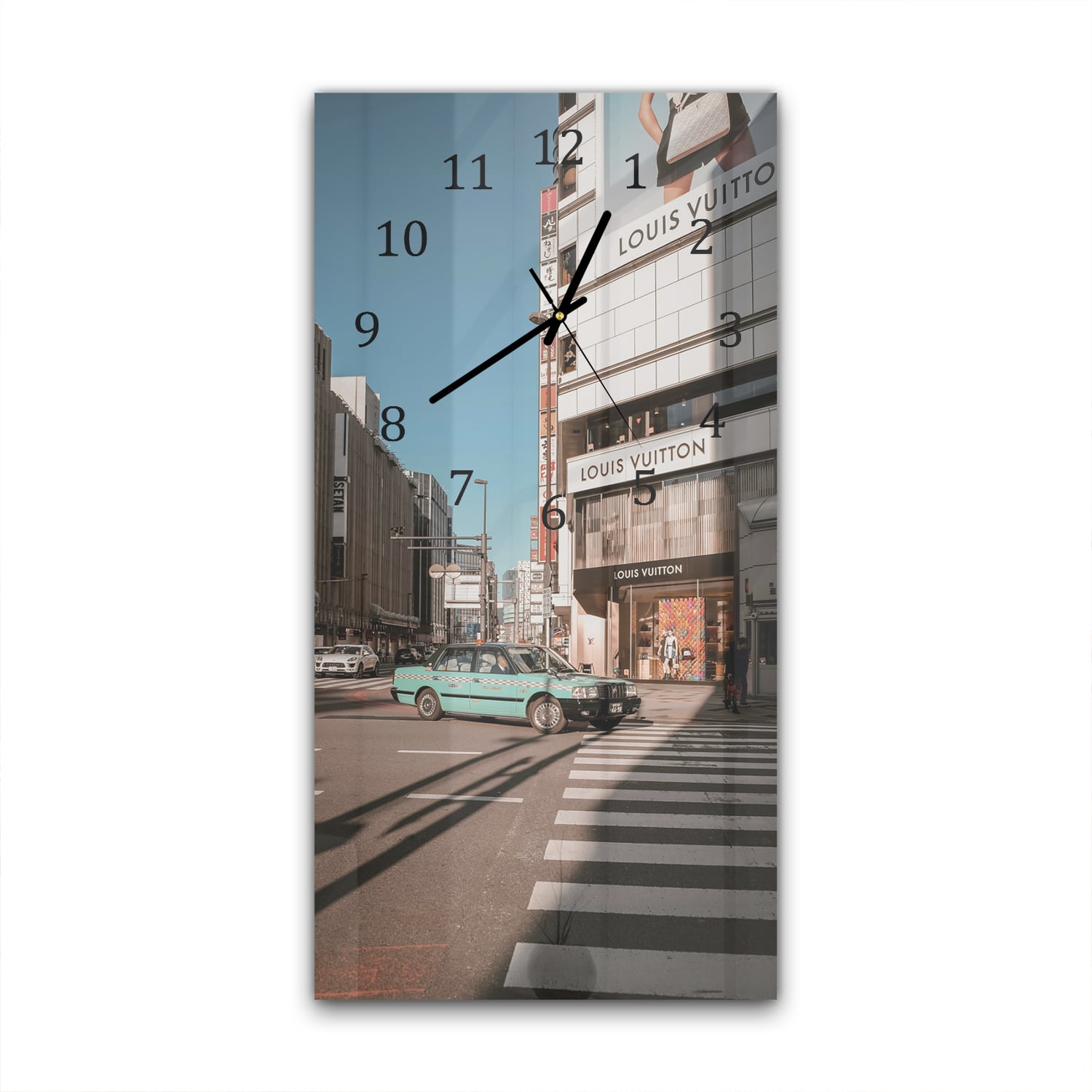 Wanduhr 30x60 - Taxi vor Louis Vuitton