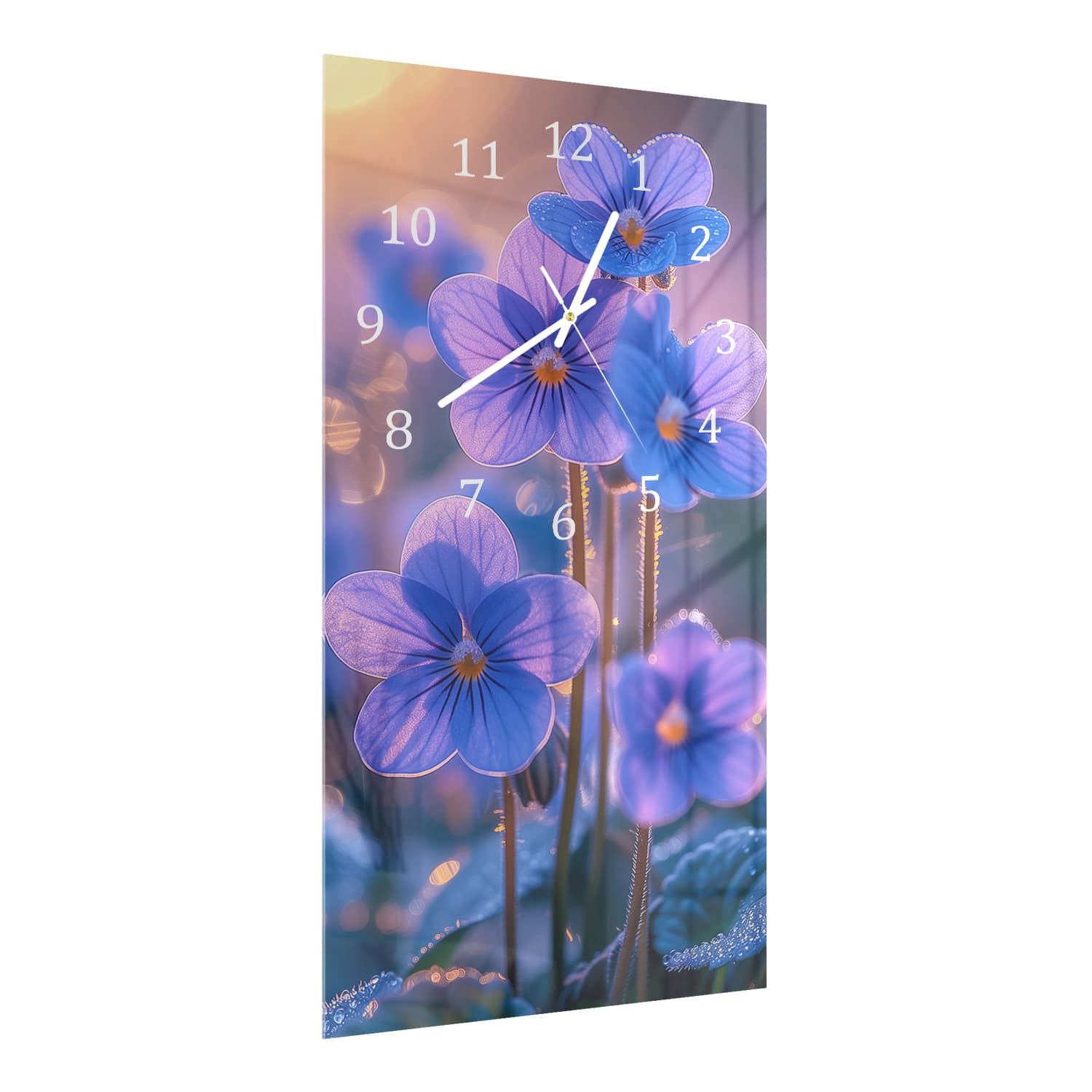 Wanduhr 30x60 - Veilchen in der Morgensonne