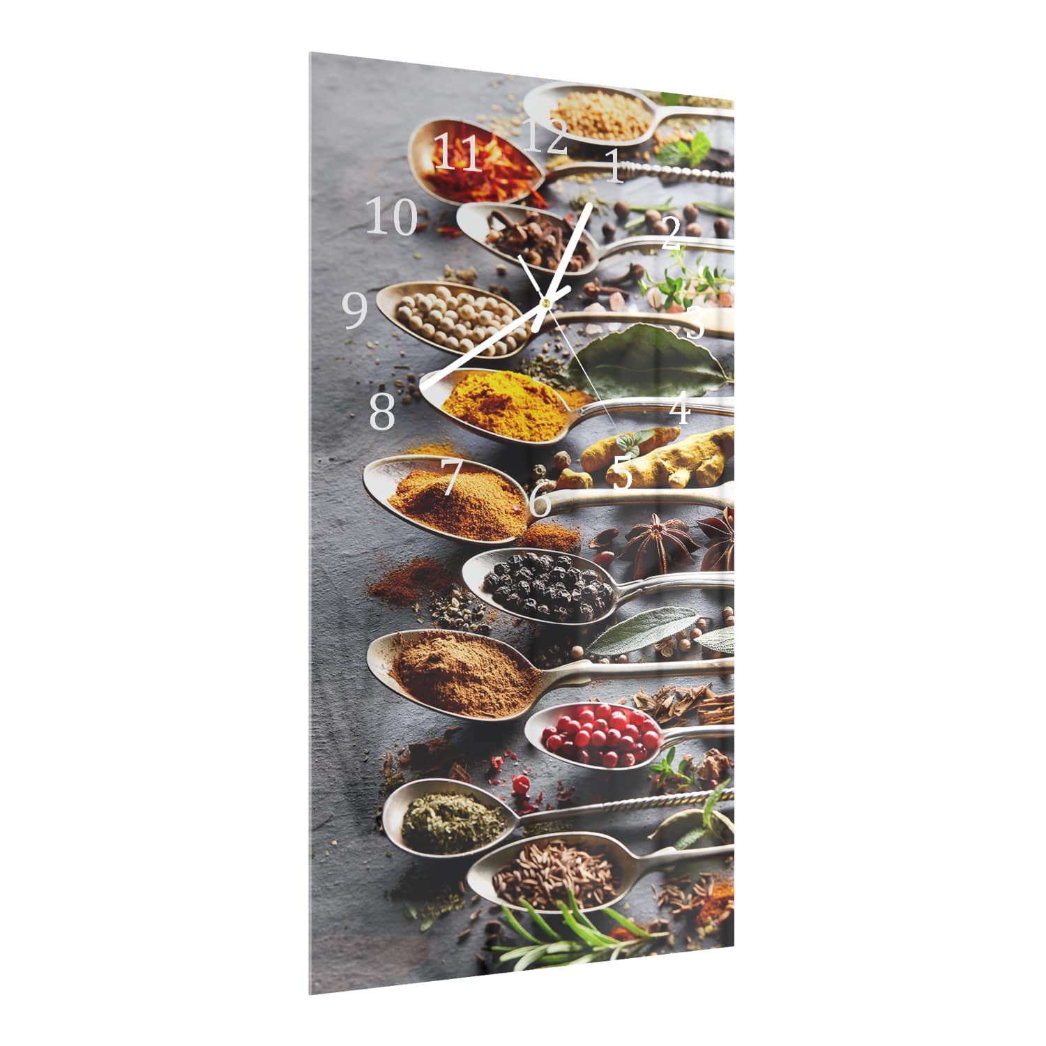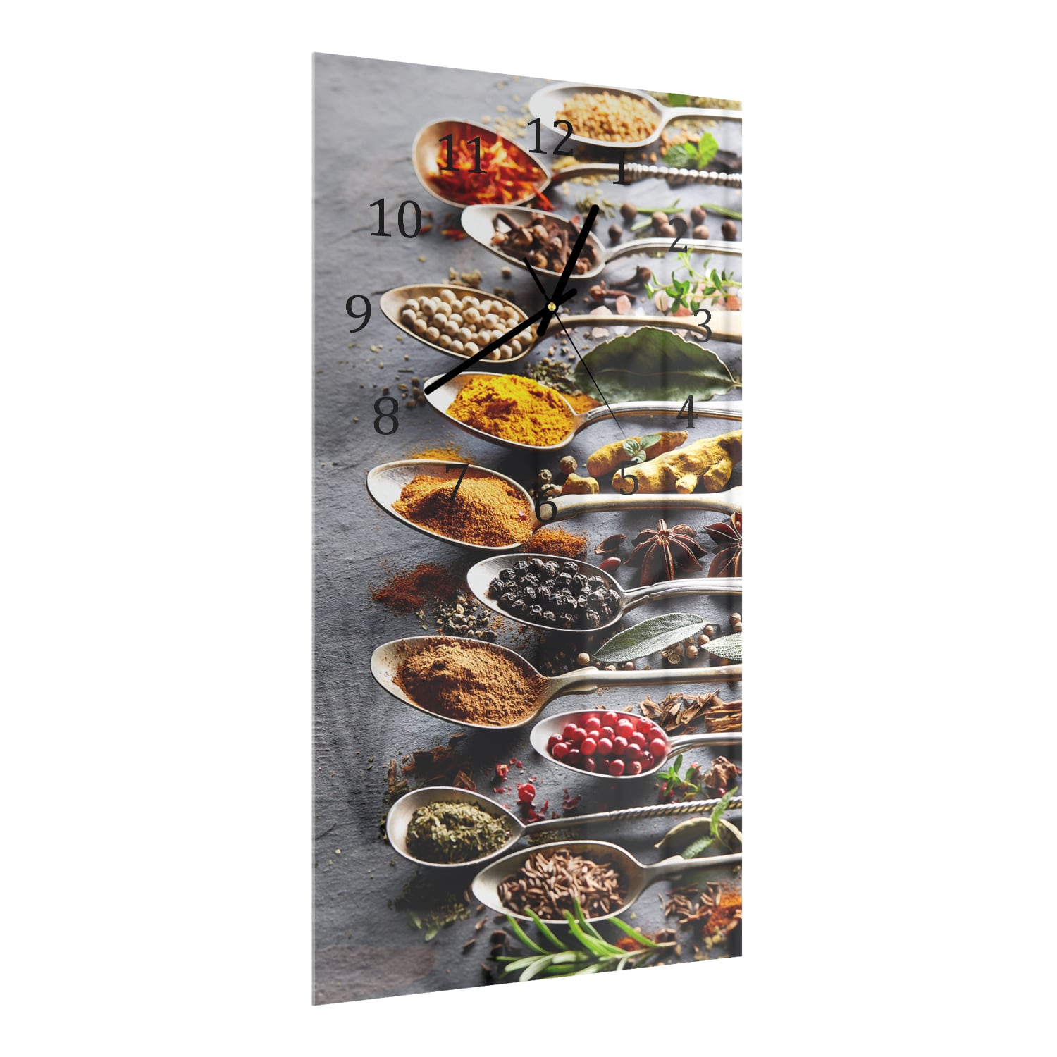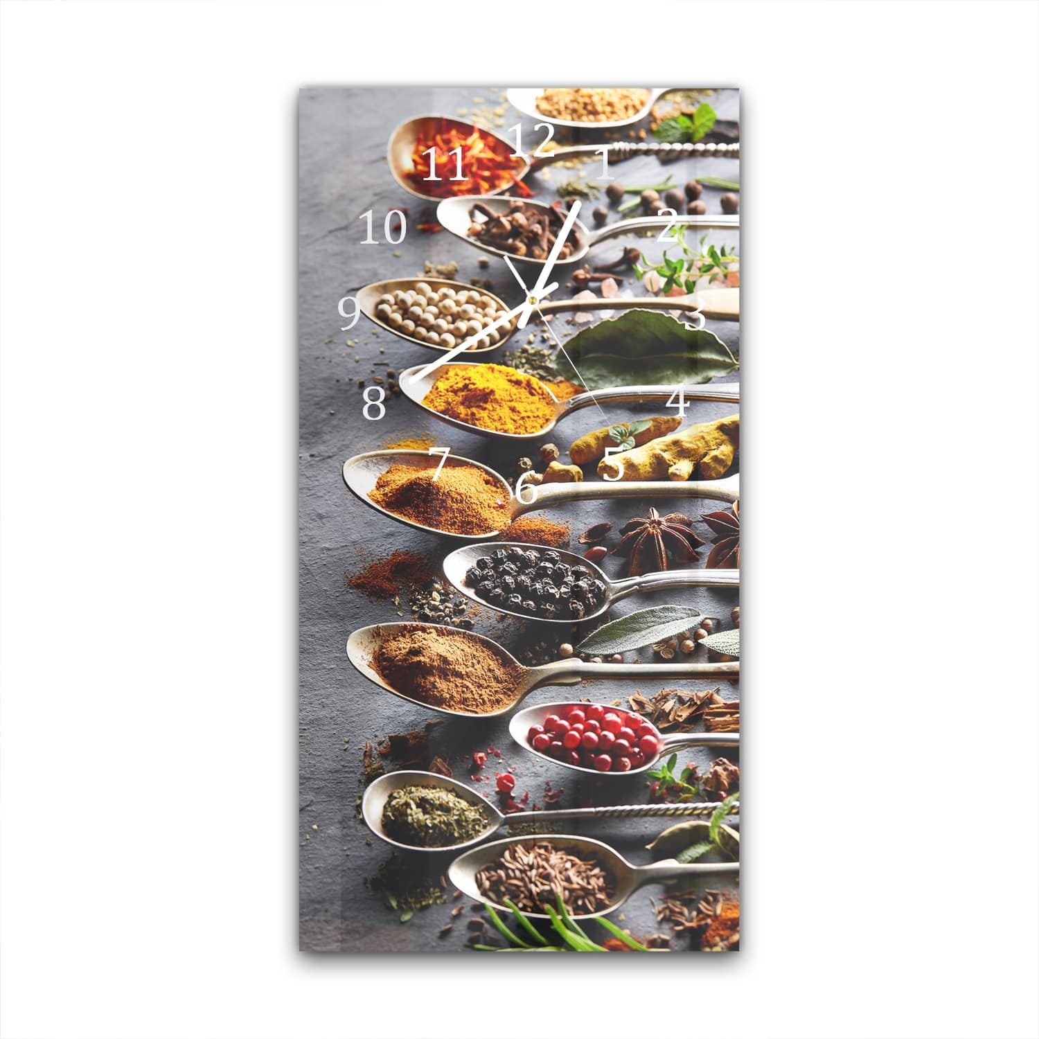 Wanduhr 30x60 - Verschiedene Kräuter in Löffeln
