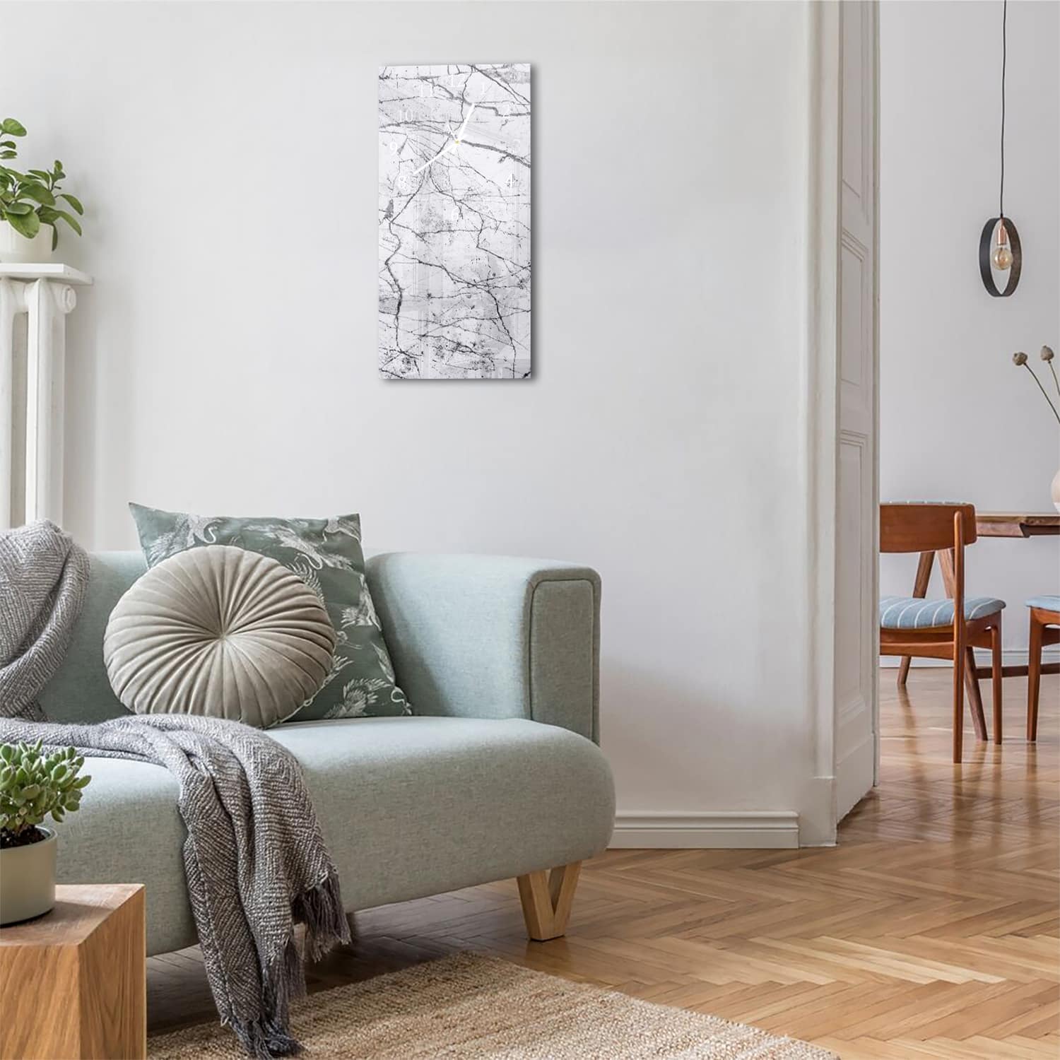 Wanduhr 30x60 - Weiß-schwarzer Marmor