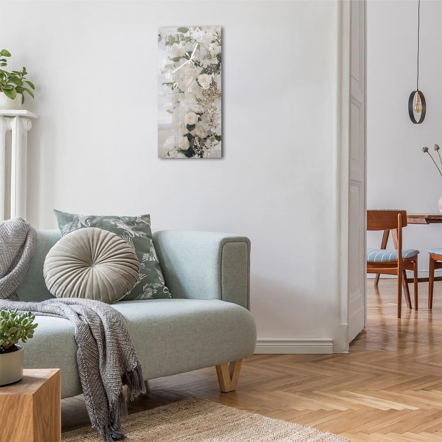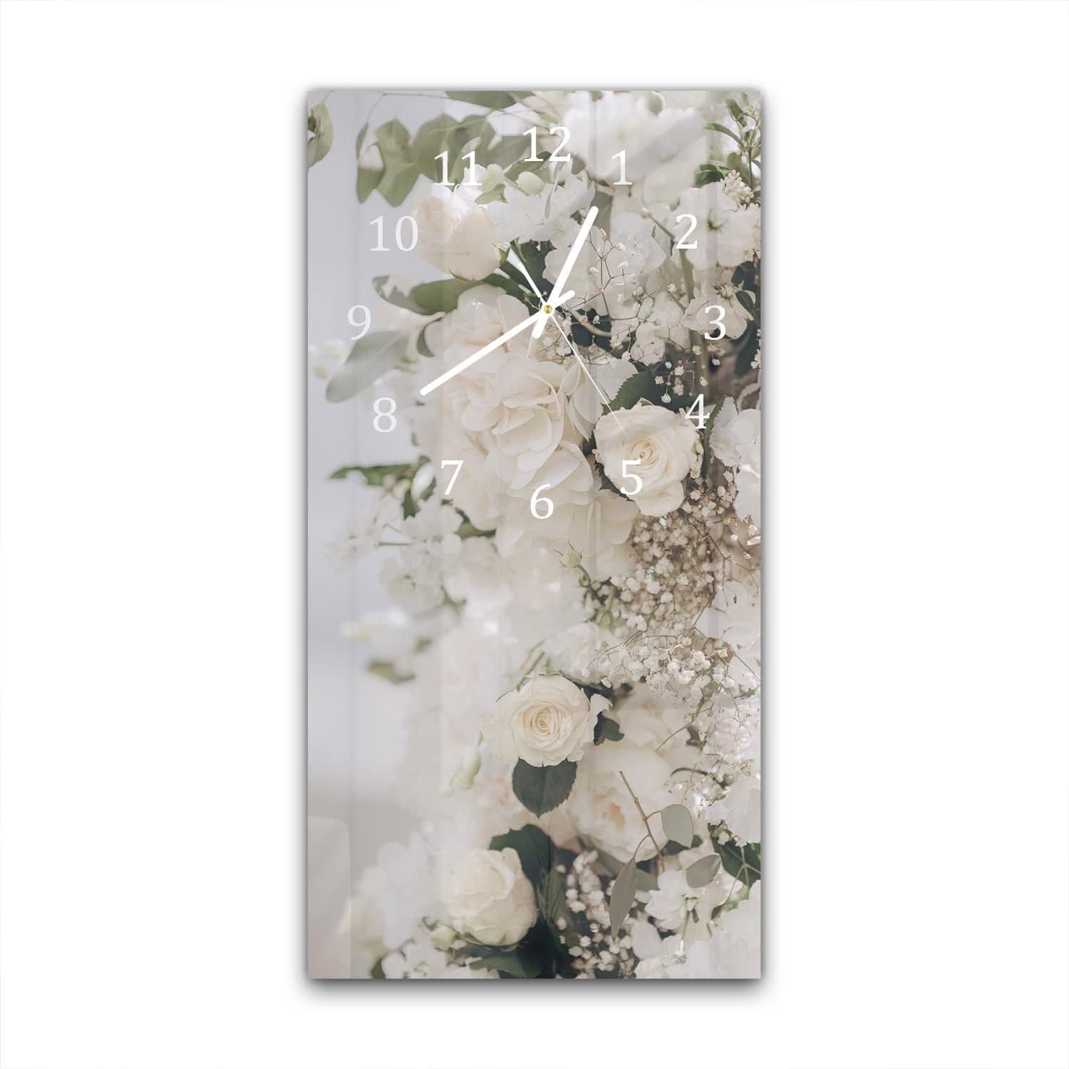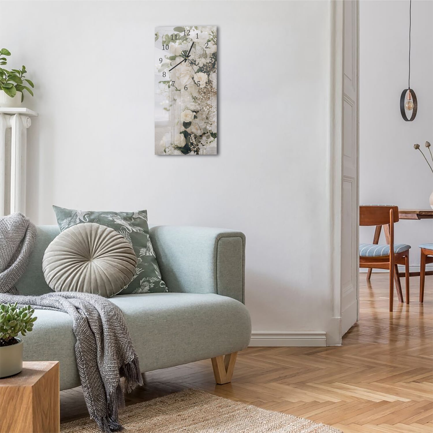 Wanduhr 30x60 - Weiße Blumen-Deko