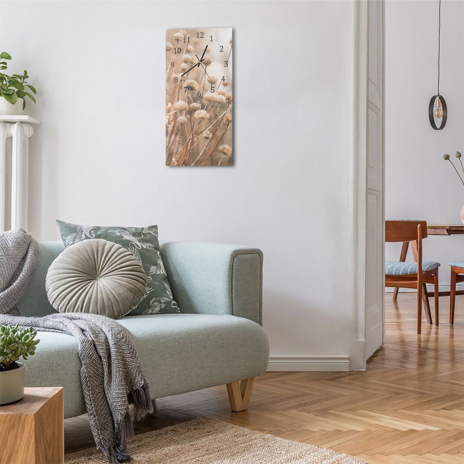 Wanduhr 30x60 - Winterliche Trockenblumen