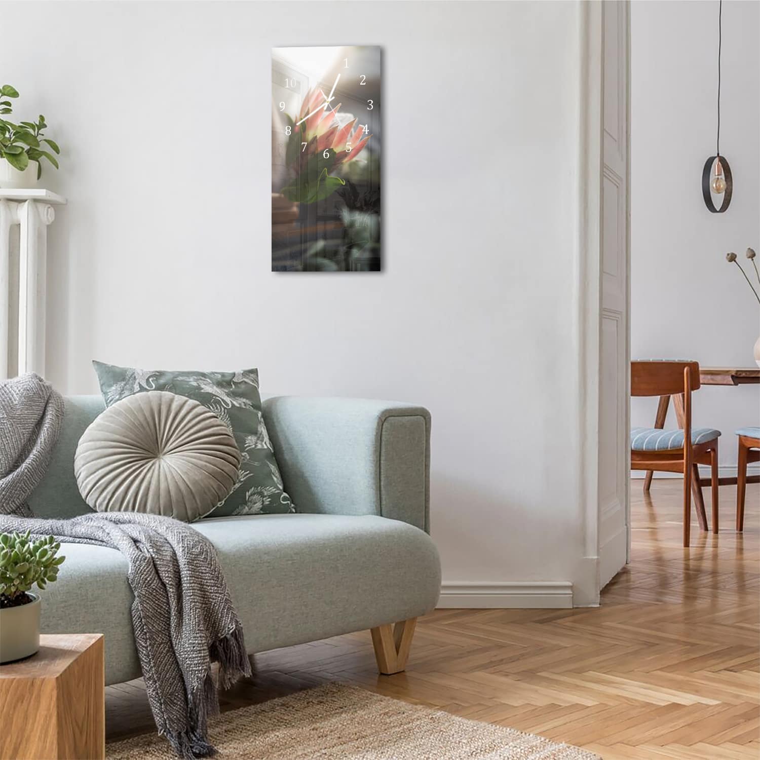 Wanduhr 30x60 - Zarte Morgenblume