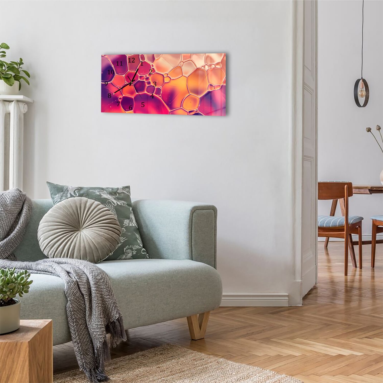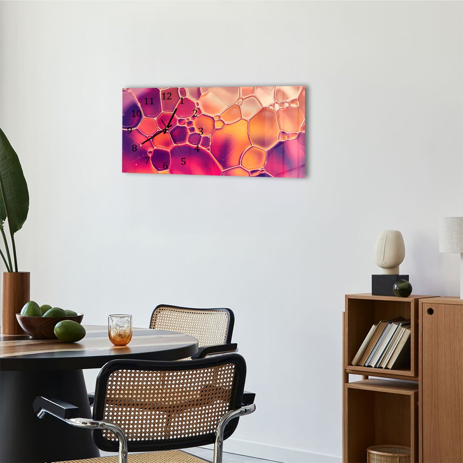 Verleihe deinem Interieur ein stilvolles Upgrade mit einer langlebigen Wanduhr aus Glas, ausgestattet mit einem leisen Uhrwerk.