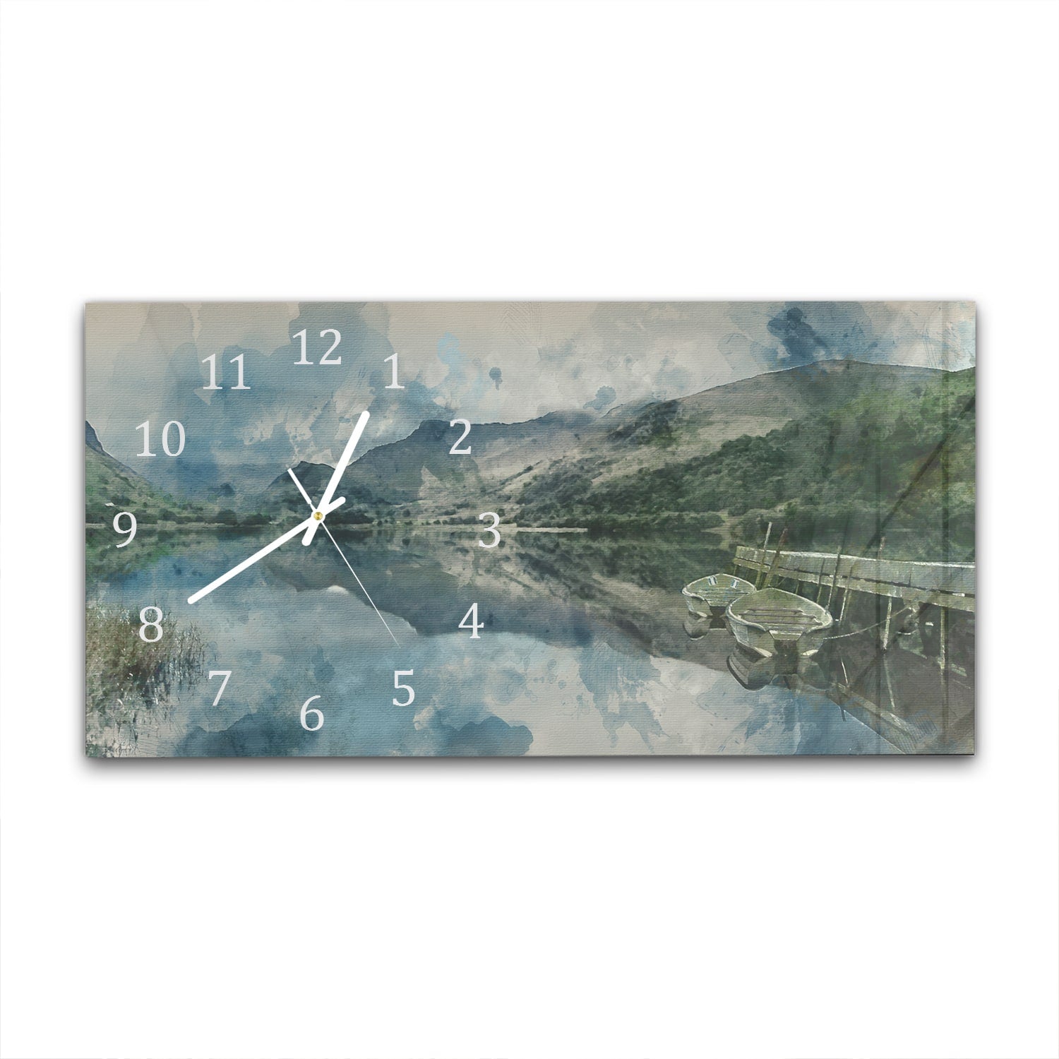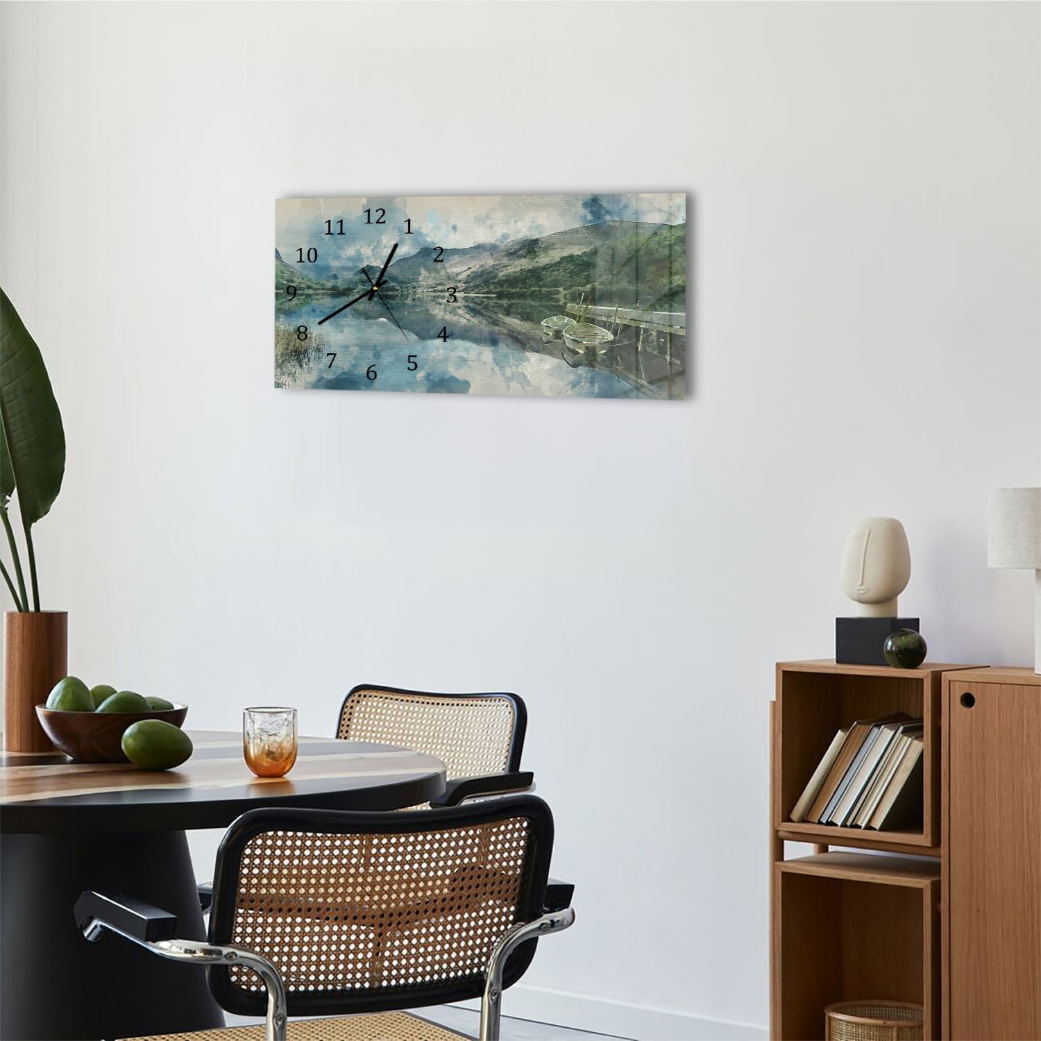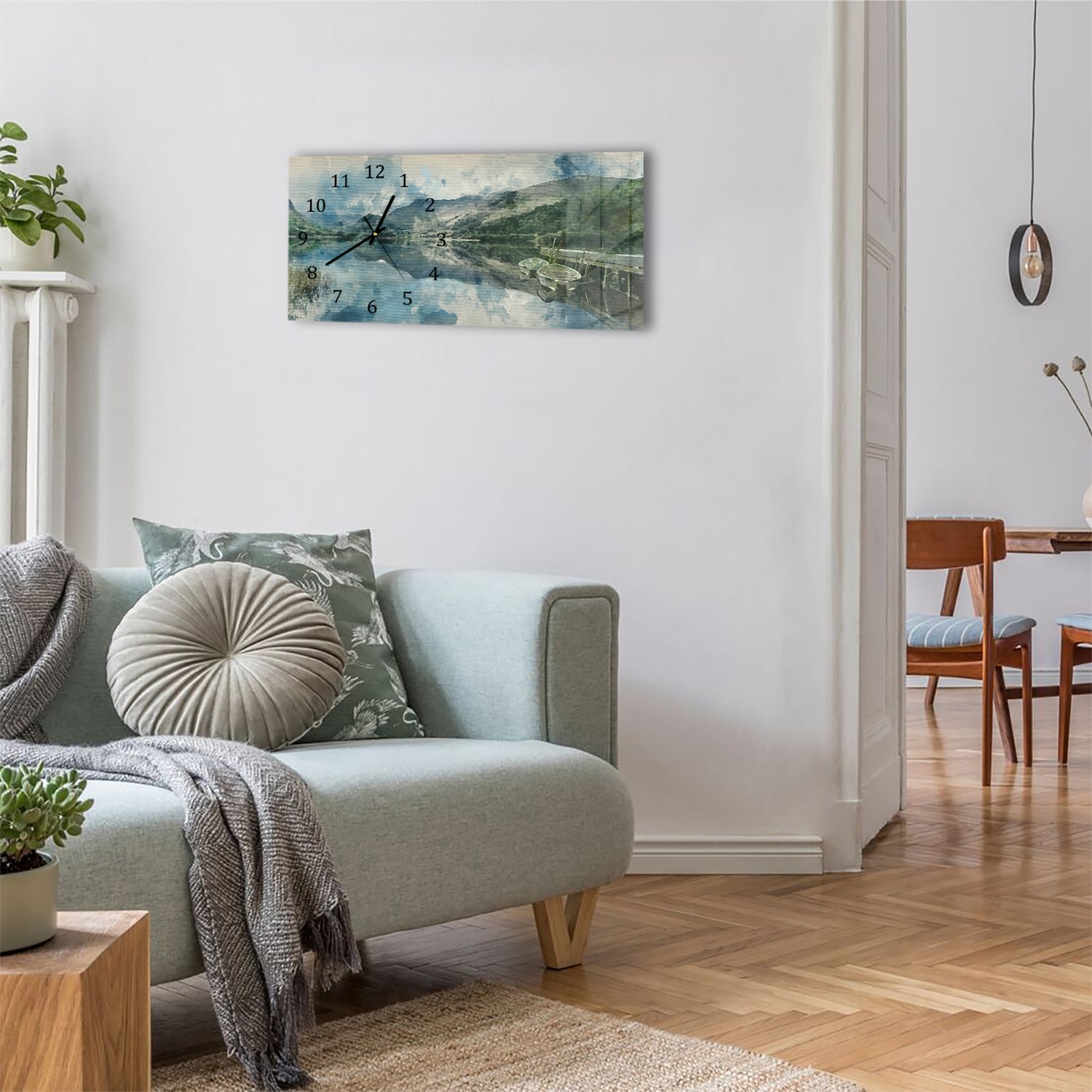 Wanduhr 60x30 - Aquarell-Bergseegemälde