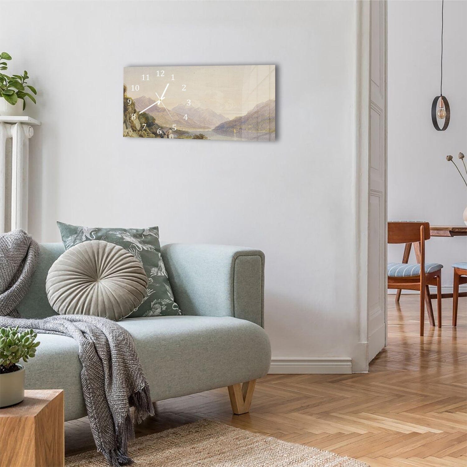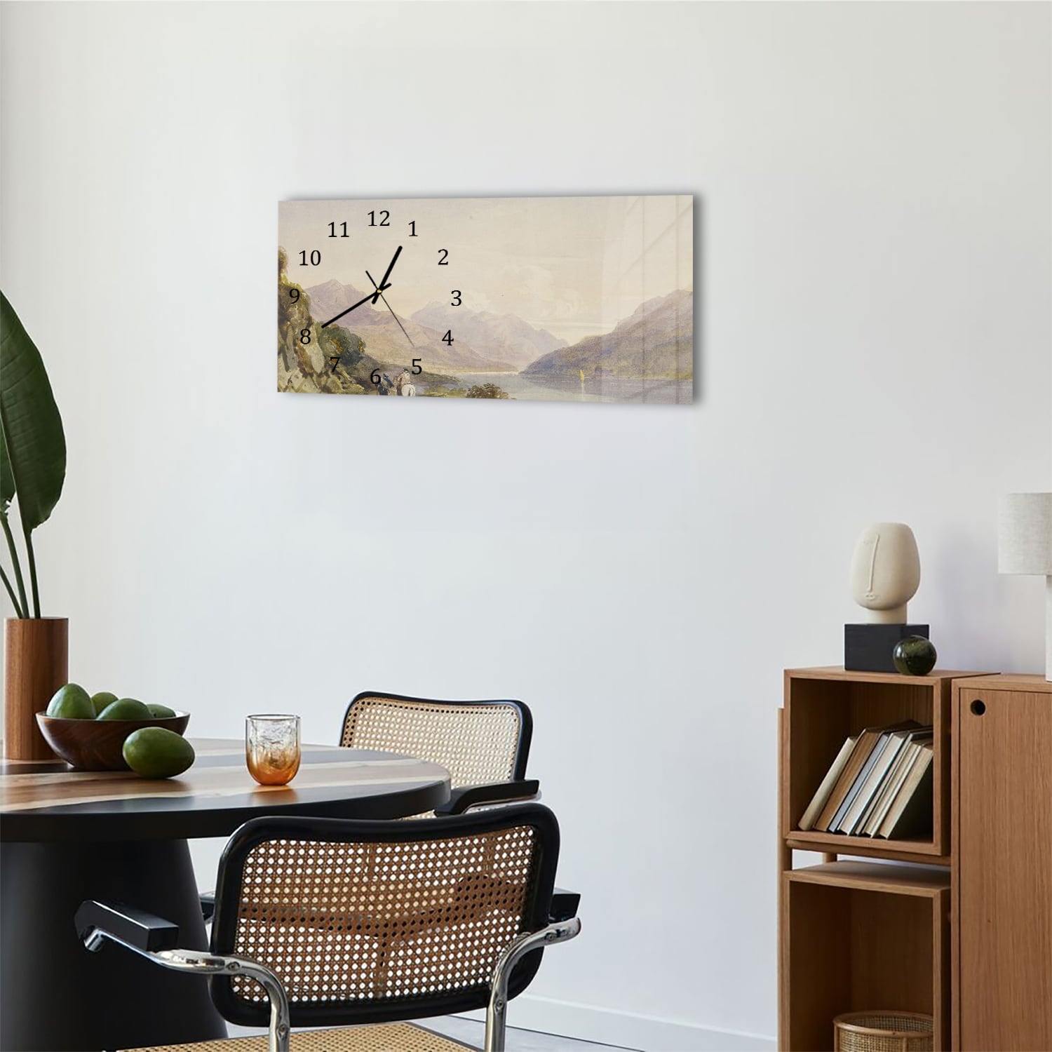 Wanduhr 60x30 - Aquarell-Gemälde Pferd in den Bergen