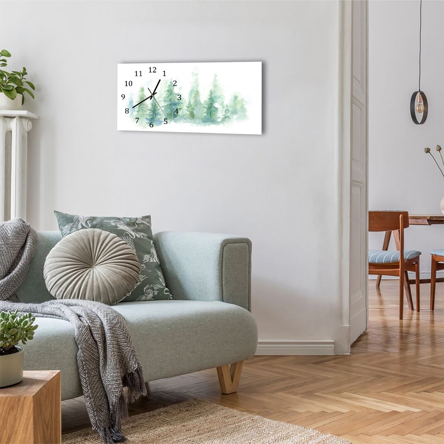 Wanduhr 60x30 - Aquarell-Waldgemälde