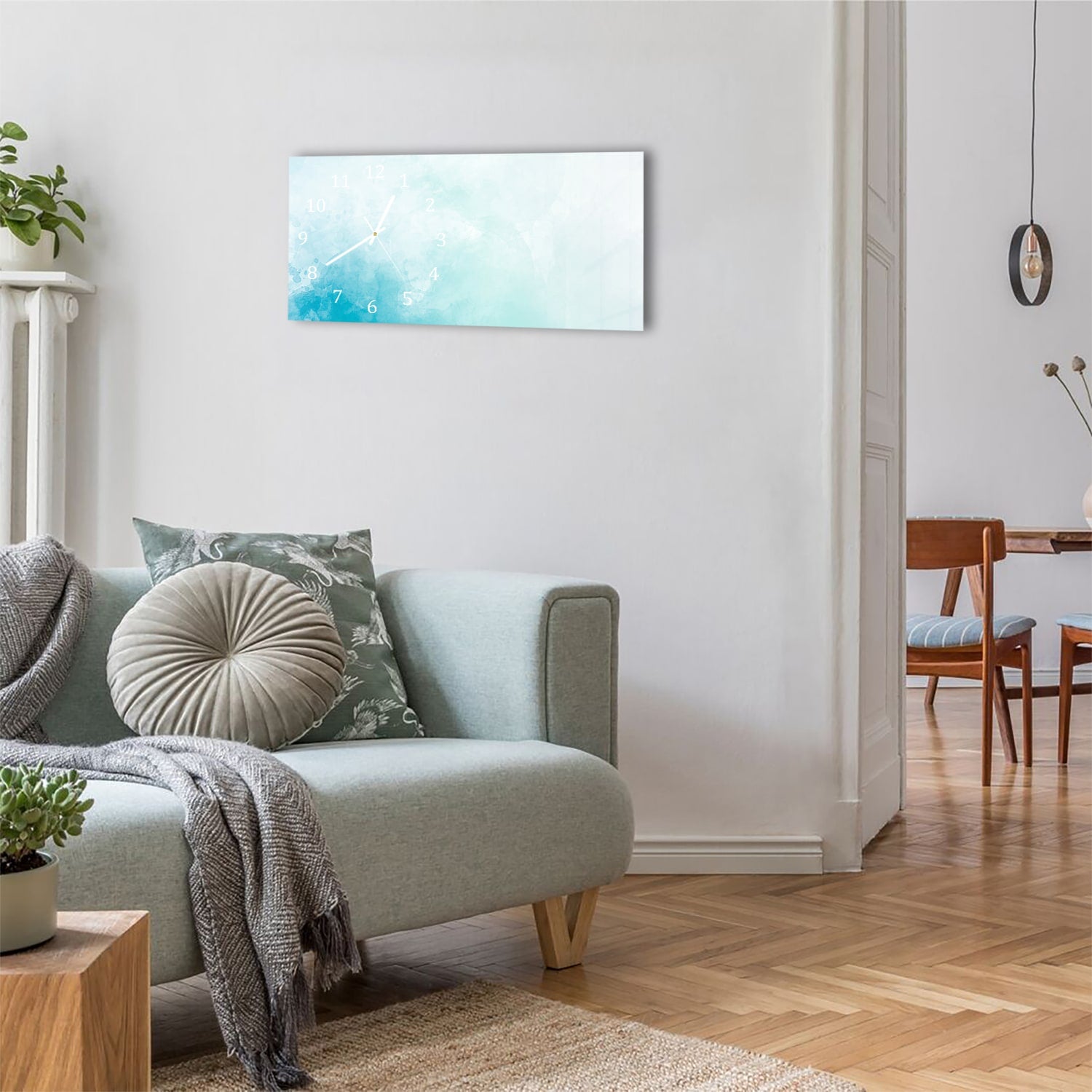 Wanduhr 60x30 - Blaue Aquarellfarbe