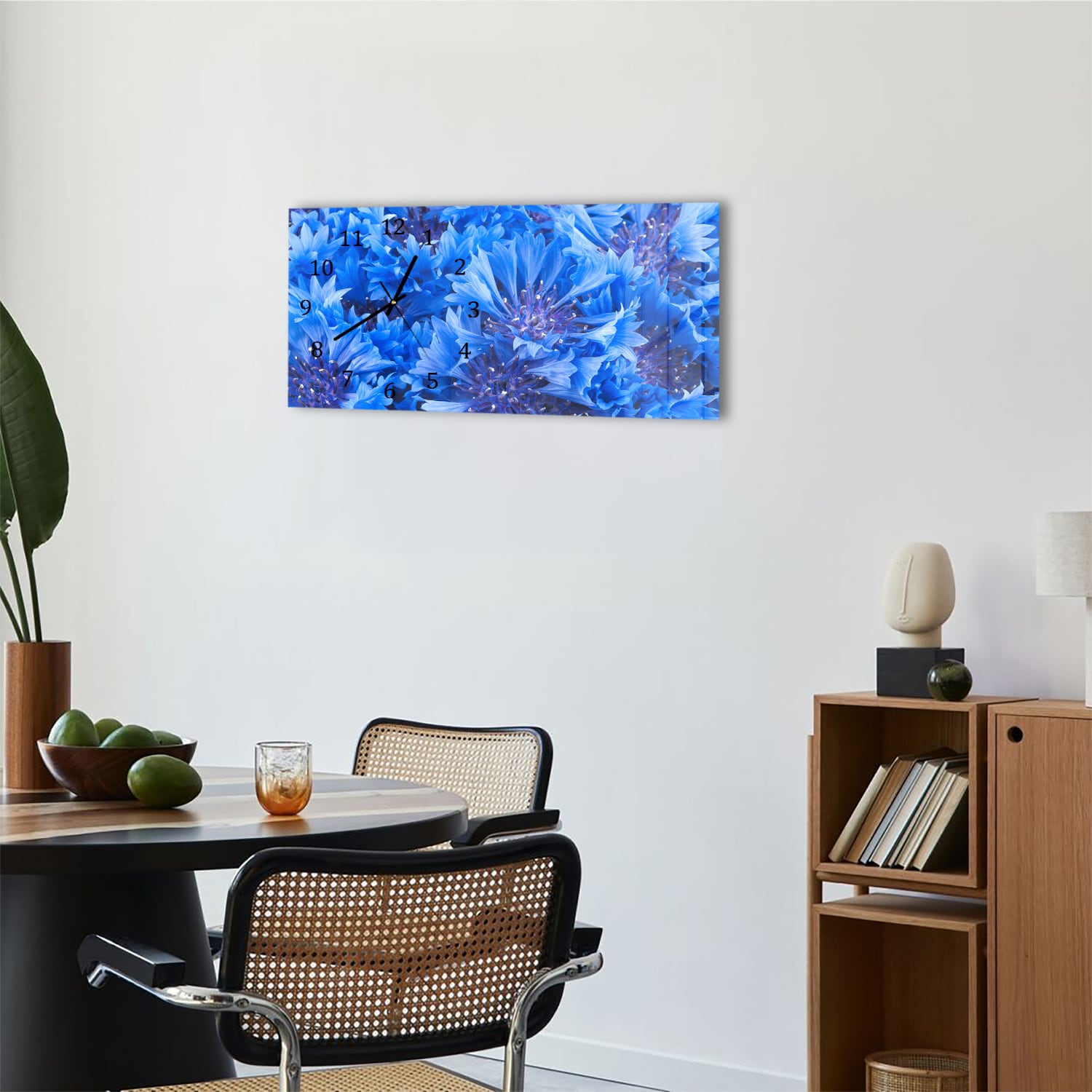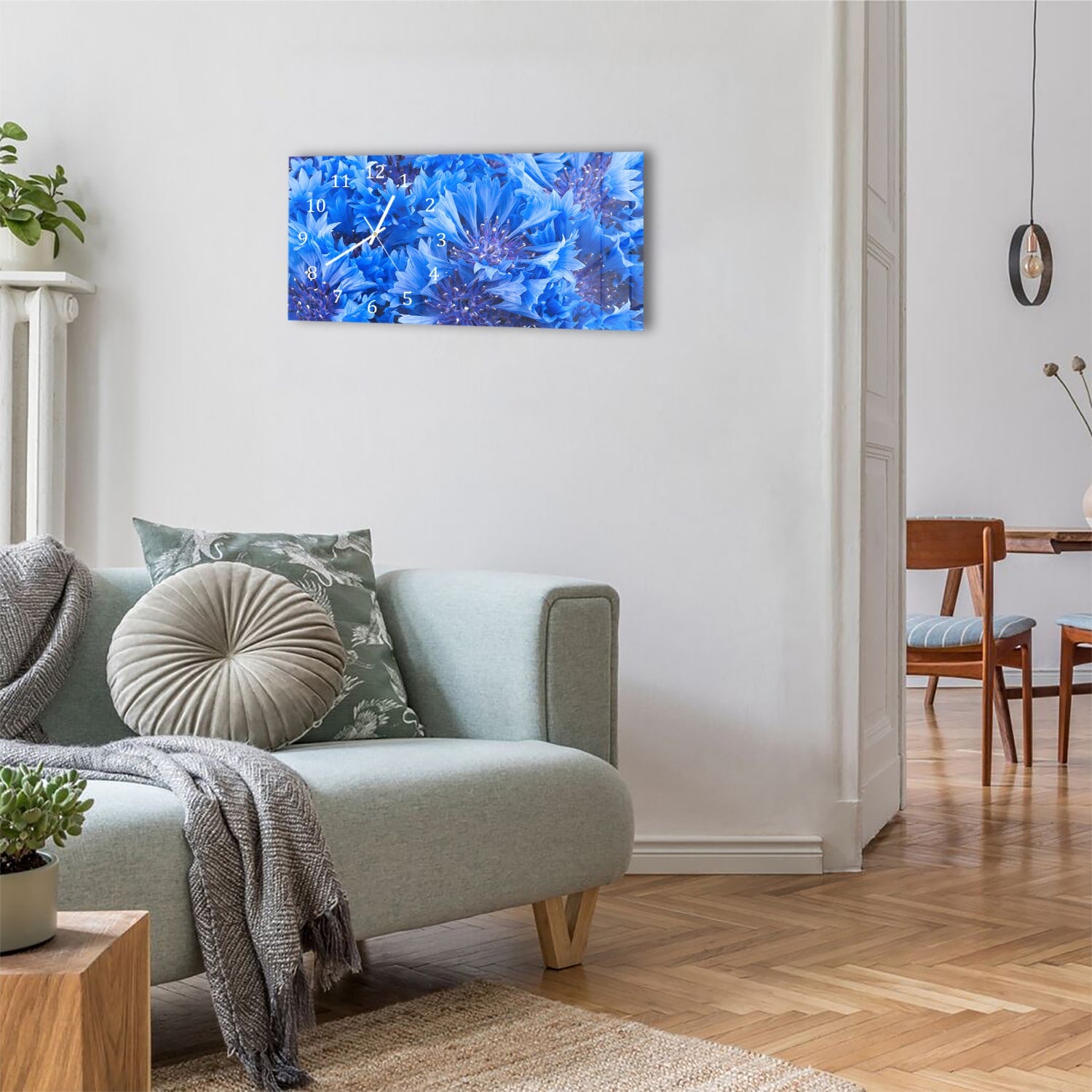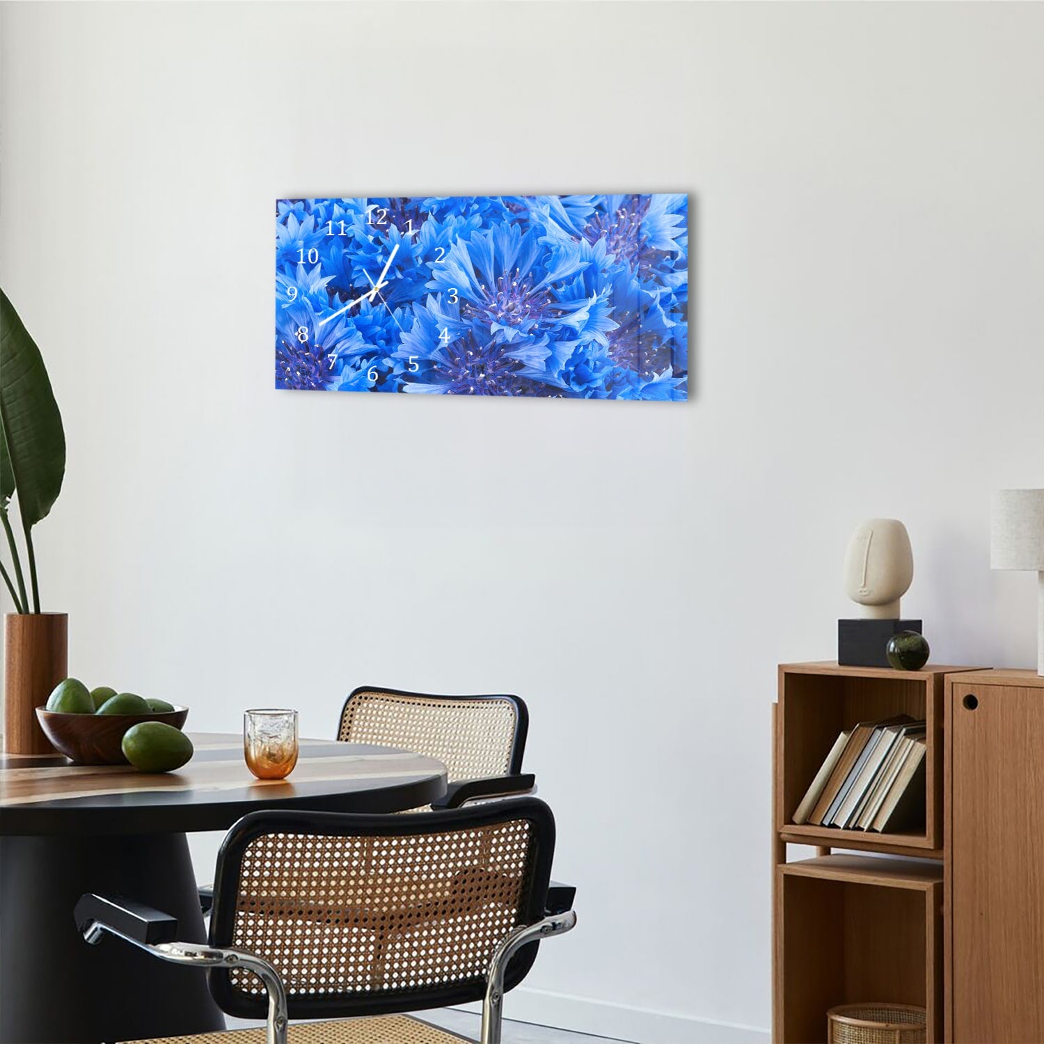 Wanduhr 60x30 - Blaue Kornblume