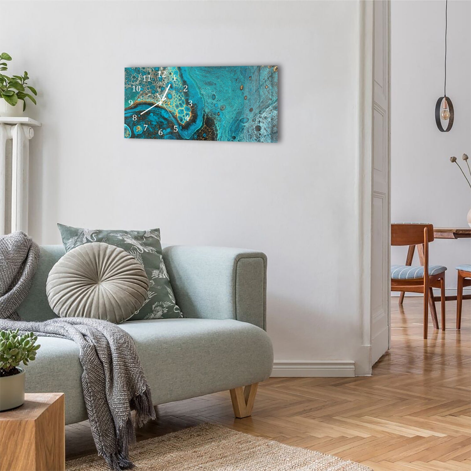 Wanduhr 60x30 - Blauer Marmoreffekt