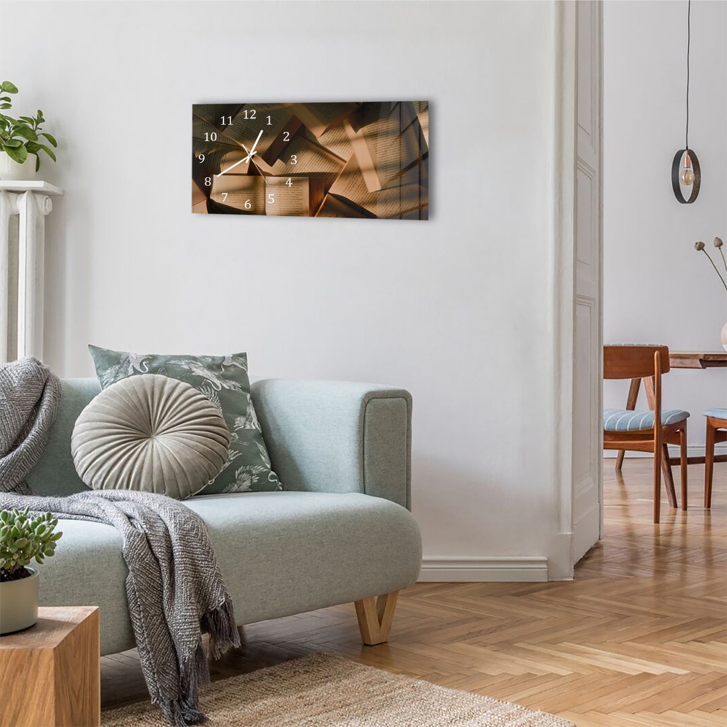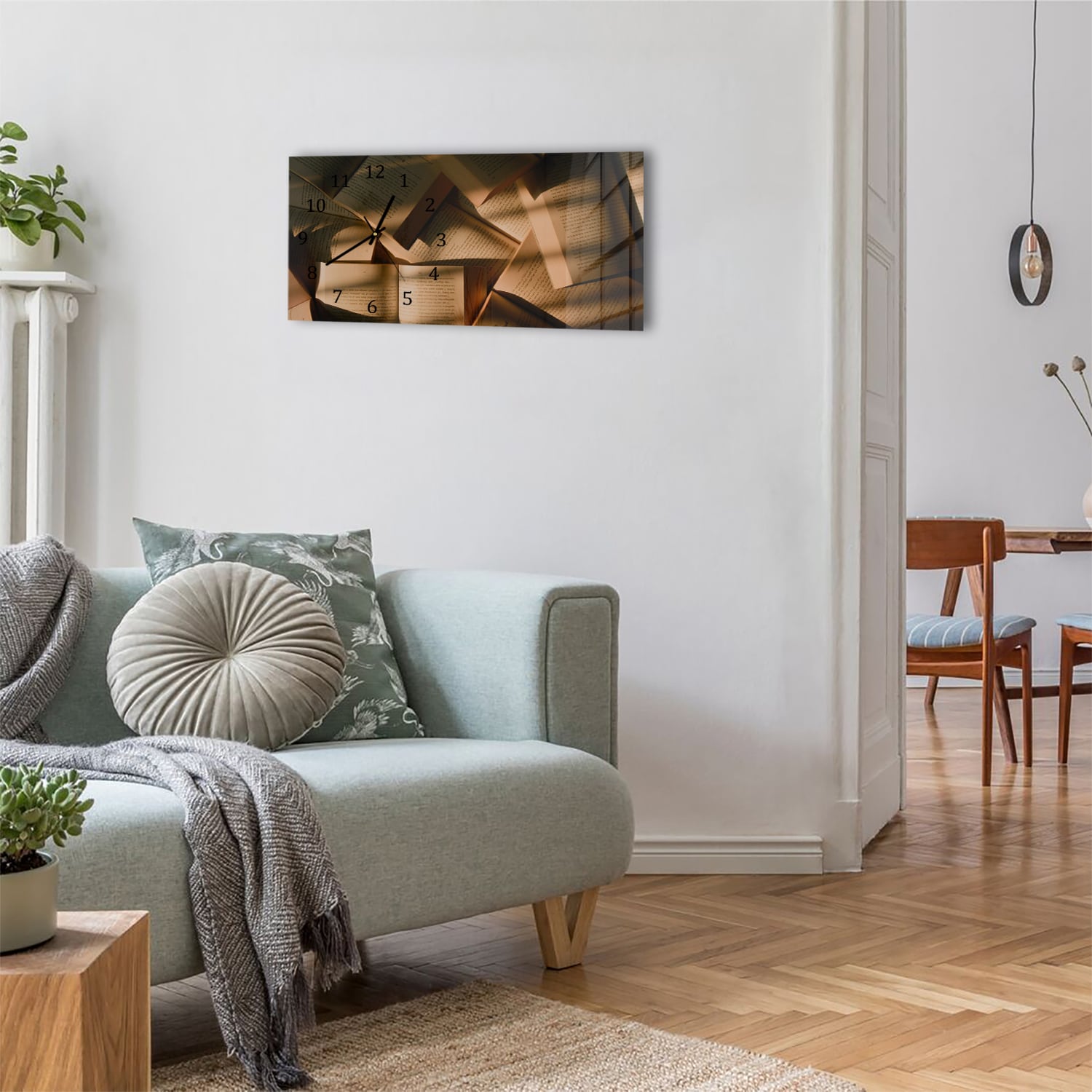Wanduhr 60x30 - Bücher-Textur