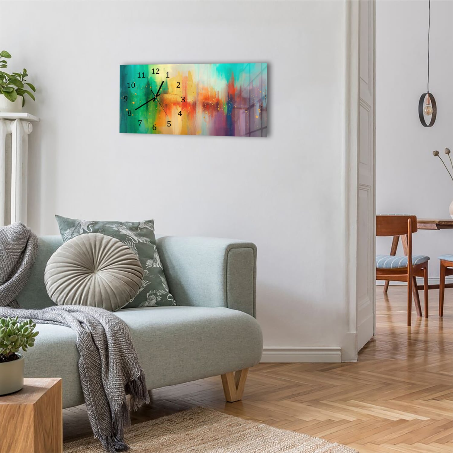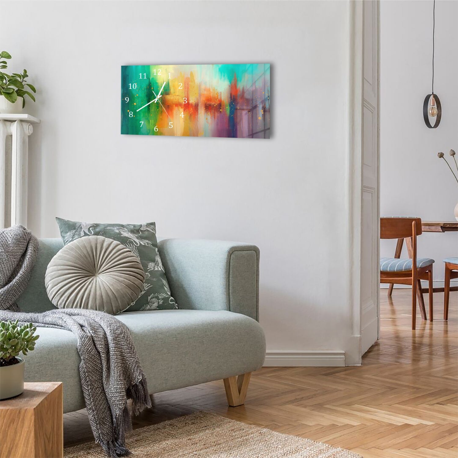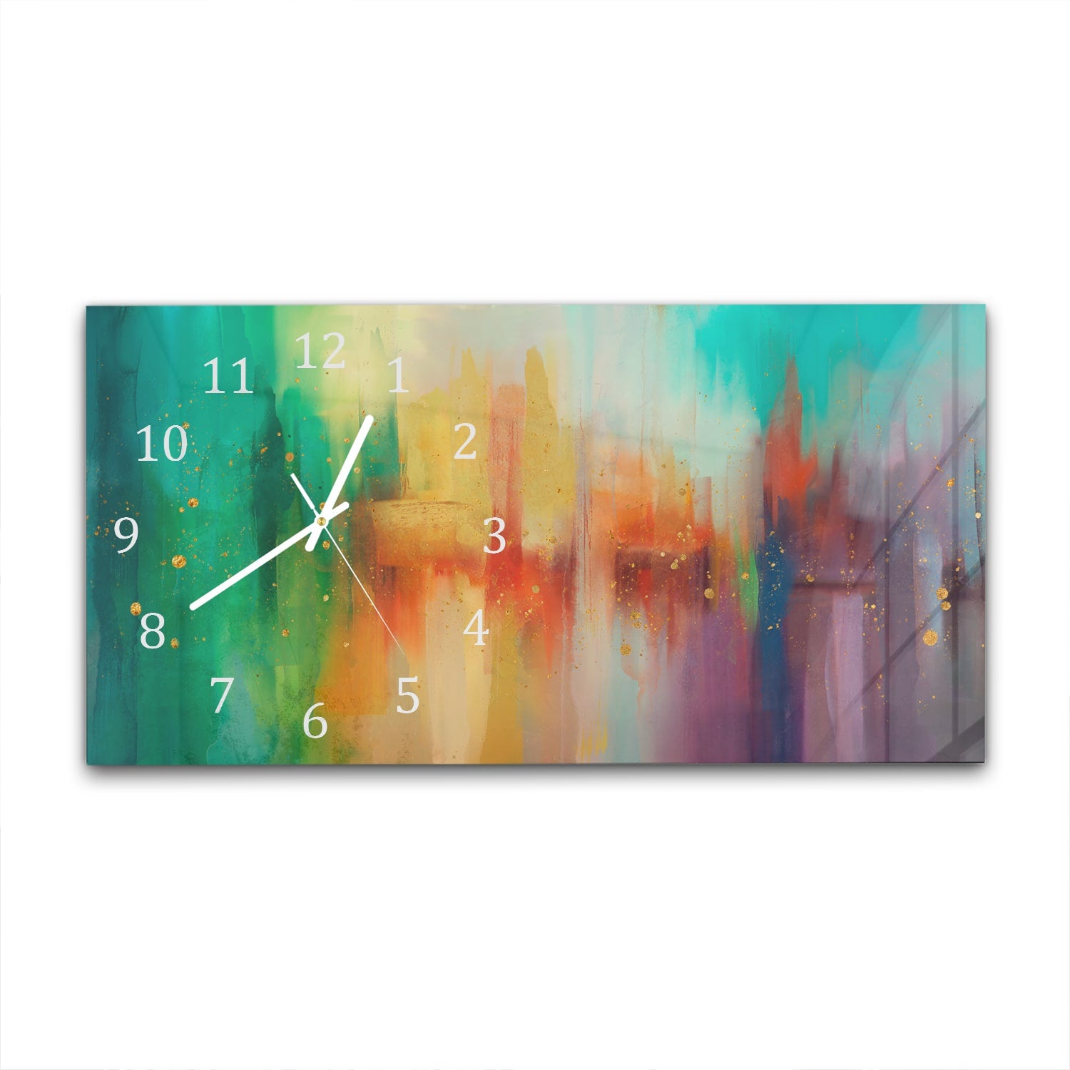 Wanduhr 60x30 - Buntes Aquarellgemälde