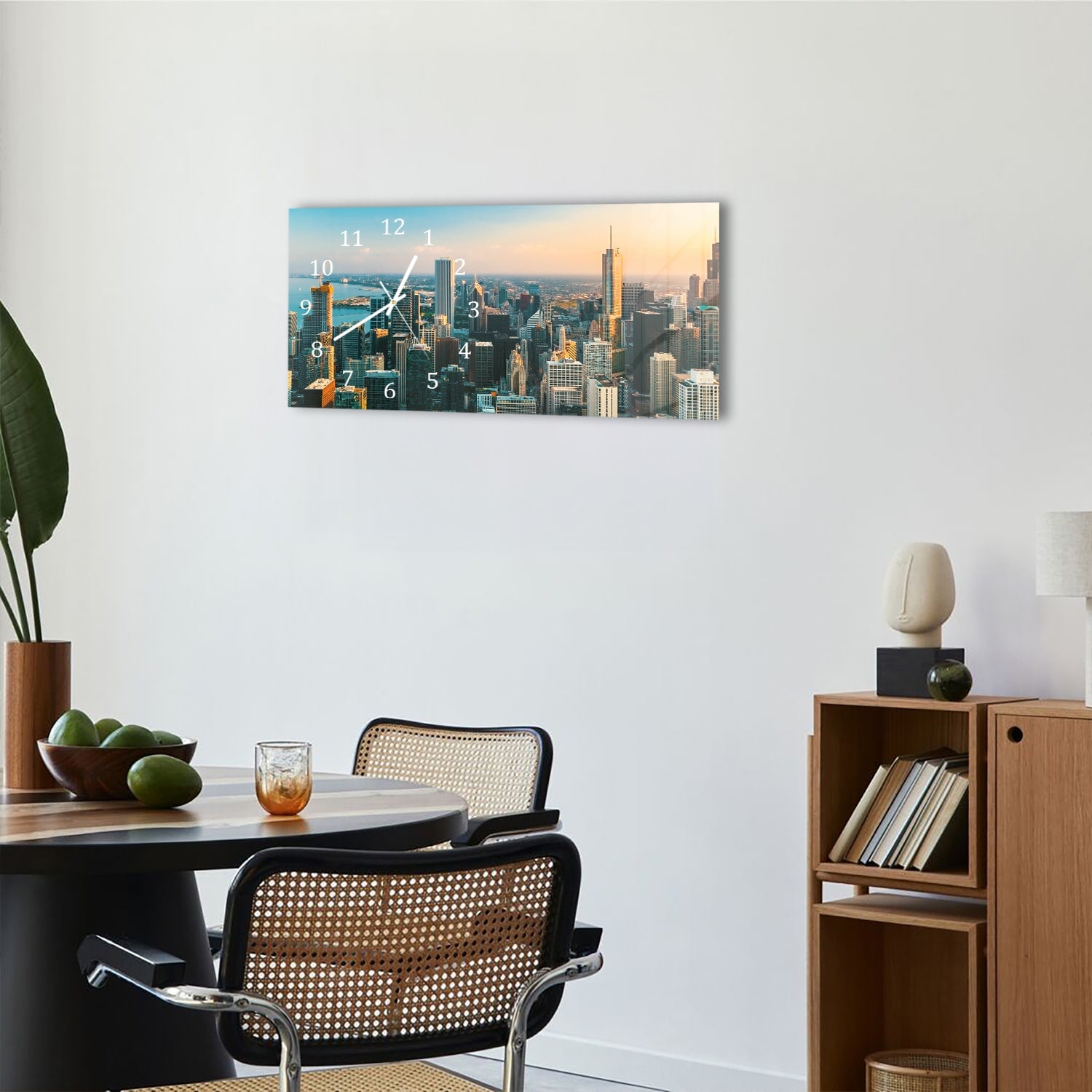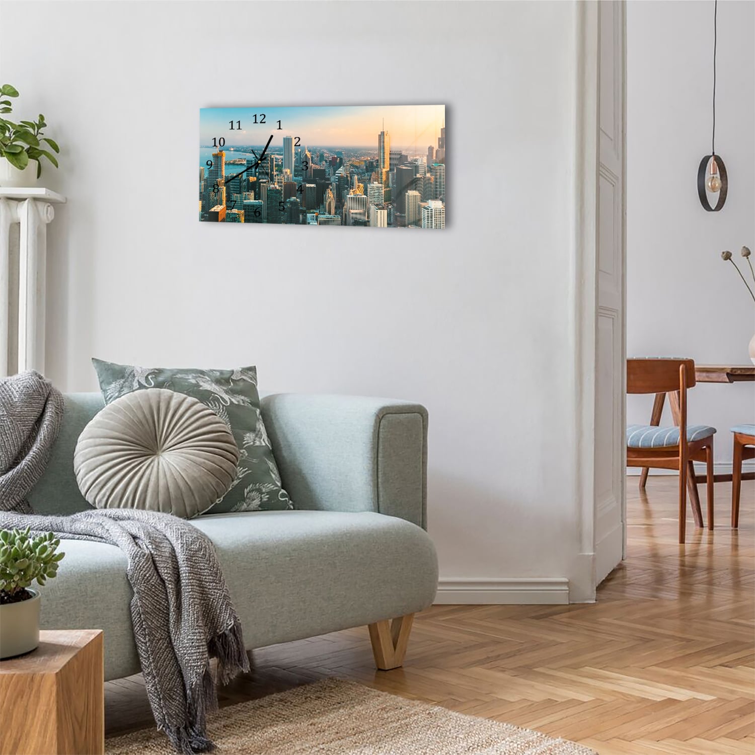 Wanduhr 60x30 - Chicago Skyline bei Sonnenuntergang
