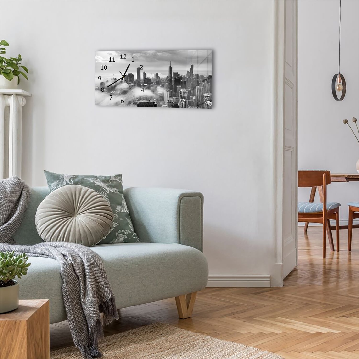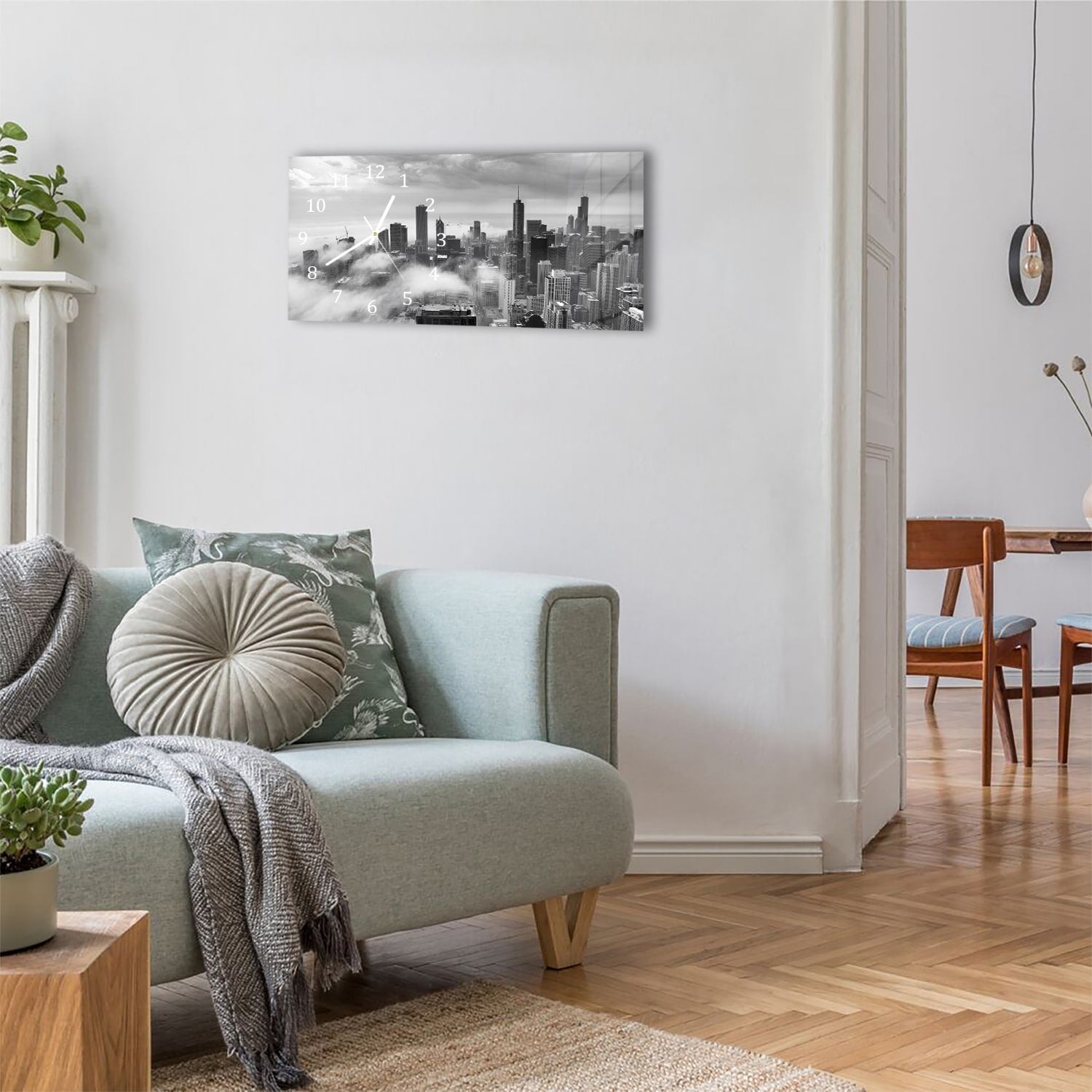 Wanduhr 60x30 - Chicago Skyline im Nebel