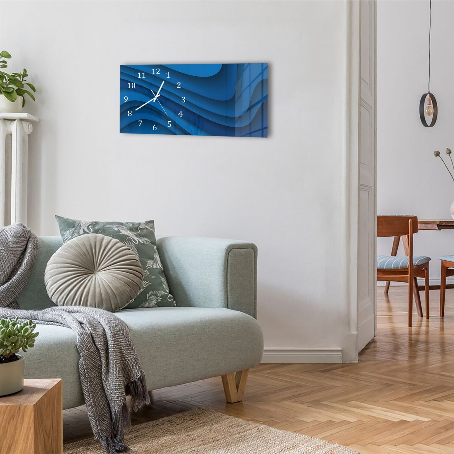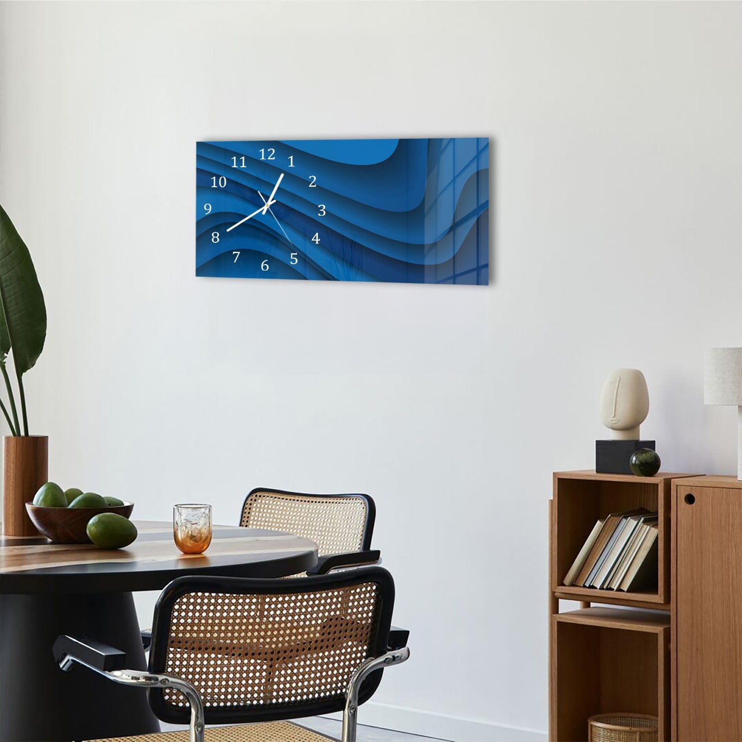Wanduhr 60x30 - Dunkelblaue Papierwellen