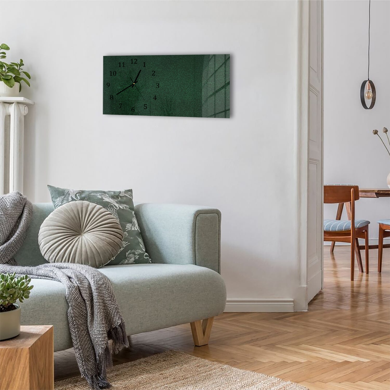 Wanduhr 60x30 - Dunkelgrünes Leder