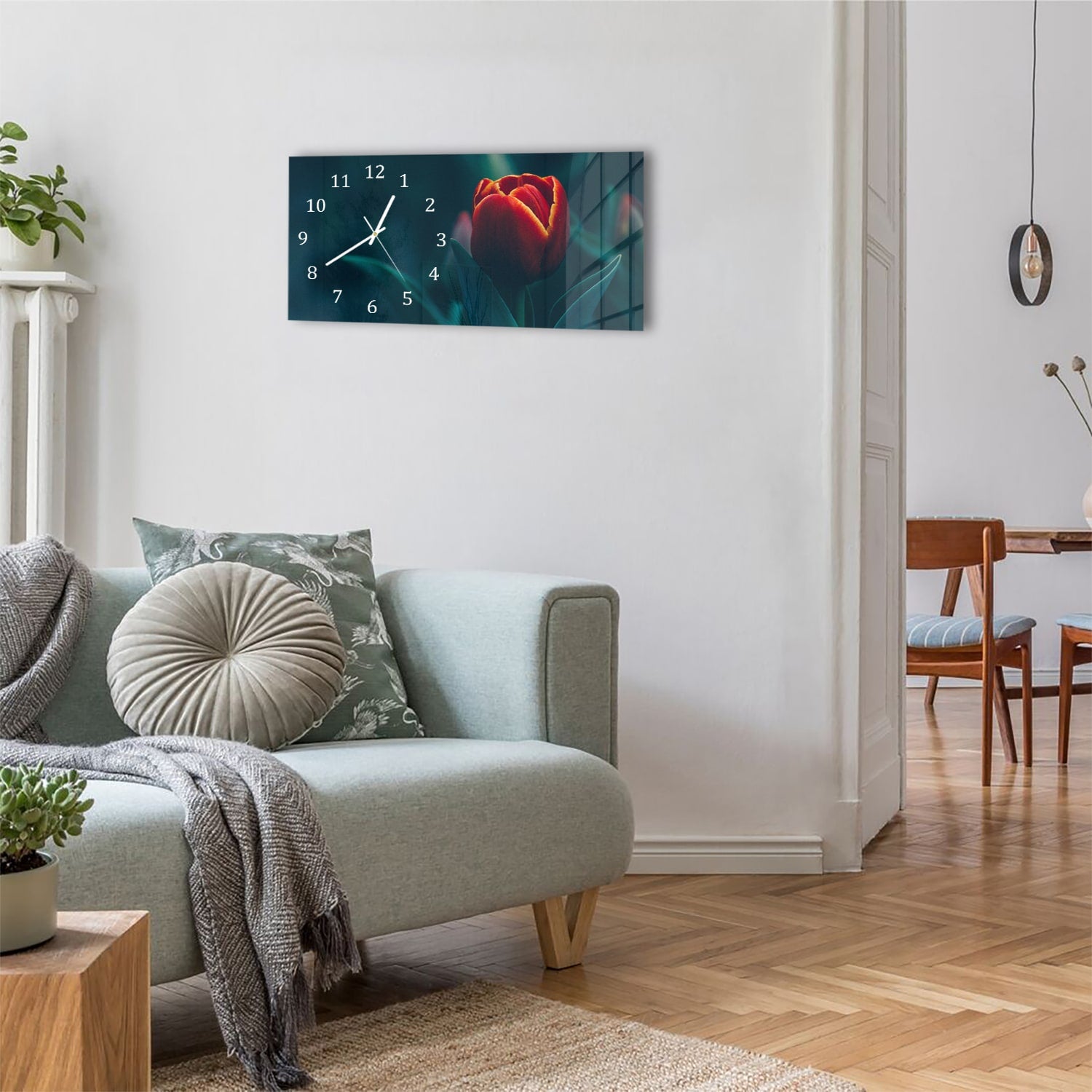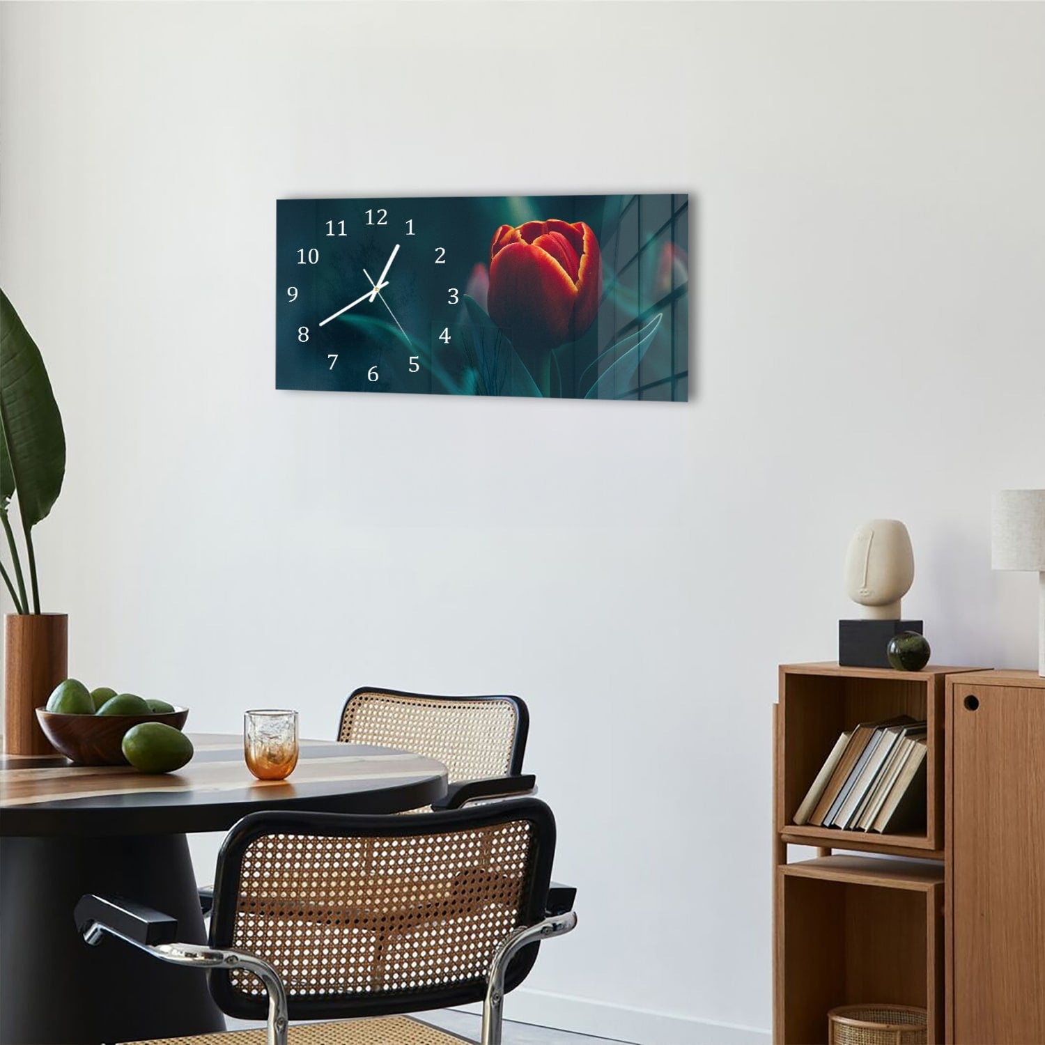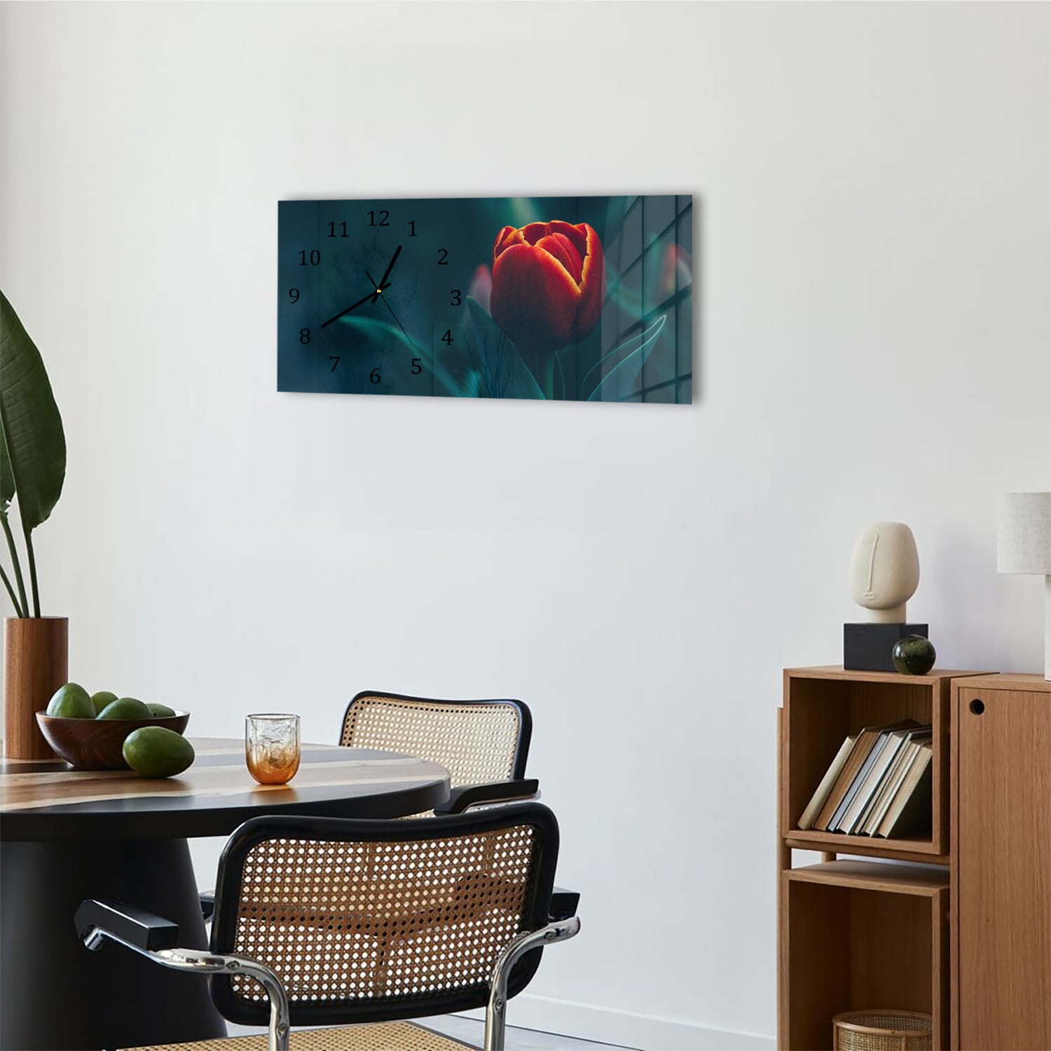 Wanduhr 60x30 - Dunkelrote Tulpe