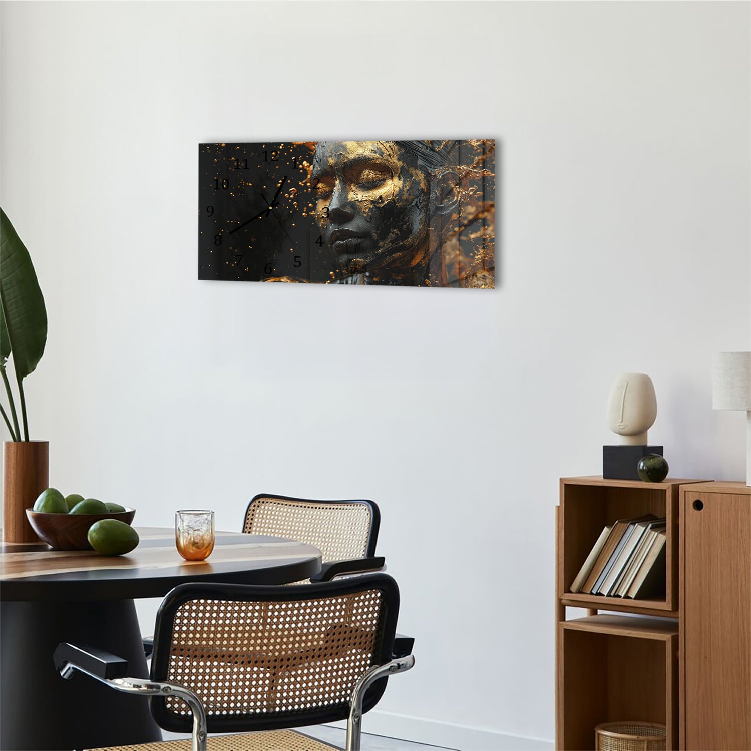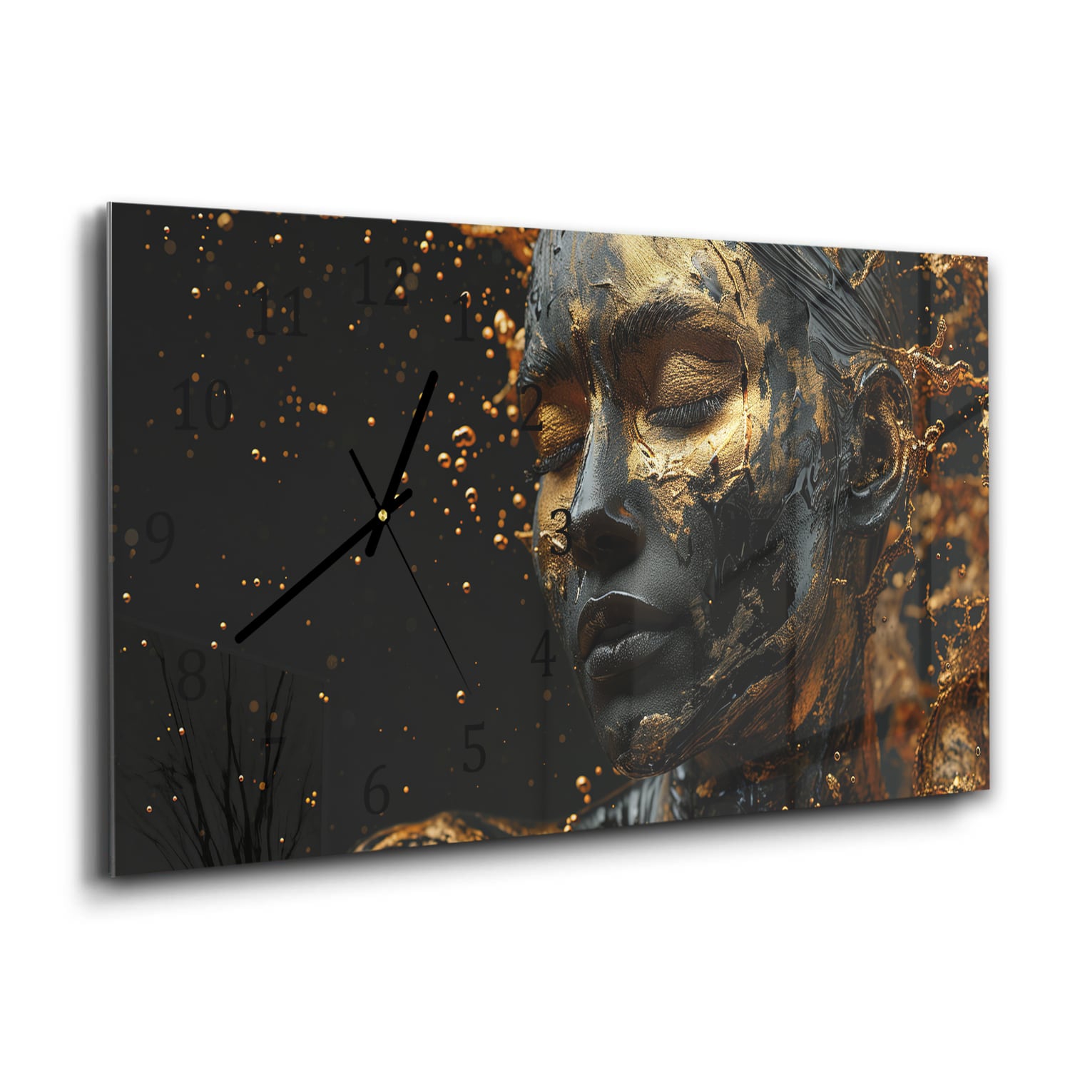 Wanduhr 60x30 - Frau mit goldener Schminke