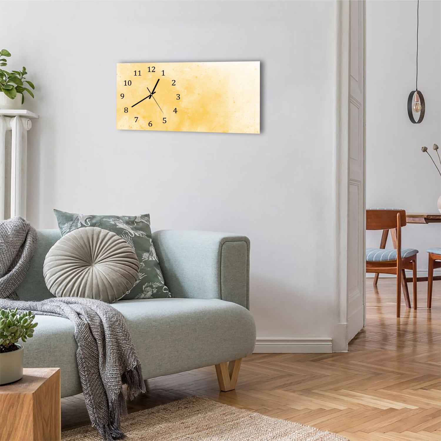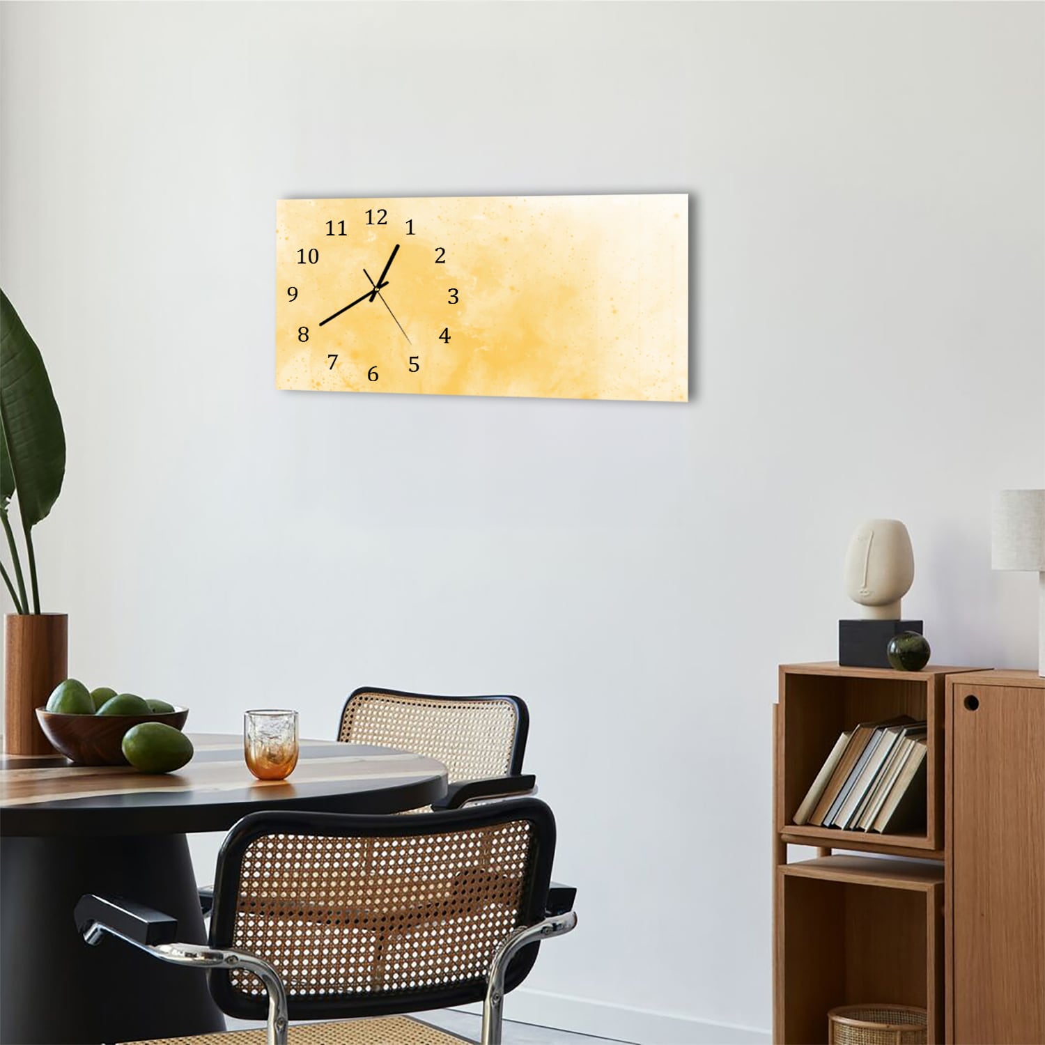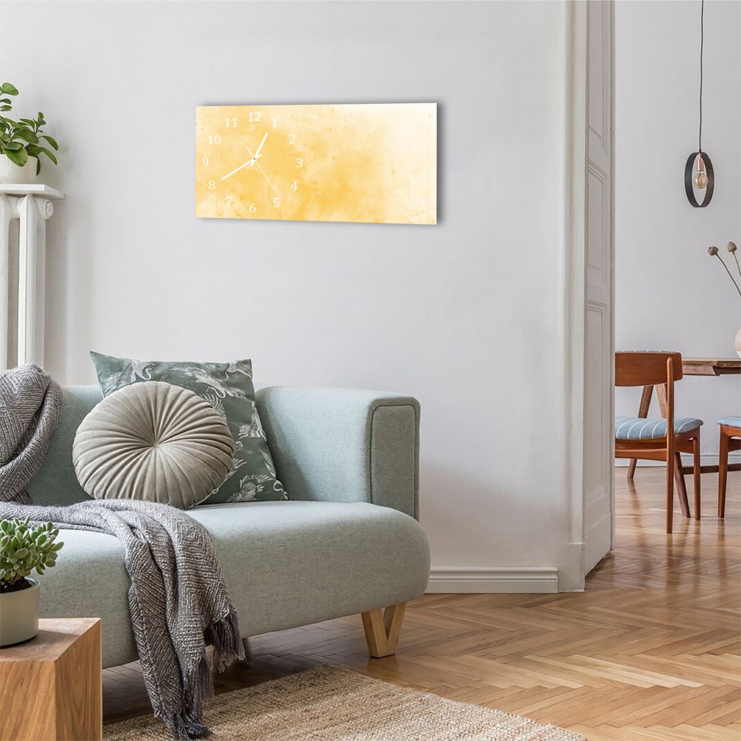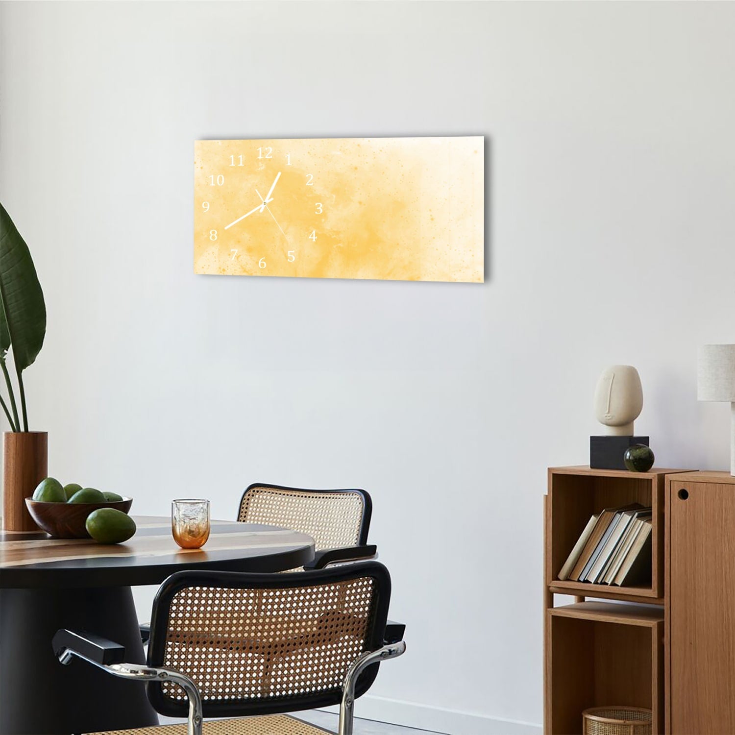 Wanduhr 60x30 - Gelbe Aquarellfarbe