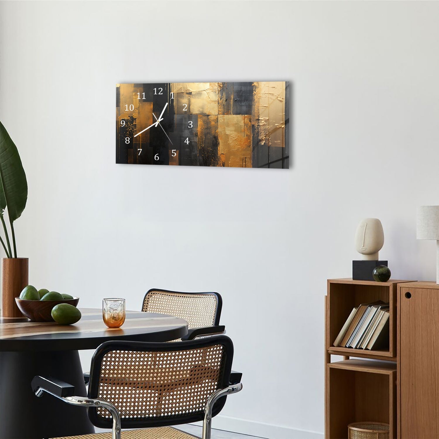 Wanduhr 60x30 - Gold/Schwarz abstraktes Gemälde