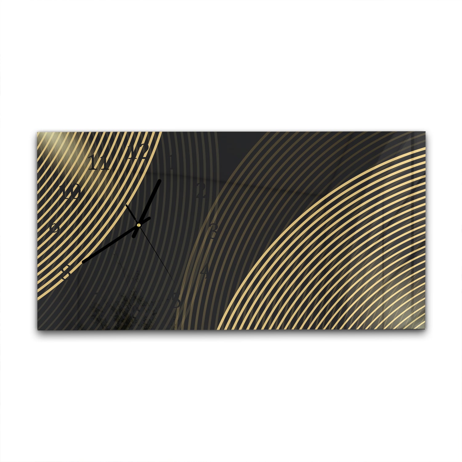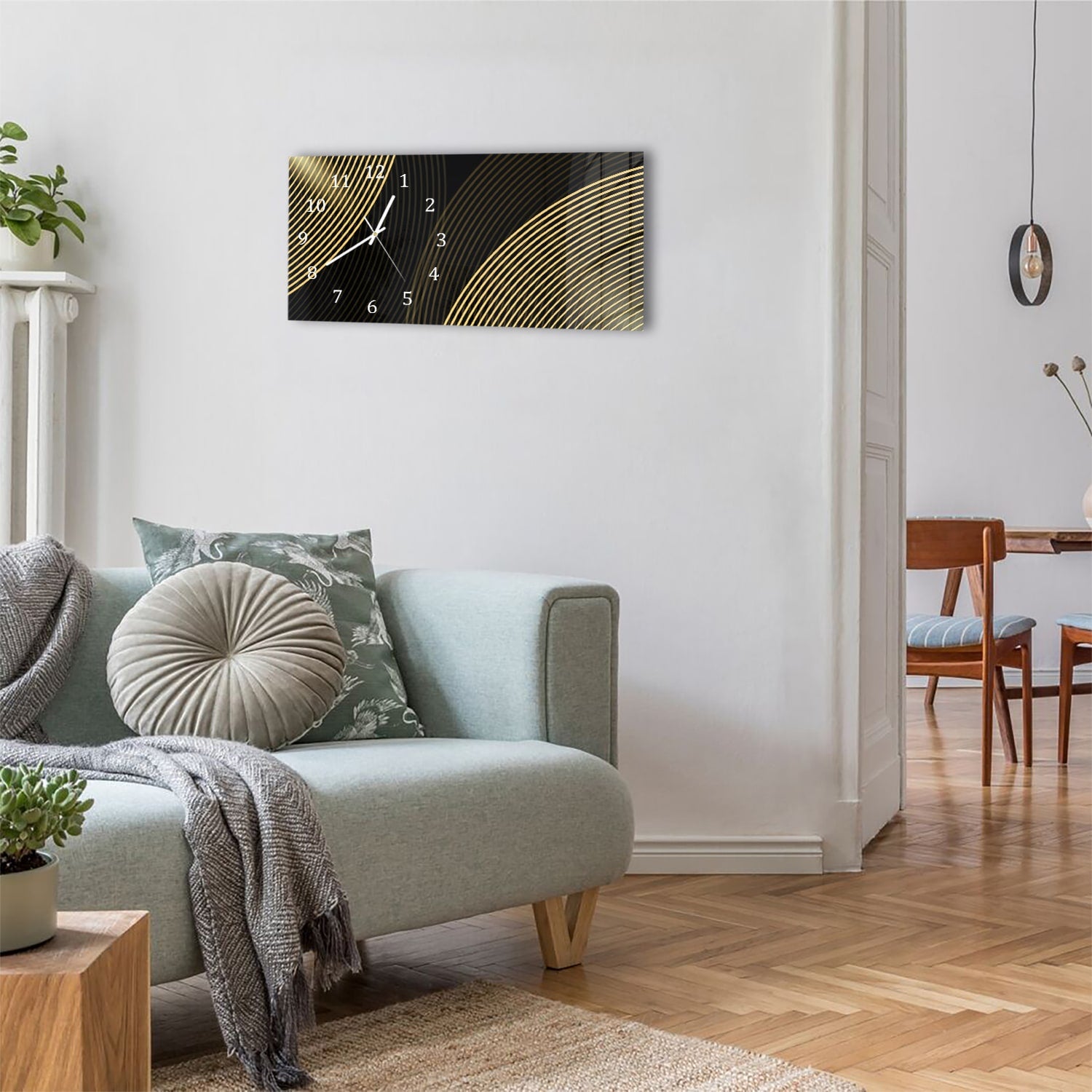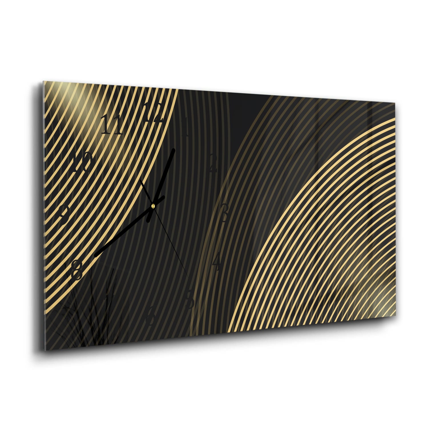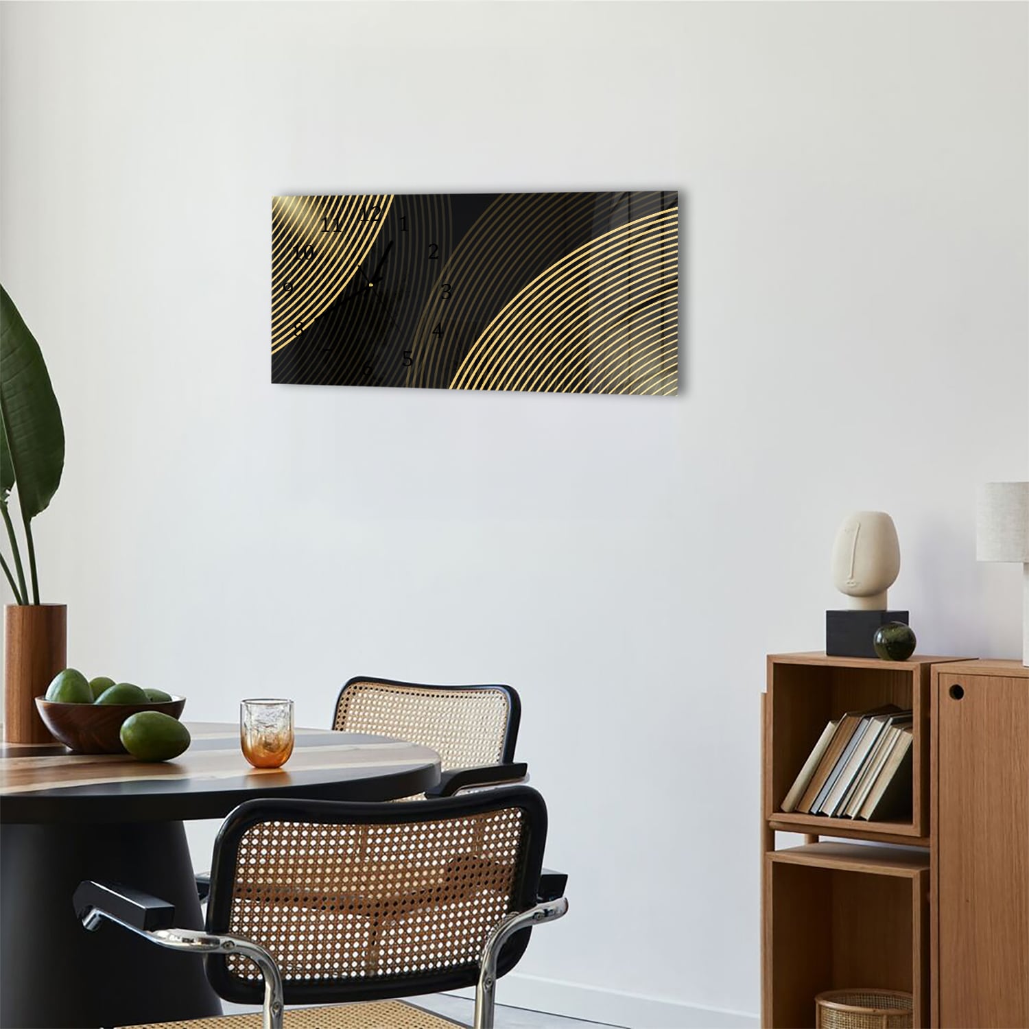 Wanduhr 60x30 - Goldene Linien auf schwarzem Hintergrund
