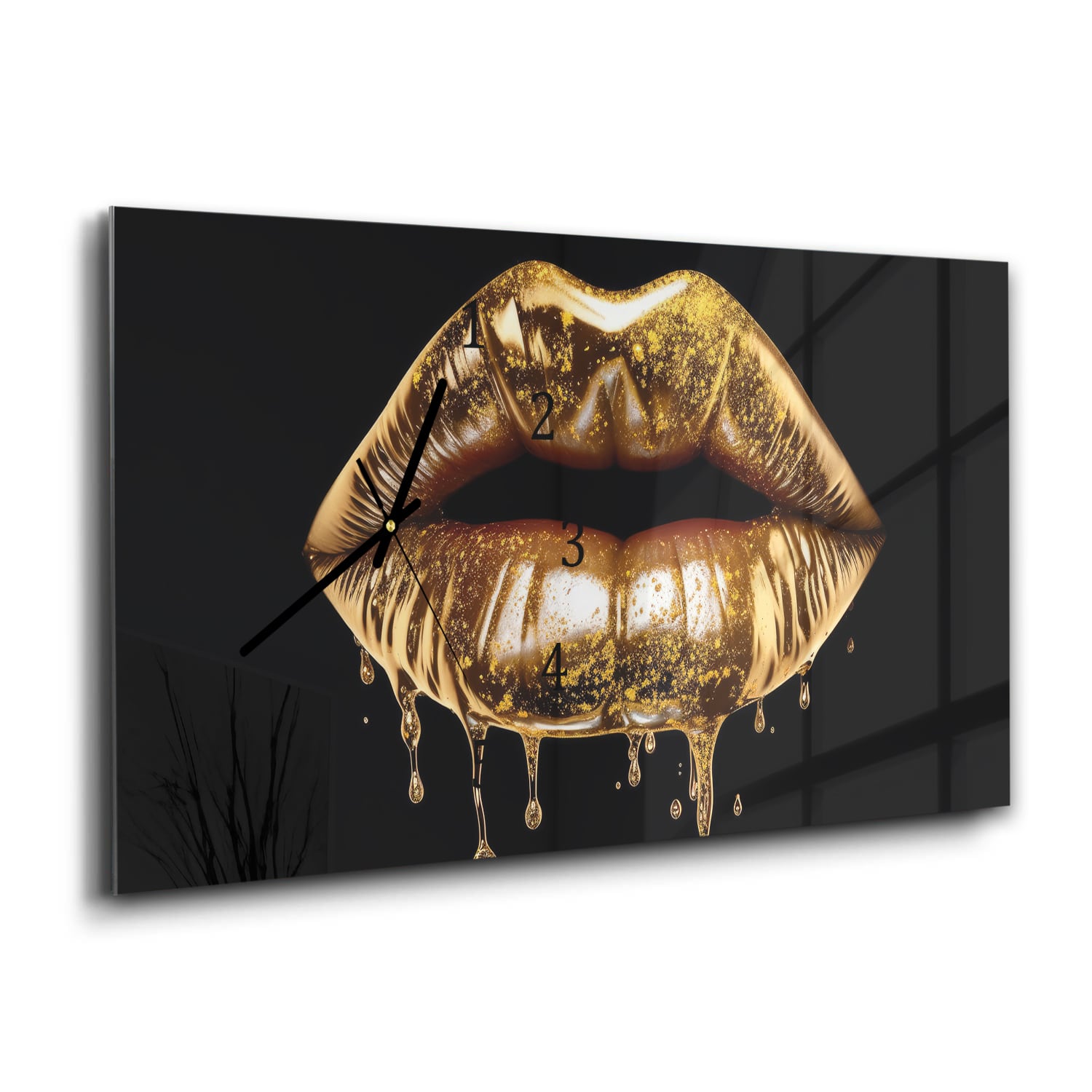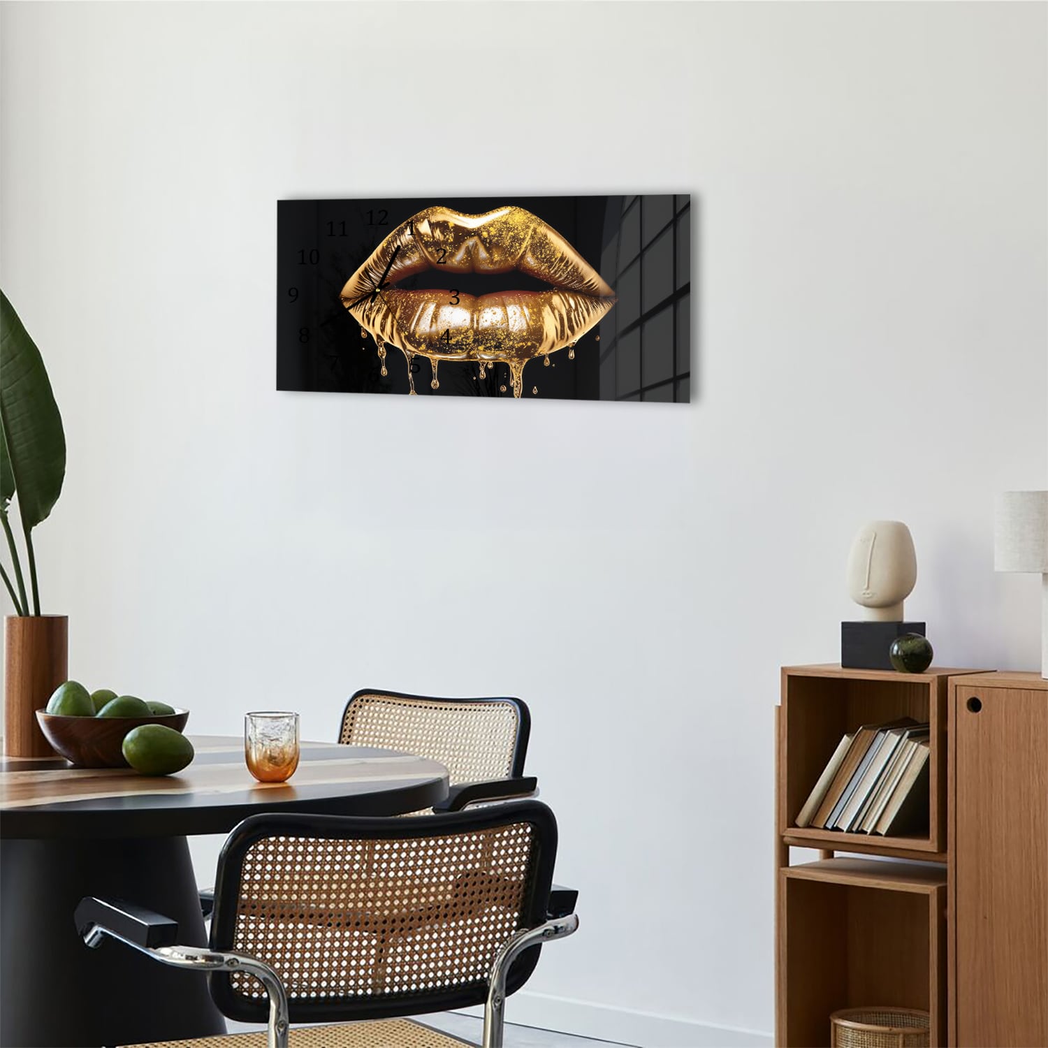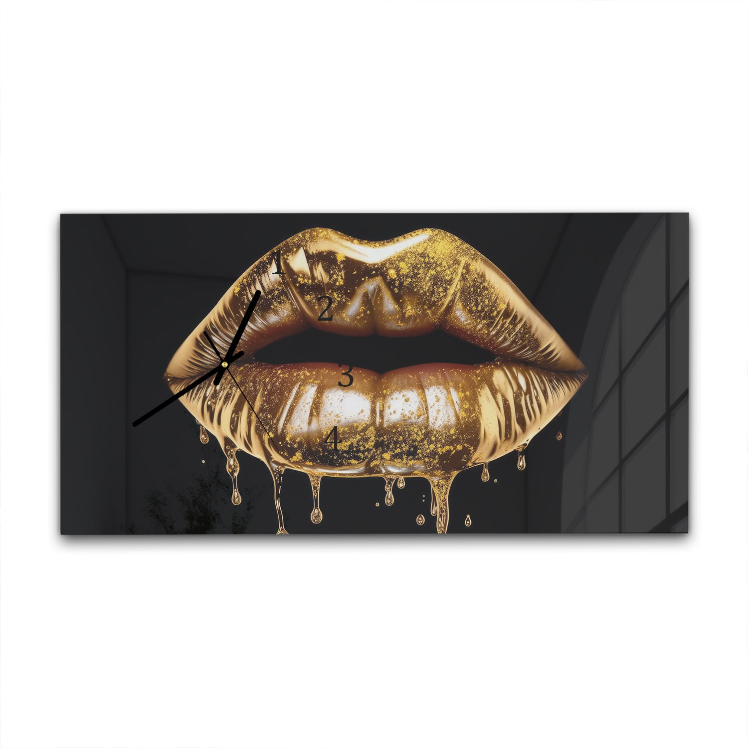 Wanduhr 60x30 - Goldene tropfende Lippen