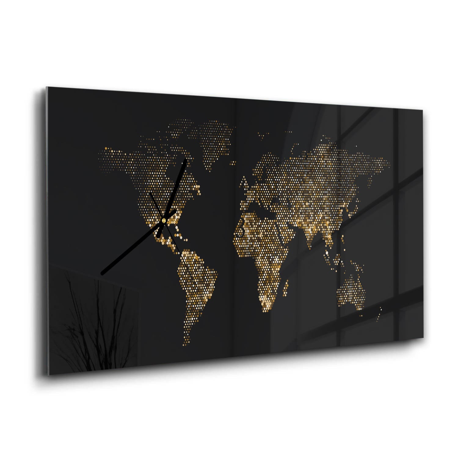 Wanduhr 60x30 - Goldene Weltkarte