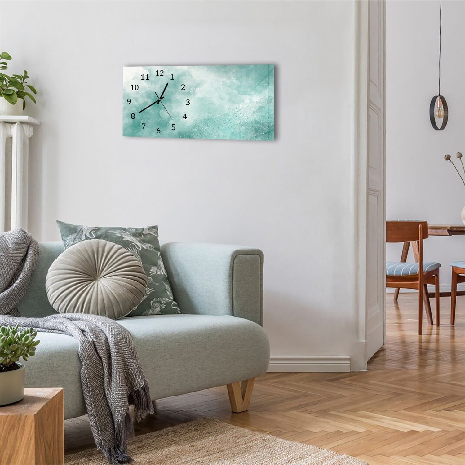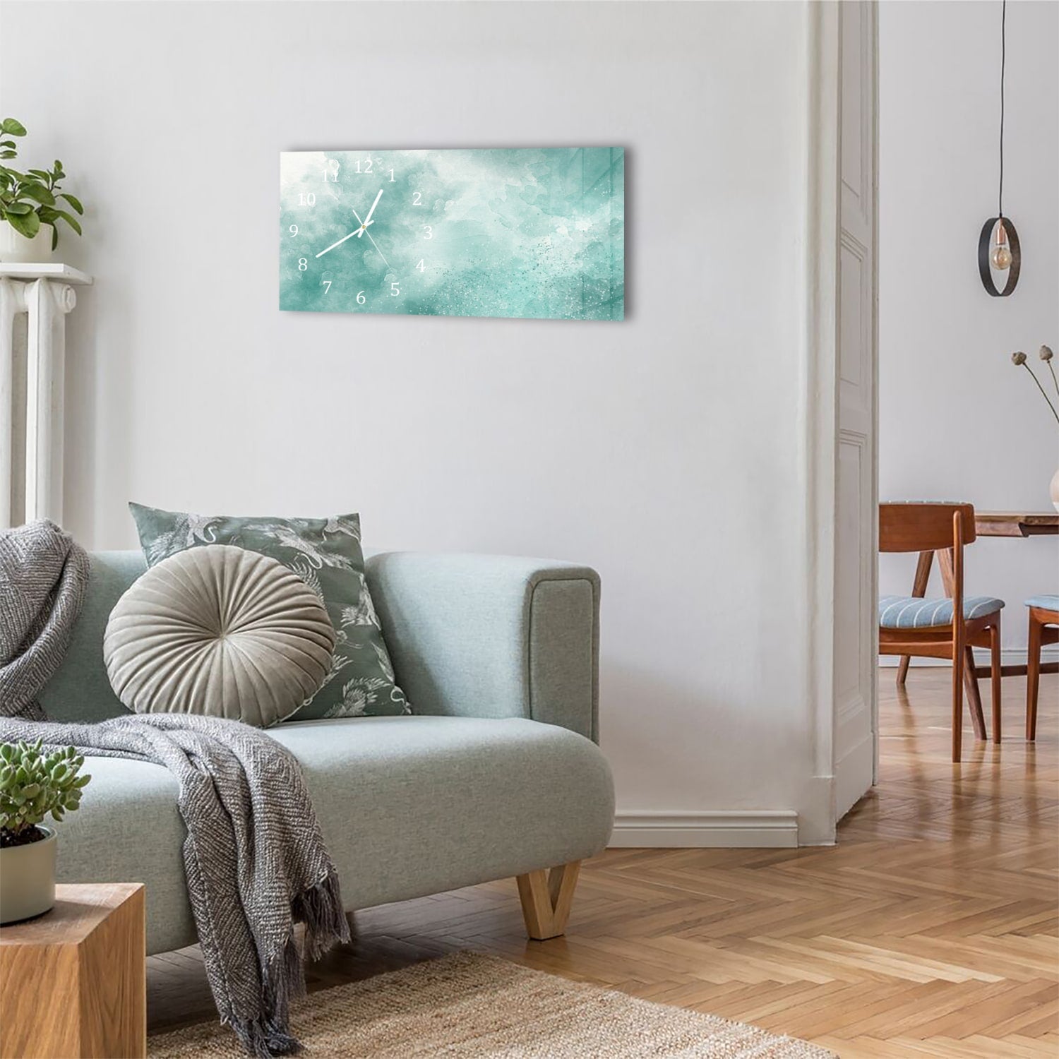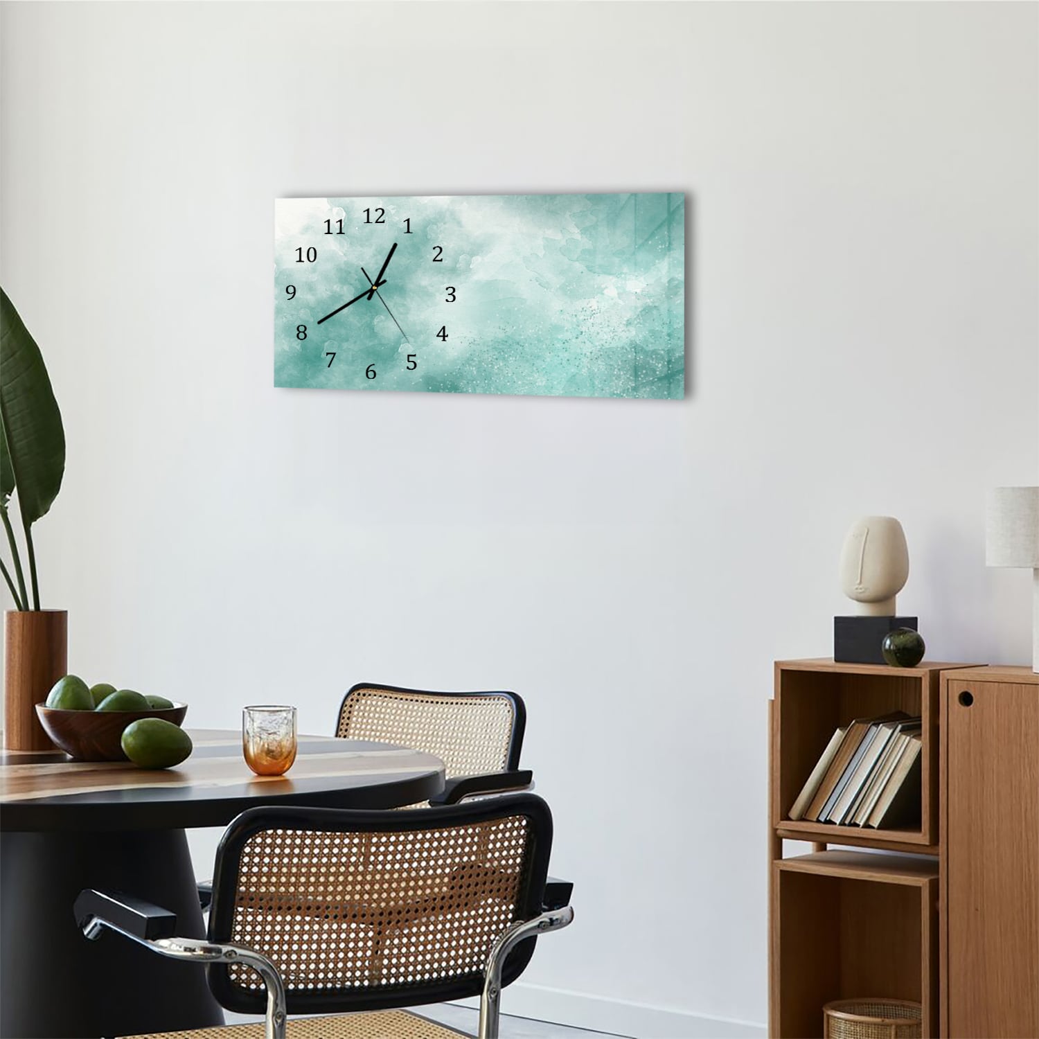 Wanduhr 60x30 - Grüne Aquarellfarbe