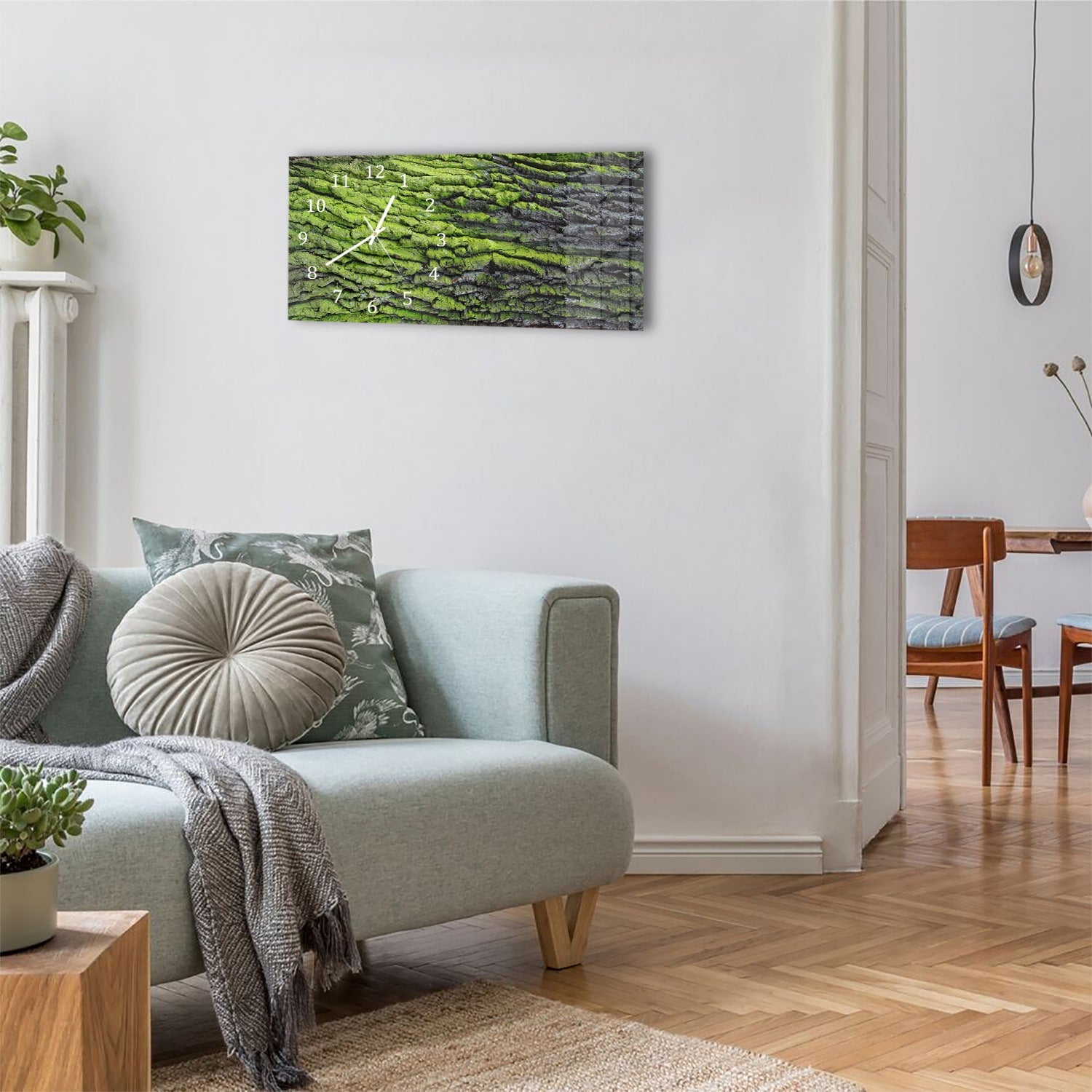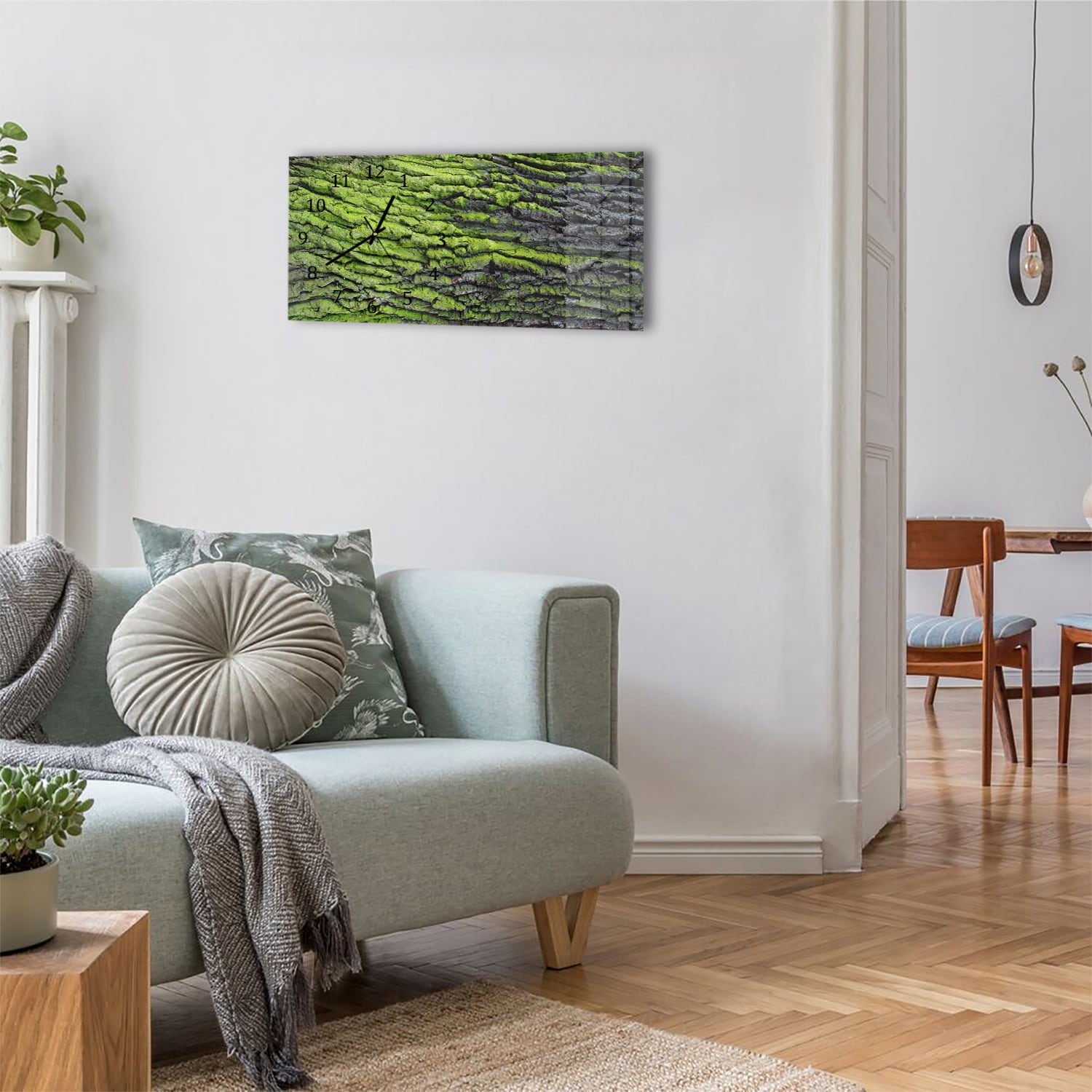 Wanduhr 60x30 - Grüne Rinden-Textur