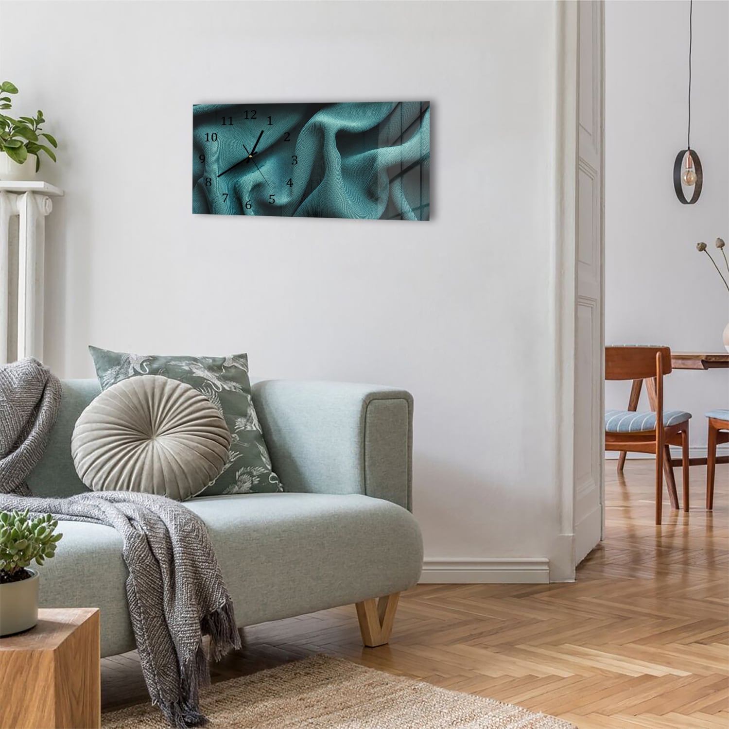 Wanduhr 60x30 - Grüne Stofftextur