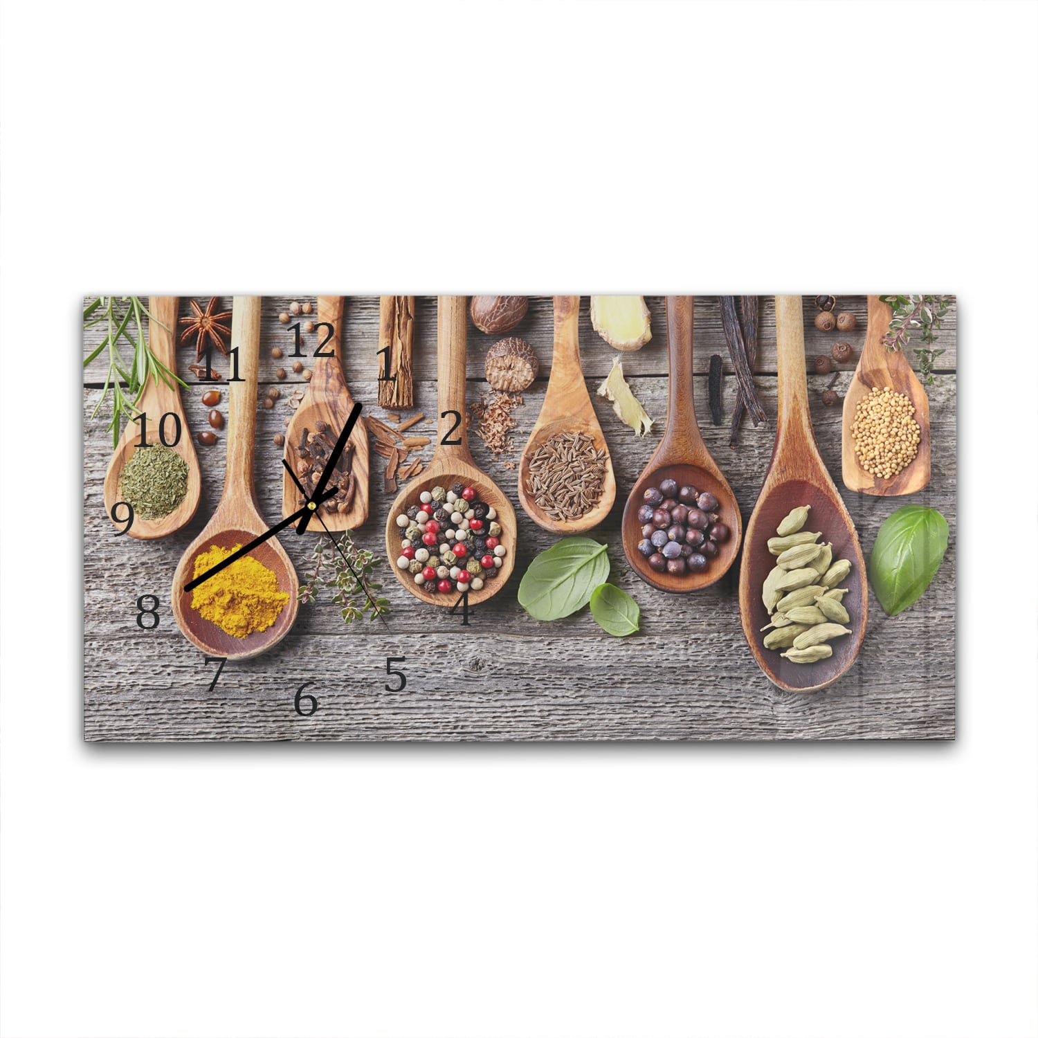 Wanduhr 60x30 - Holzlöffel mit Kräutern