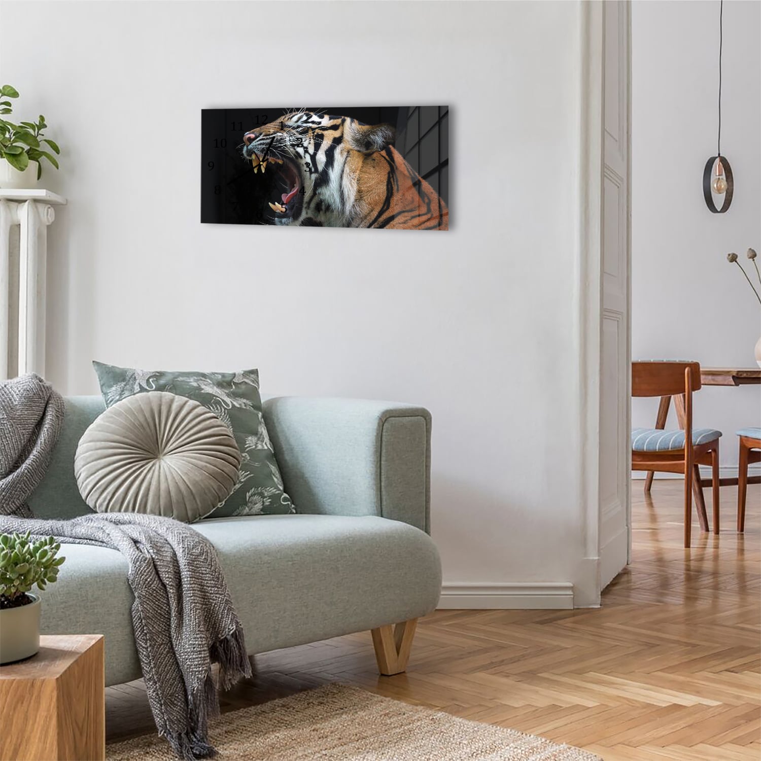 Wanduhr 60x30 - Kopf des Sumatra-Tigers
