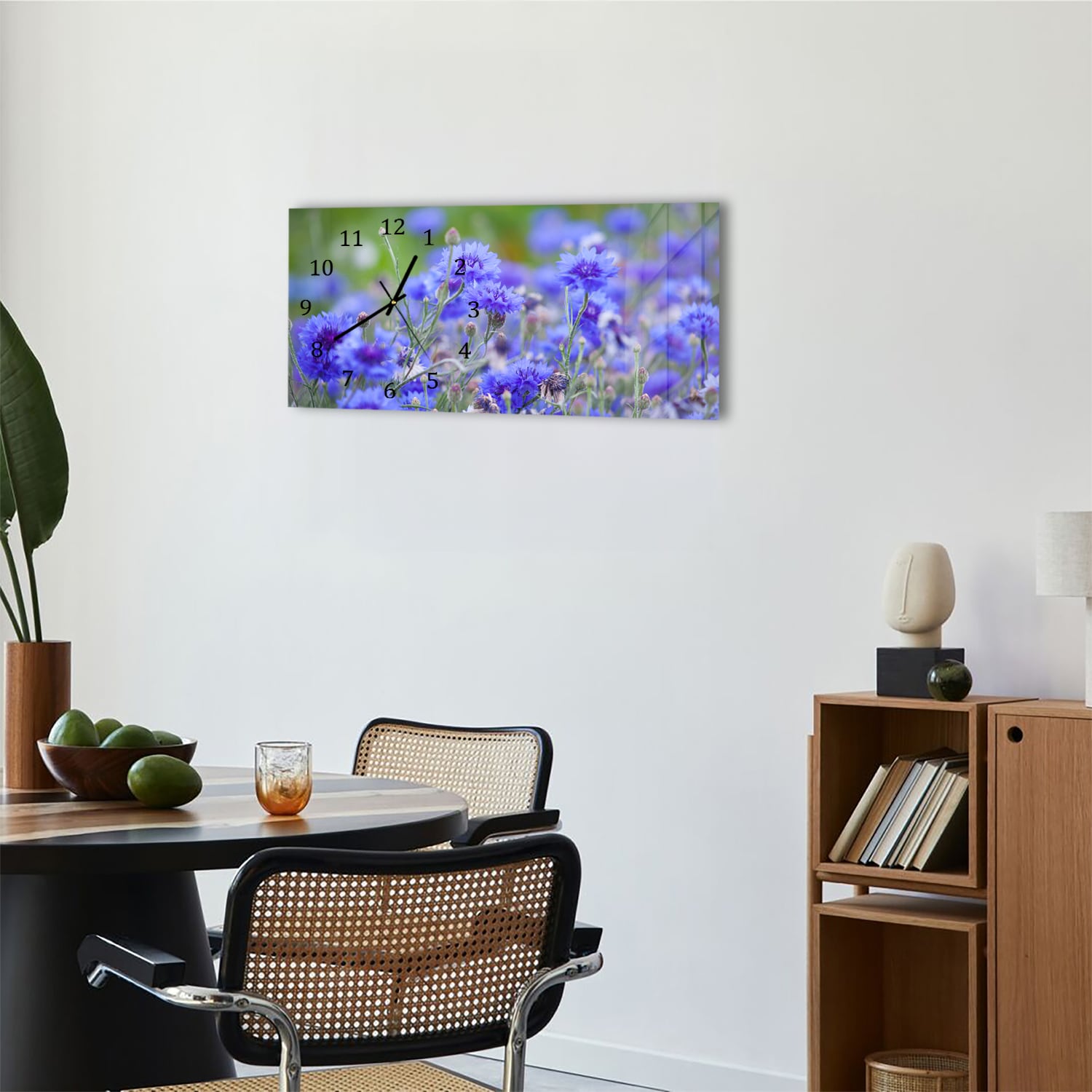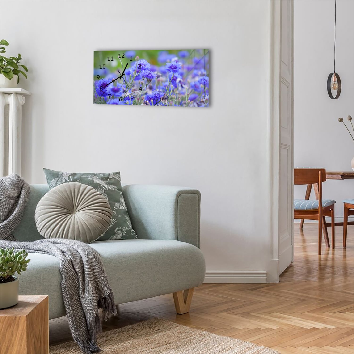 Wanduhr 60x30 - Kornblumen in Blüte