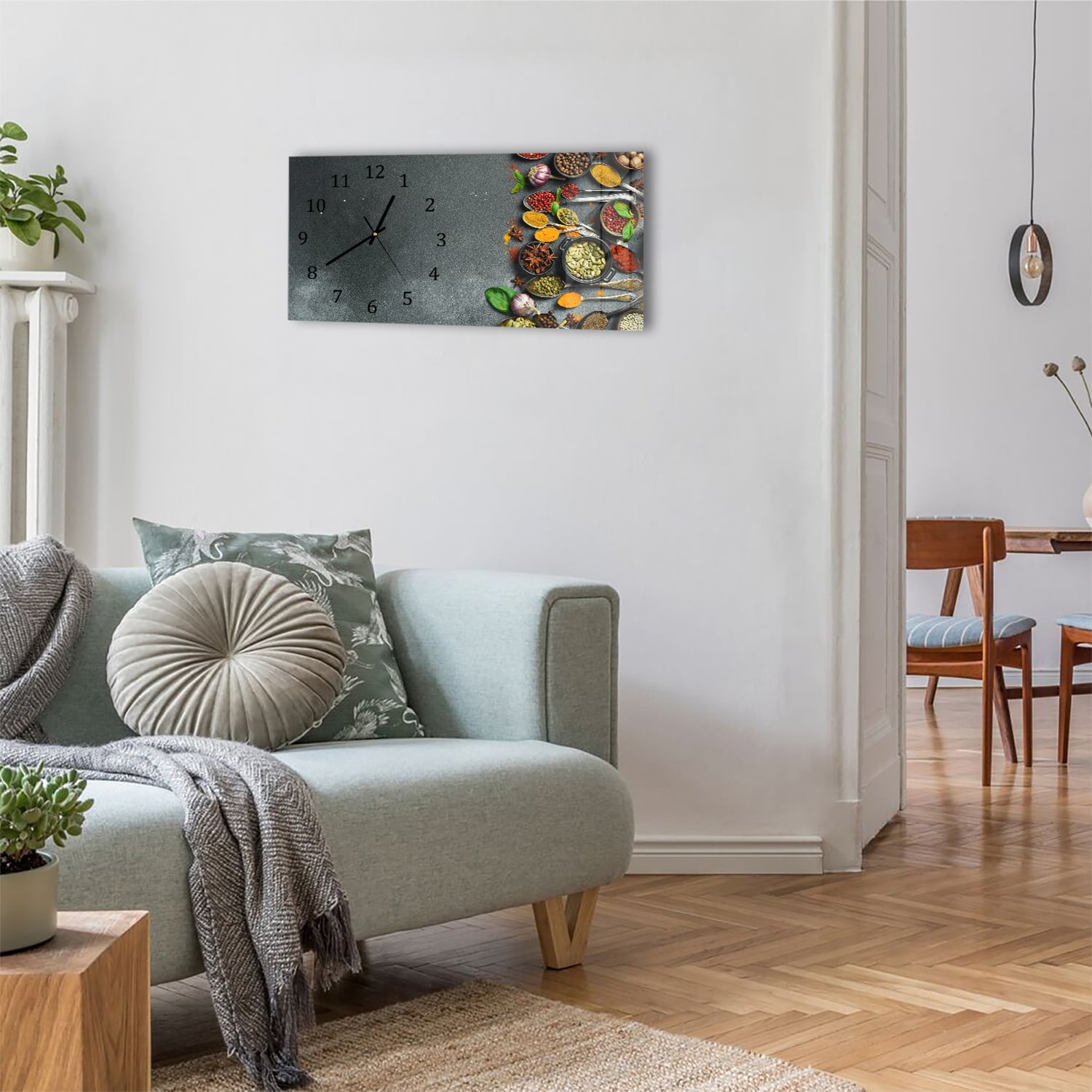 Wanduhr 60x30 - Kräuter auf dunklem Stein