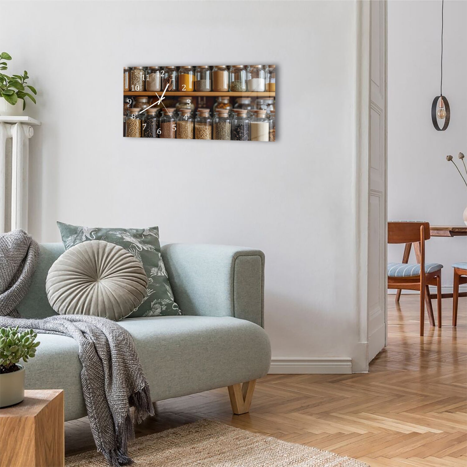Wanduhr 60x30 - Kräuter & Gewürze in Gläsern