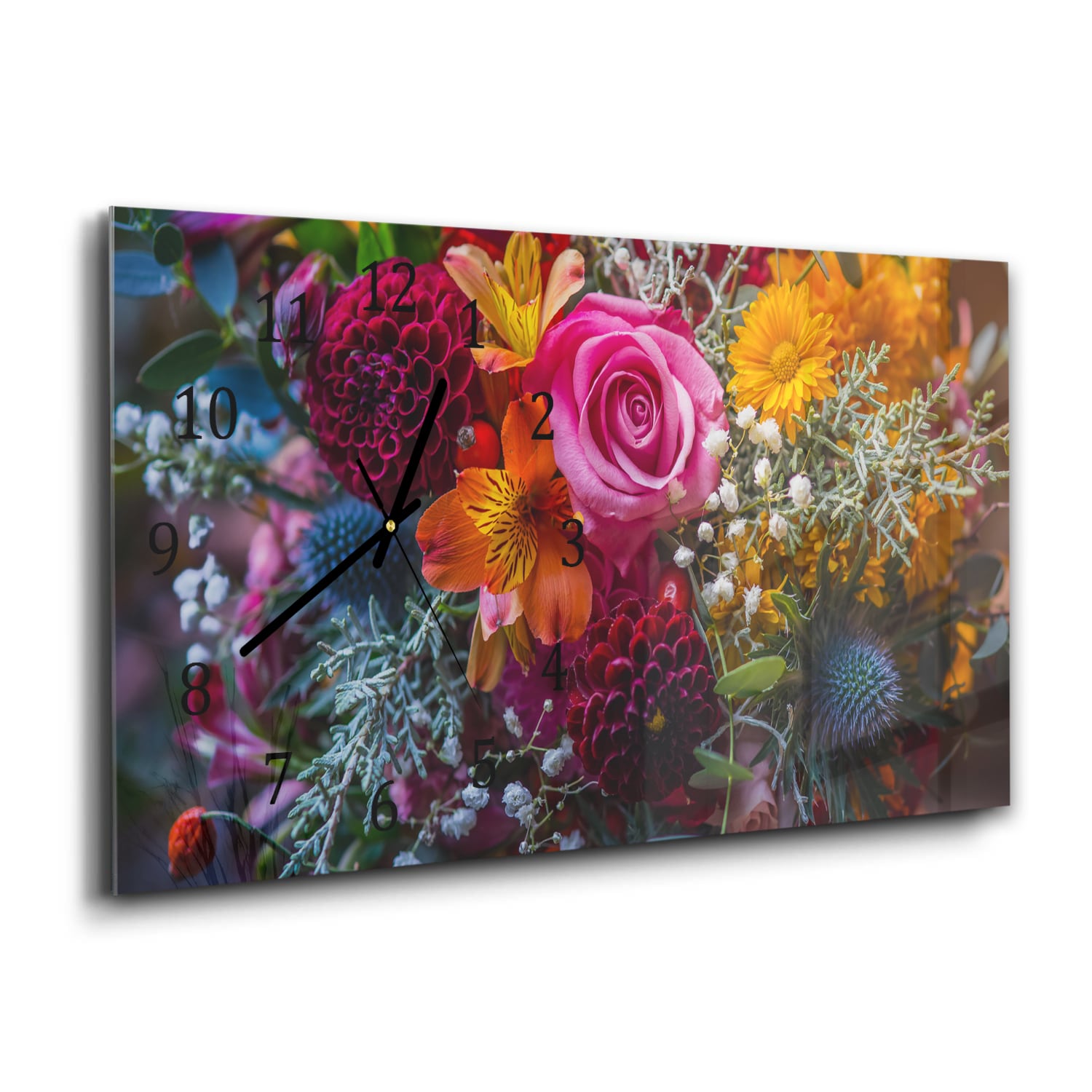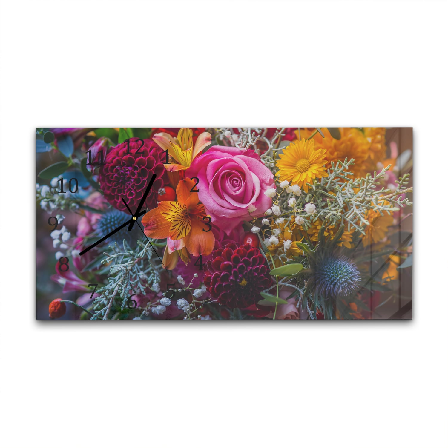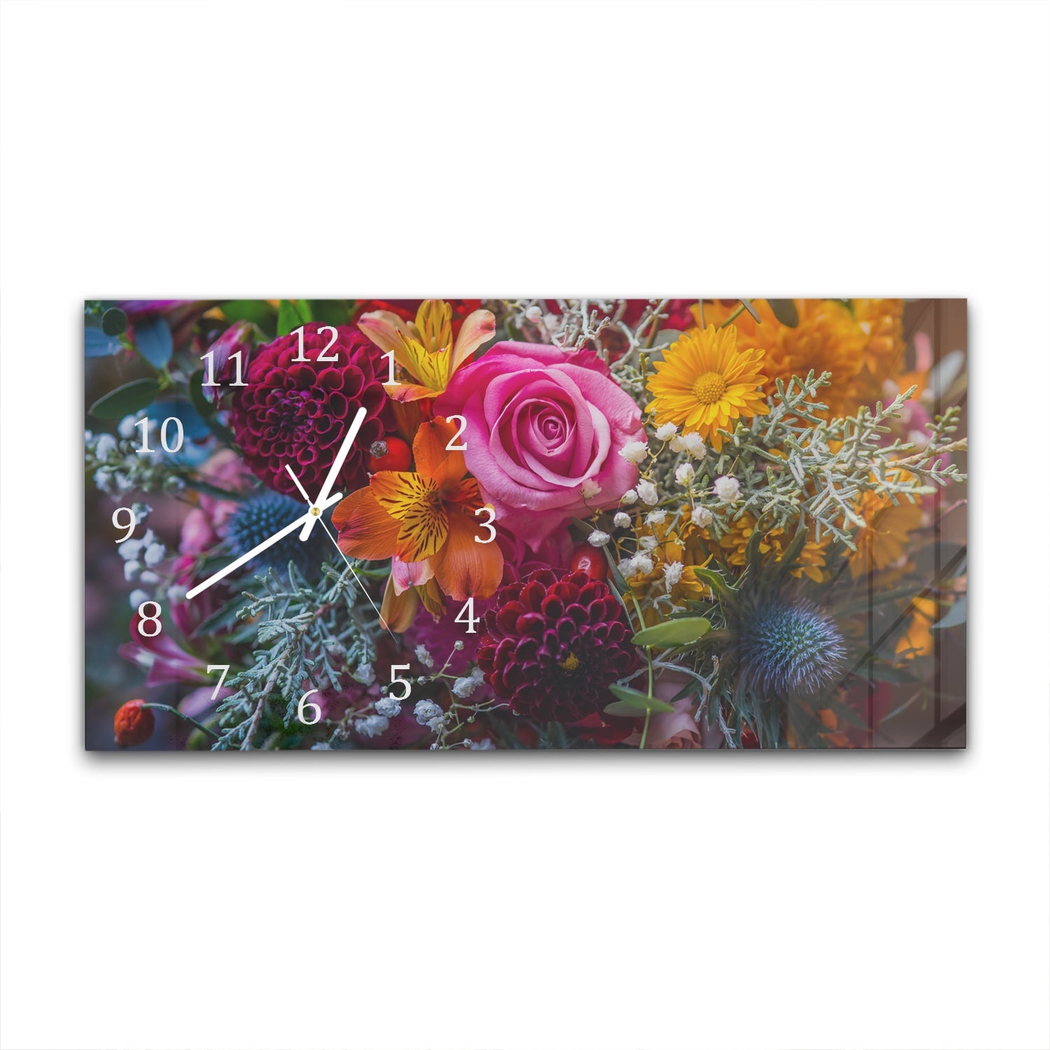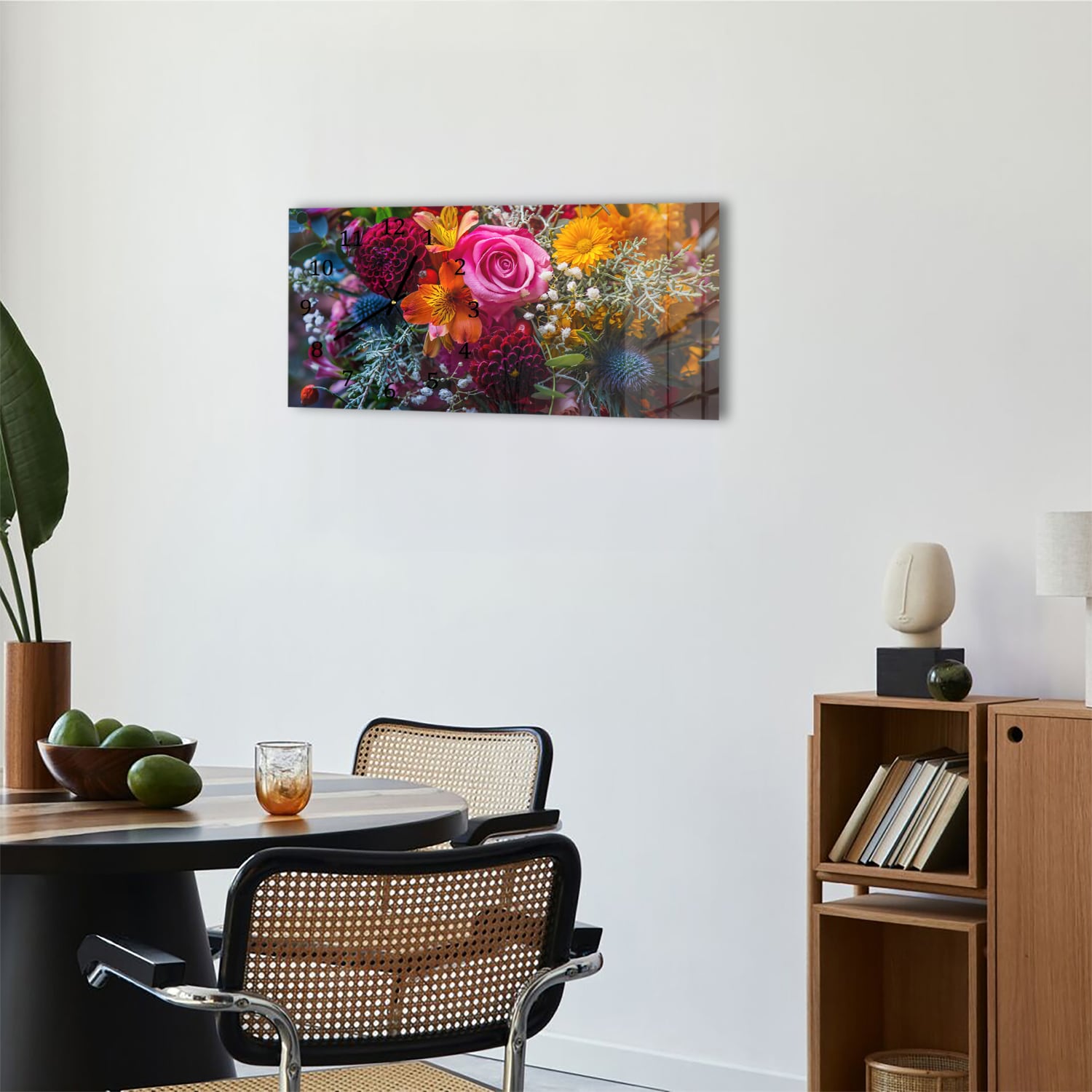 Wanduhr 60x30 - Lebendiger Blumenstrauß